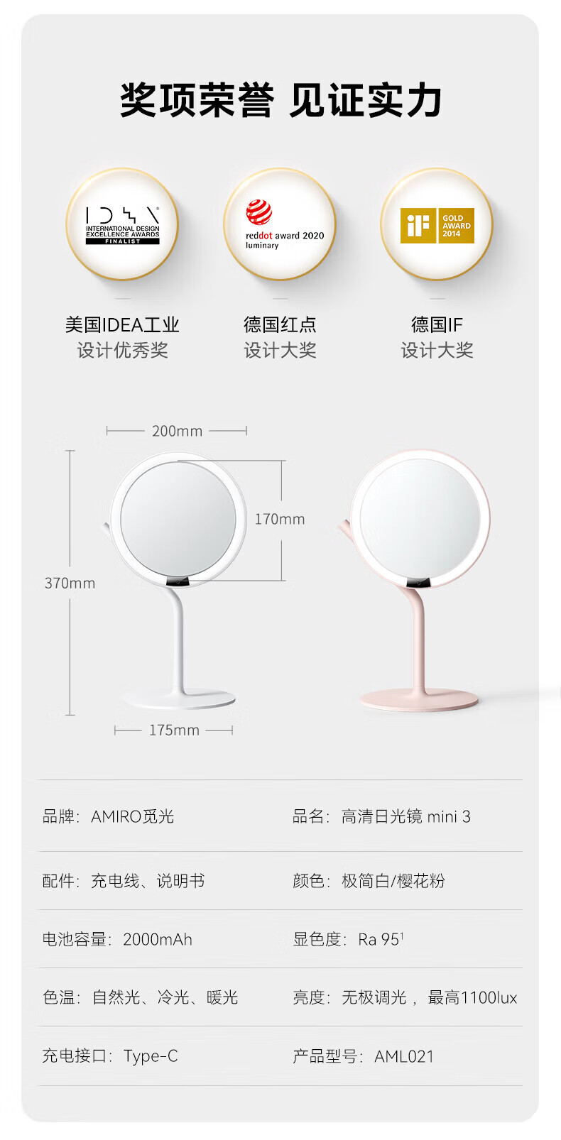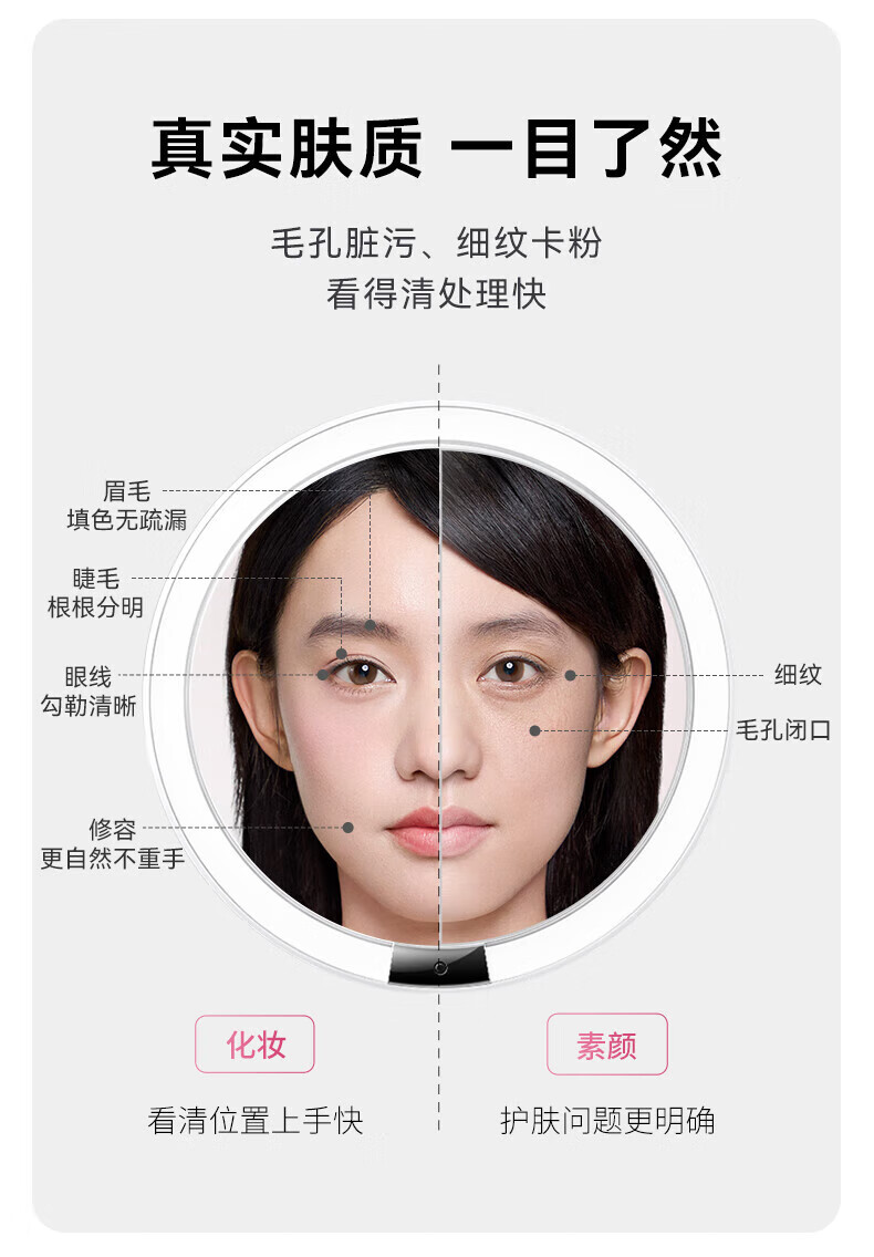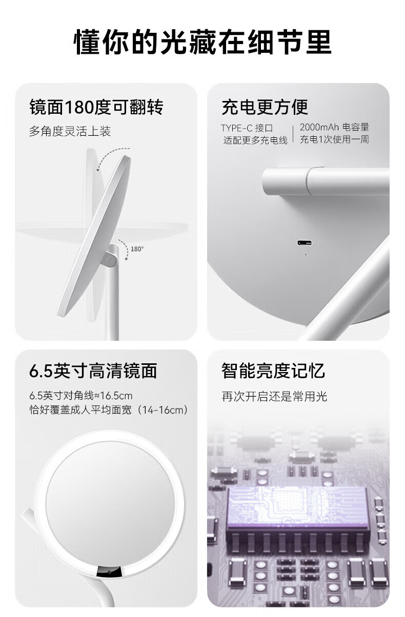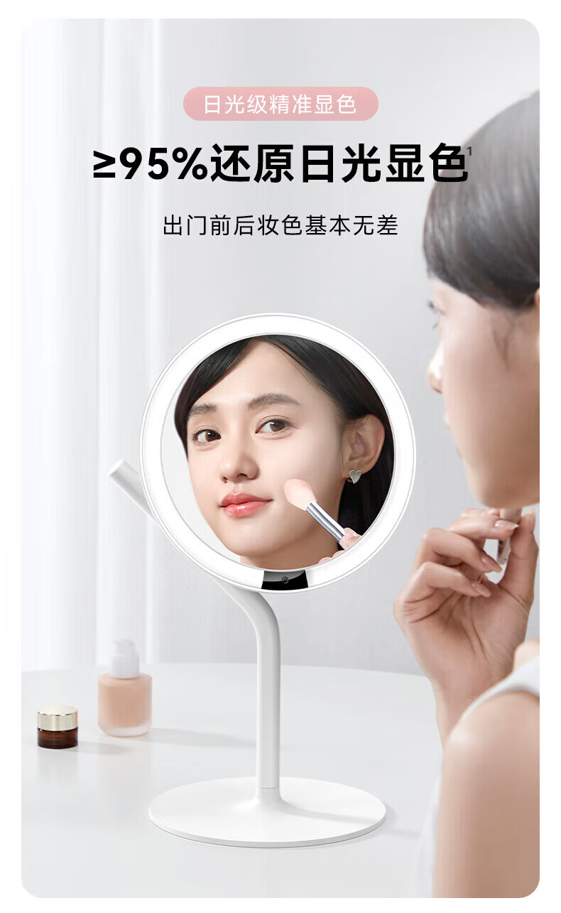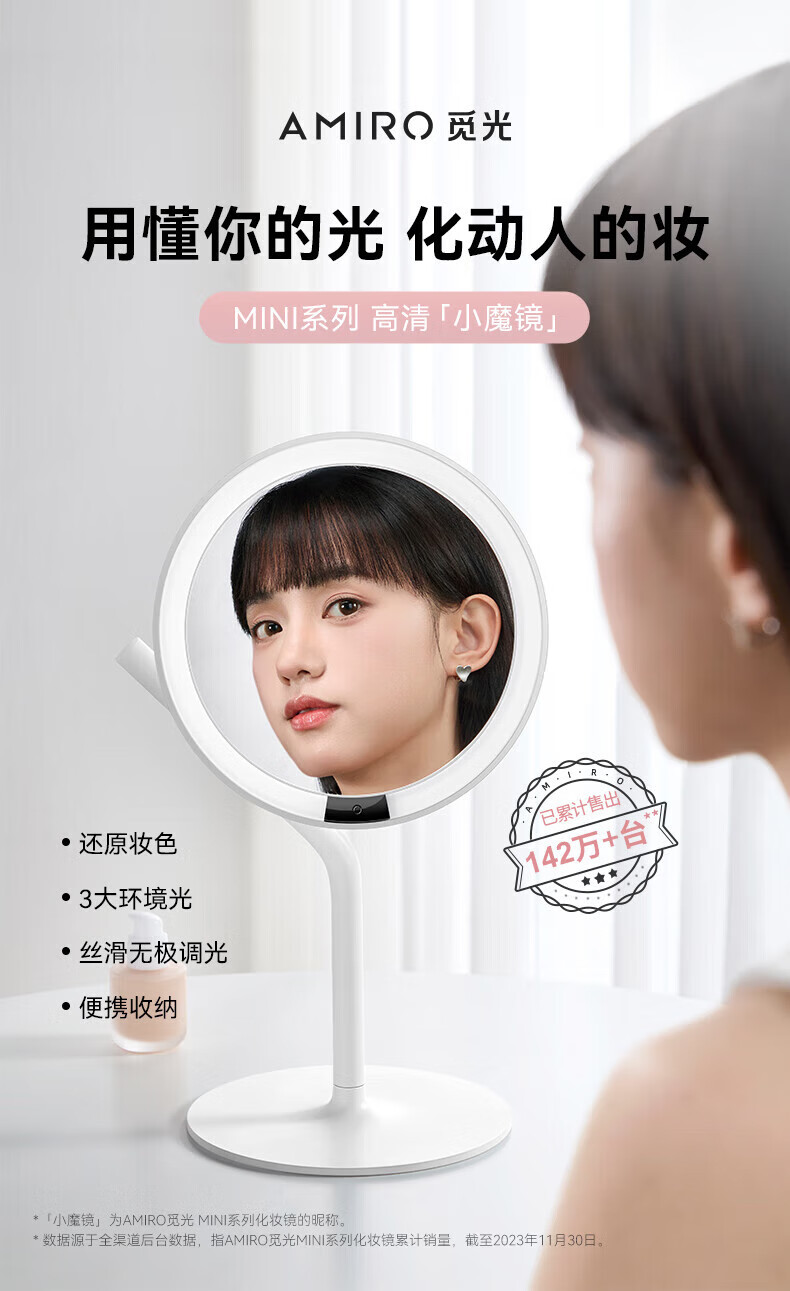 AMIRO makeup mirror MINI3 with light led portable desktop high-definition fill-in light makeup mirror smart desktop beauty mirror Mini2s minimalist white