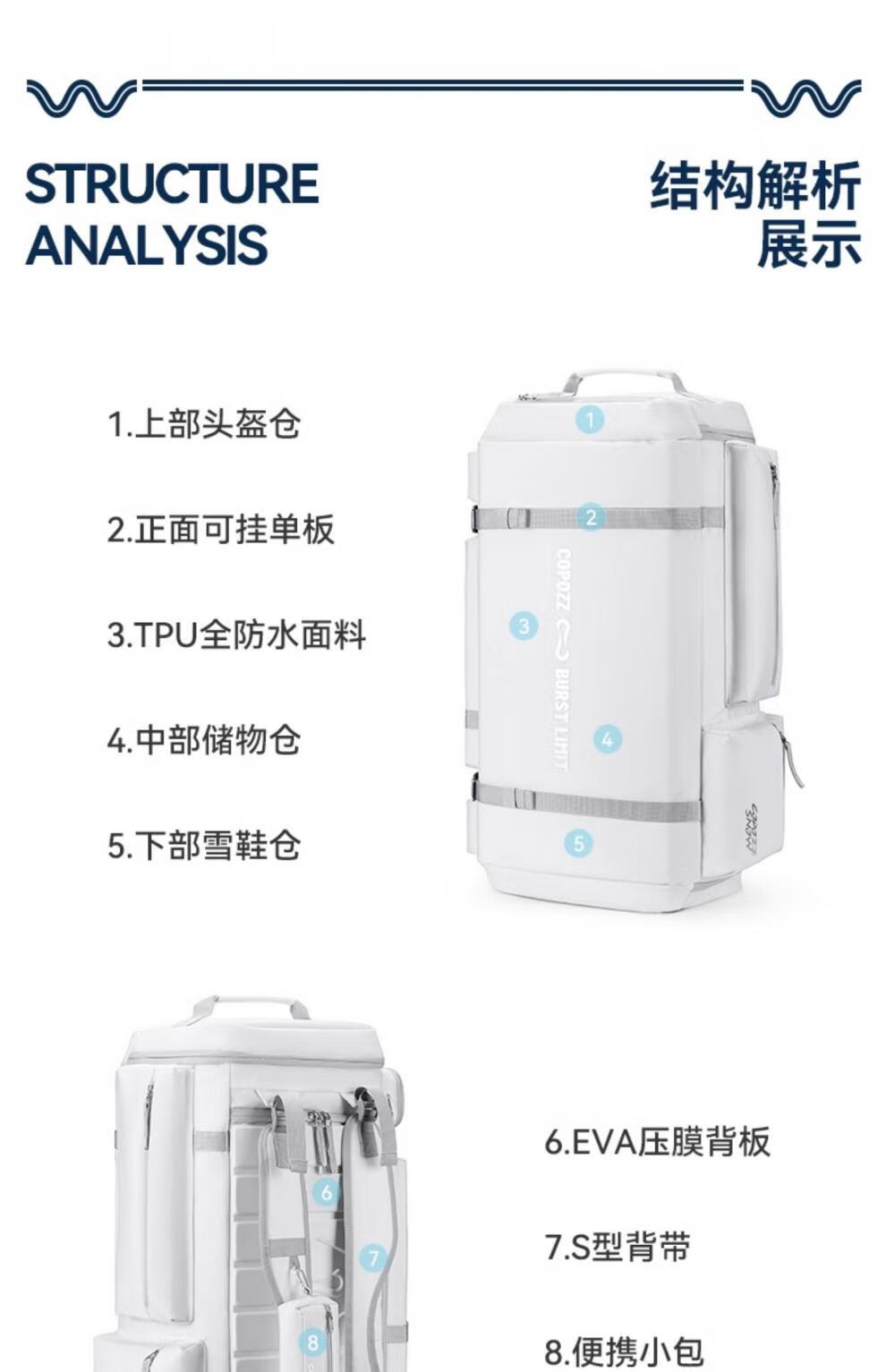 酷破者摋暨佃䯲晟滑雪背包双肩干多功能运动登山板包大容量雪鞋包啊实践 白色55L罓