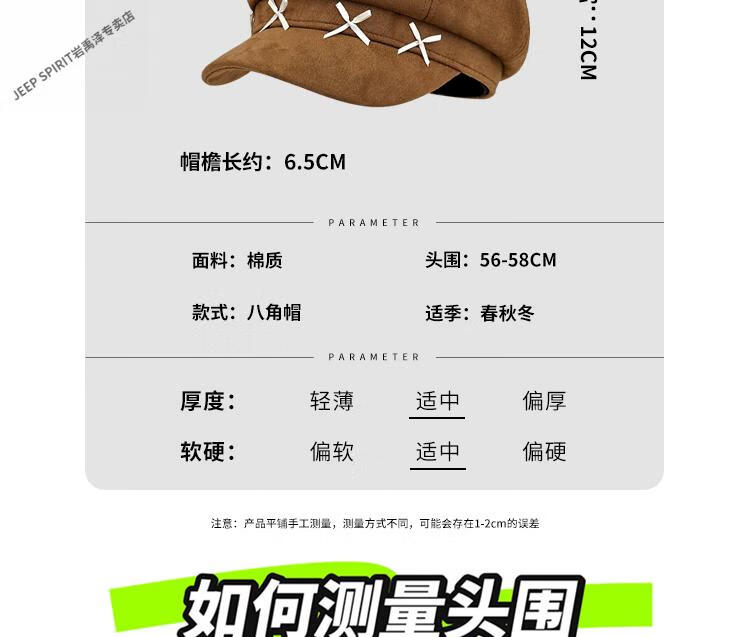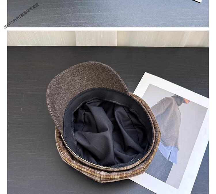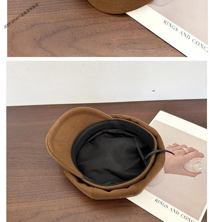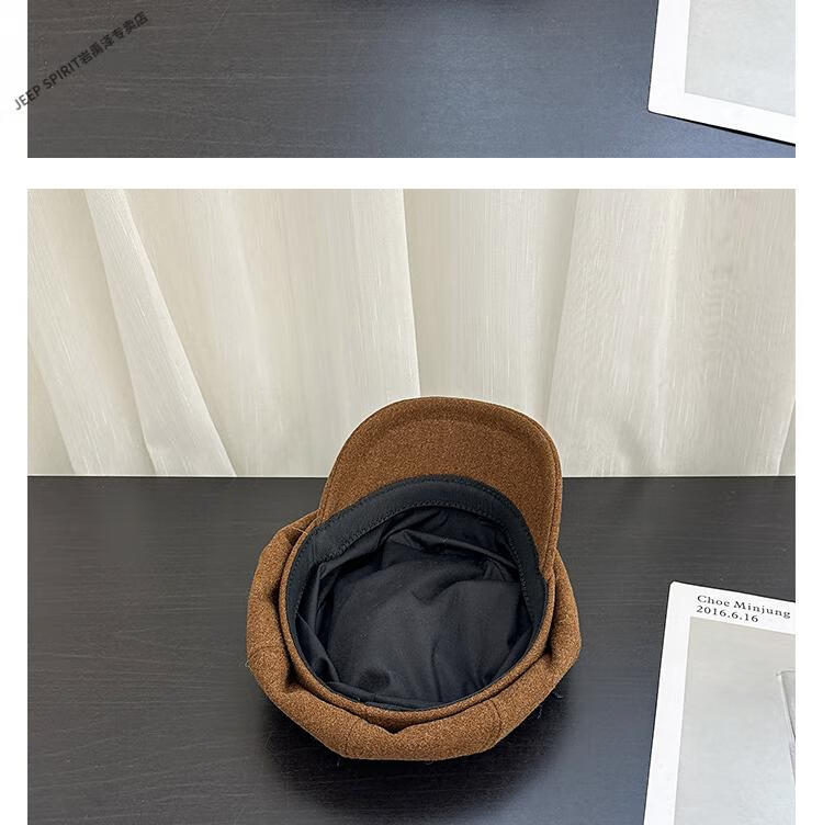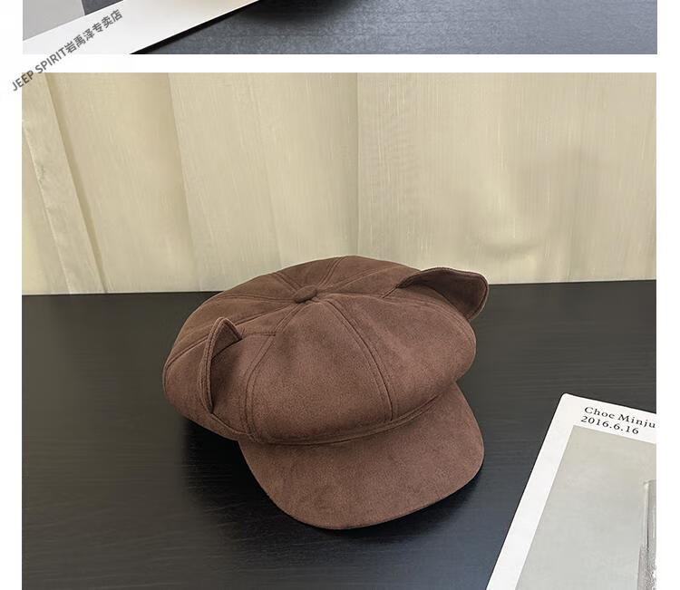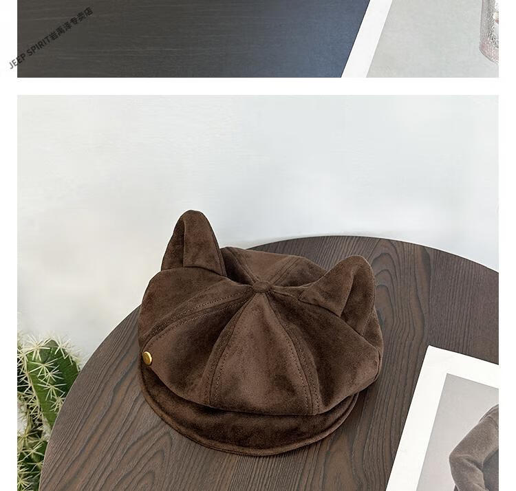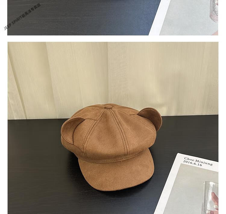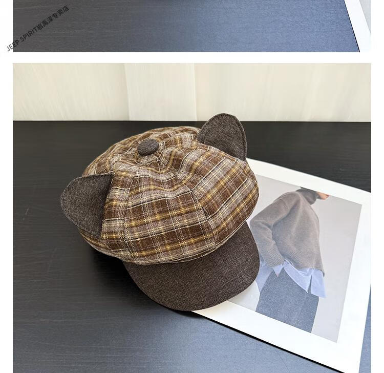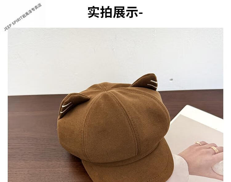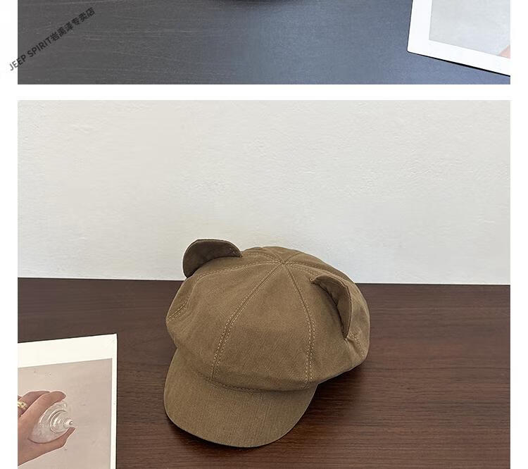 JEEP2025 new cute cat ear brown octagonal hat for women in autumn and winter versatile face-showing small newsboy hat beret trendy cat ear bow patch one size