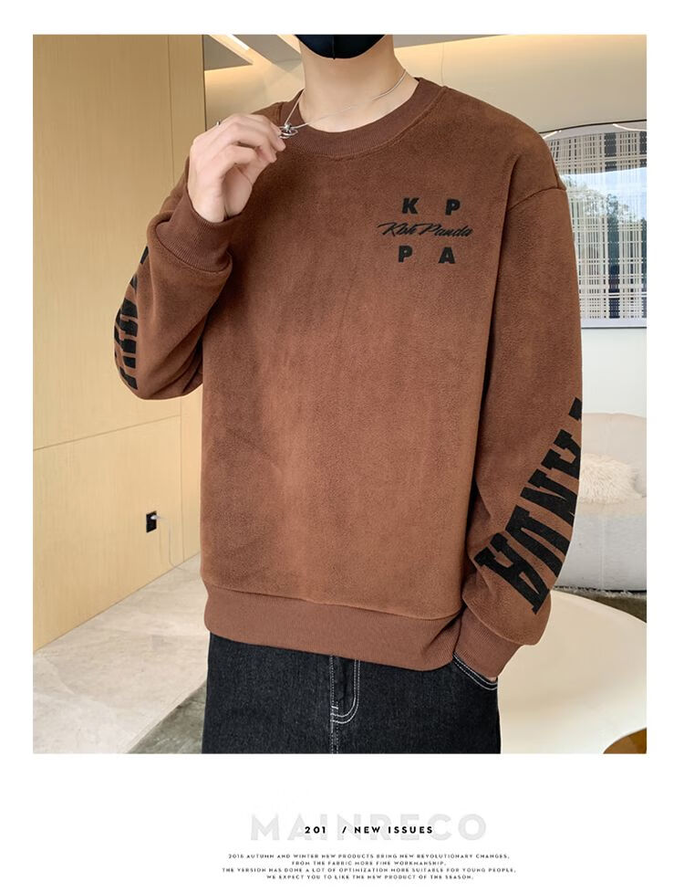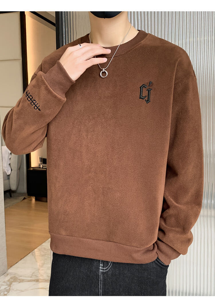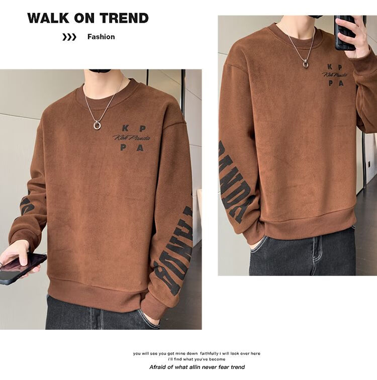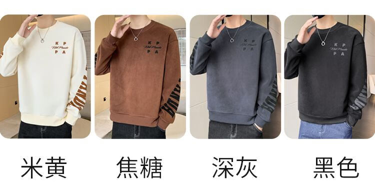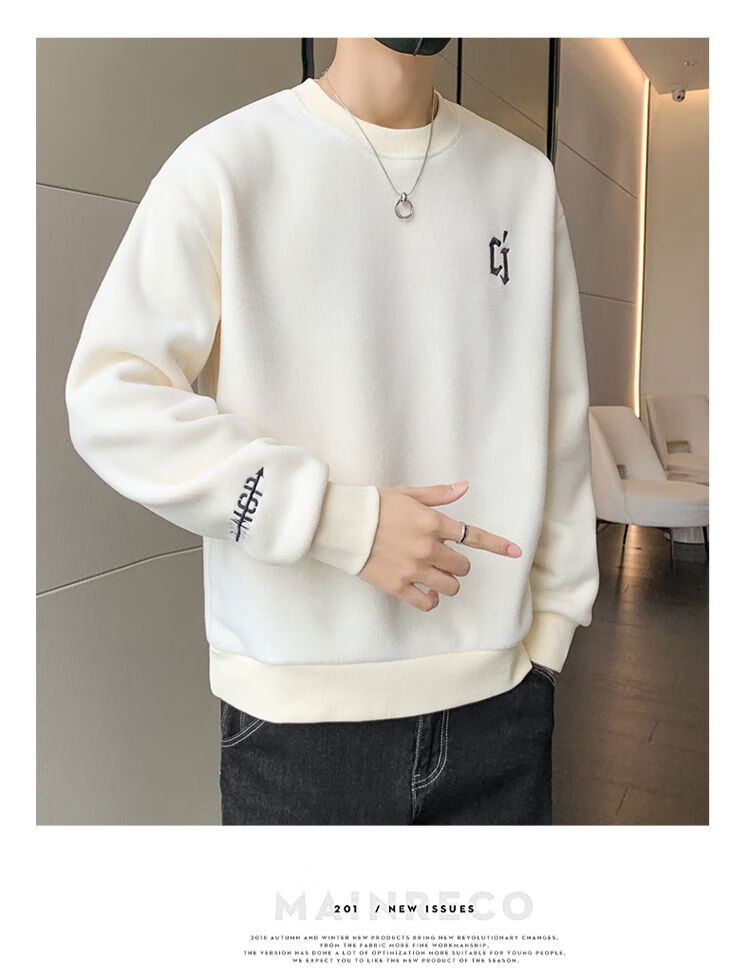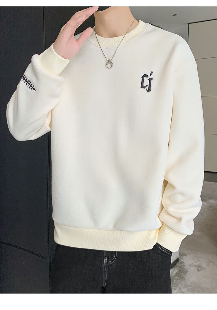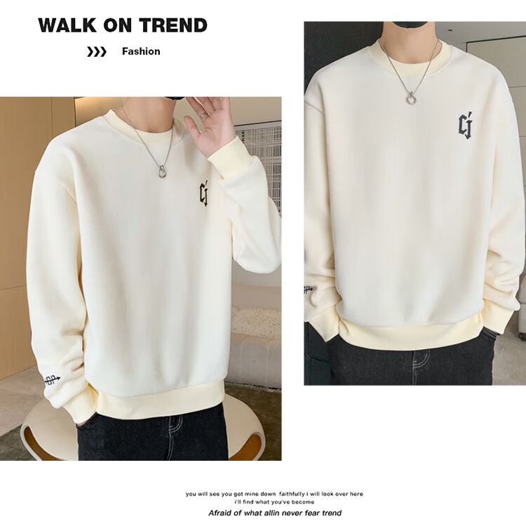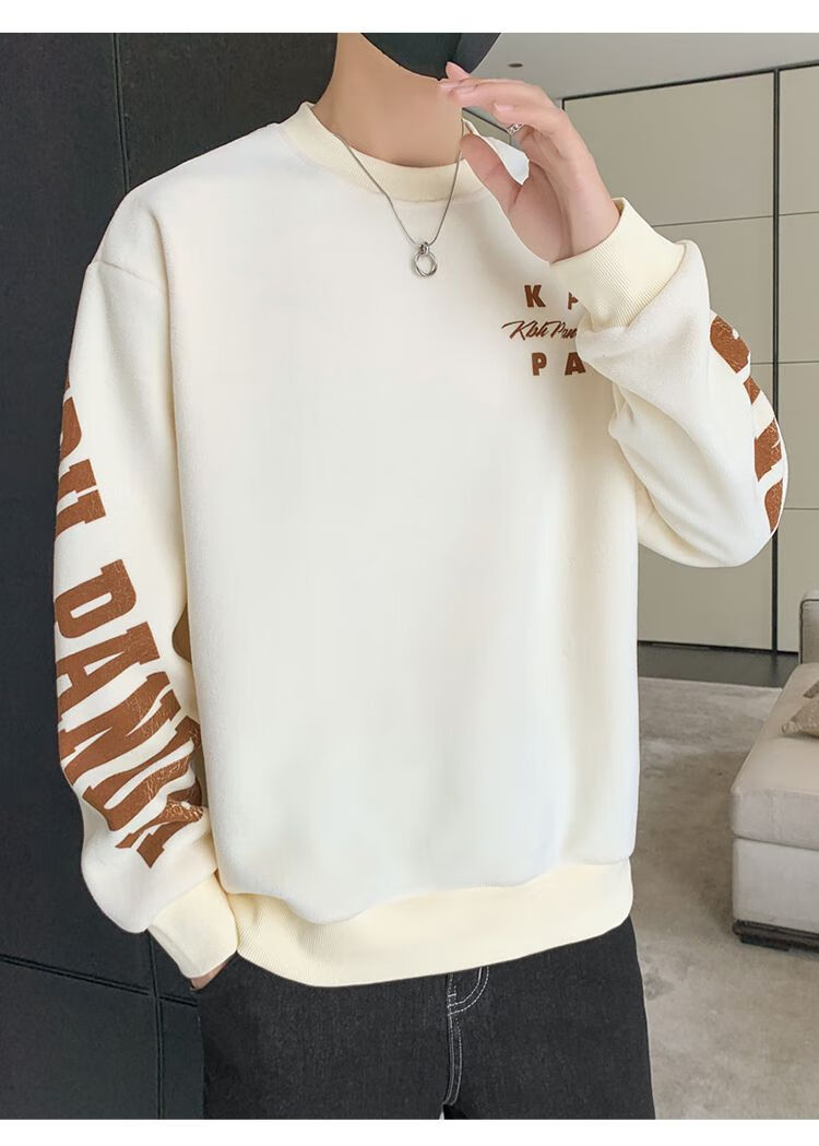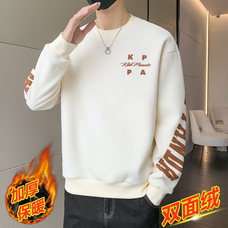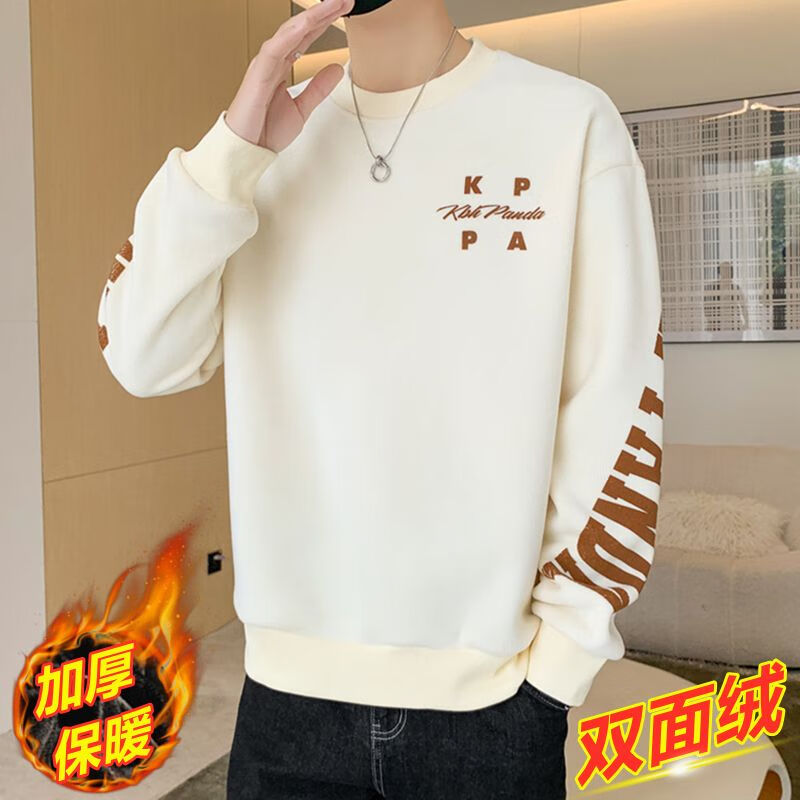 Playboy men's sweatshirt double-sided velvet 2025 autumn and winter new long-sleeved t-shirt bottoming shirt thickened warm lightweight top jacket K3703 beige double-sided velvet XL recommended 120-140Jin Jin equals 0.5 kg