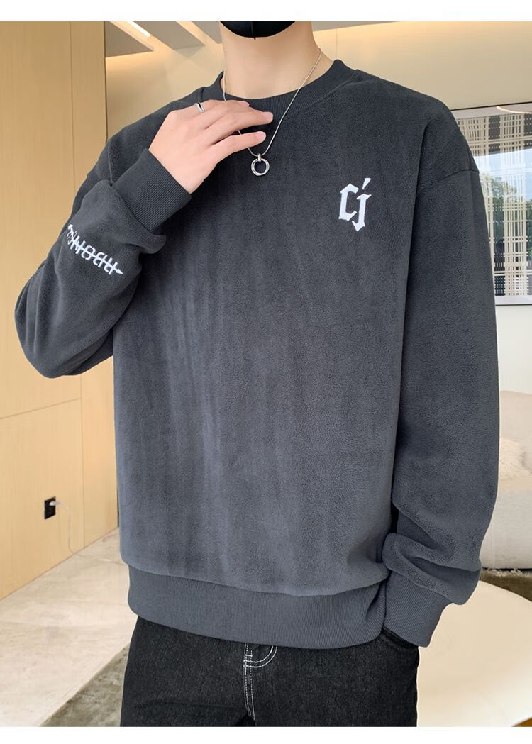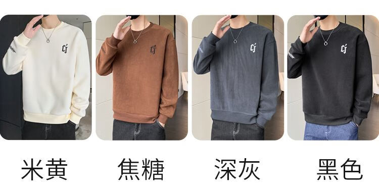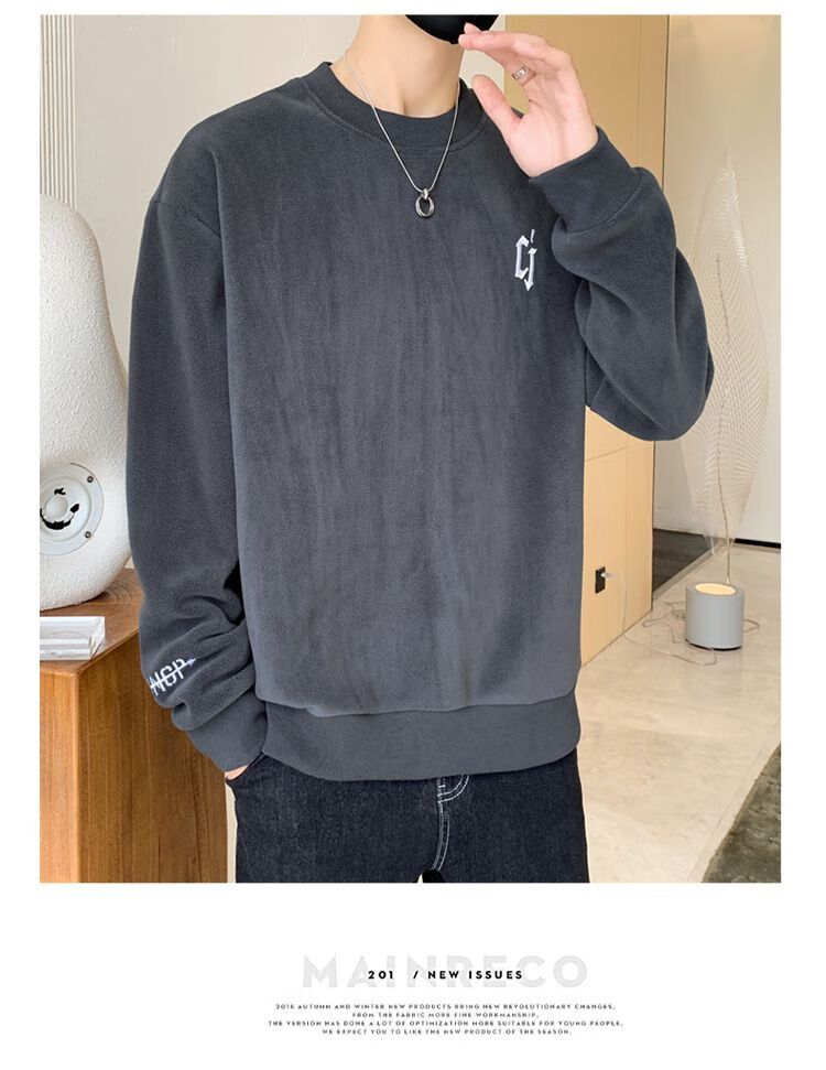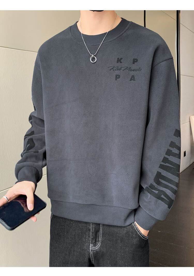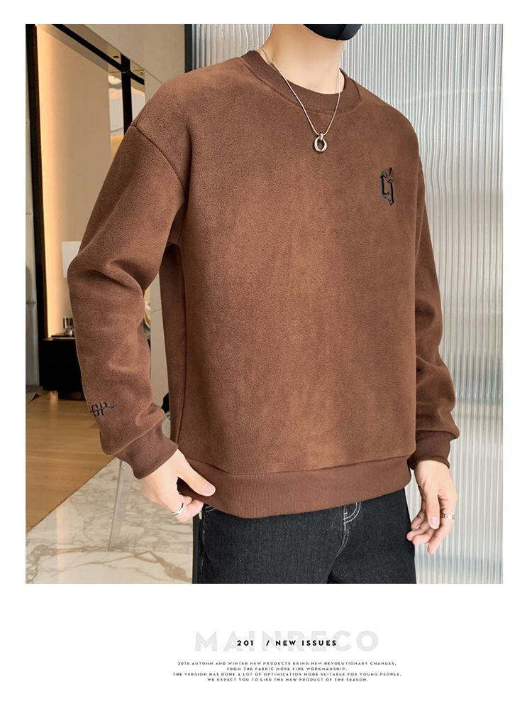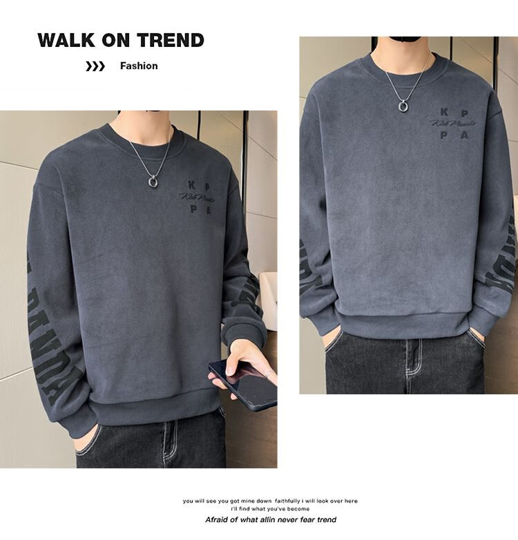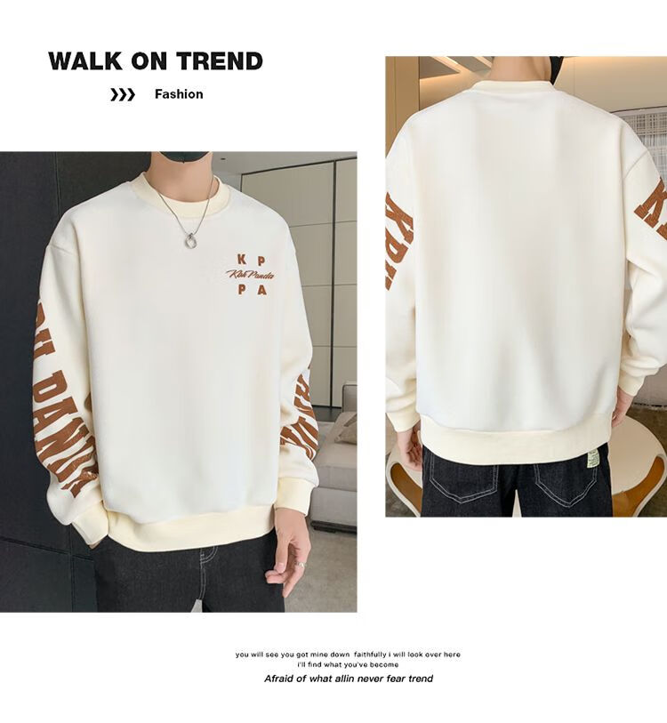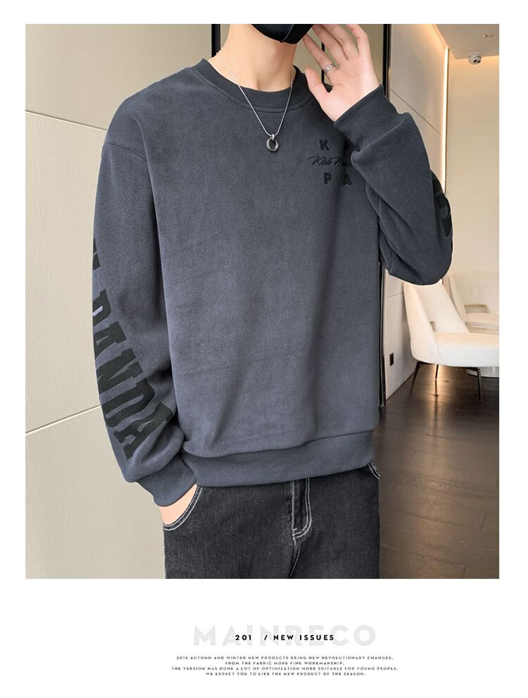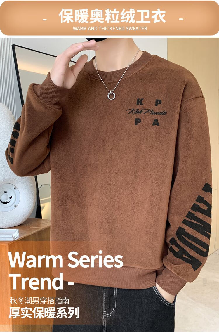 Playboy men's sweatshirt double-sided velvet 2025 autumn and winter new long-sleeved t-shirt bottoming shirt thickened warm lightweight top jacket K3703 beige double-sided velvet XL recommended 120-140Jin Jin equals 0.5 kg