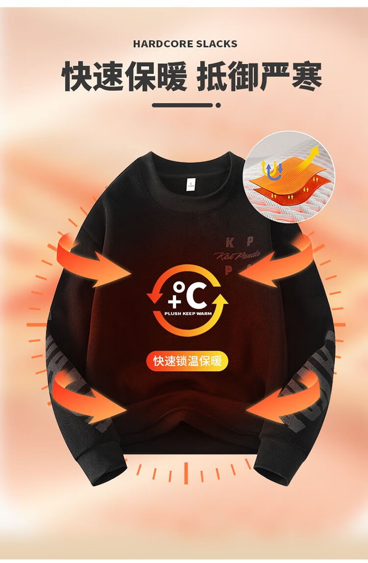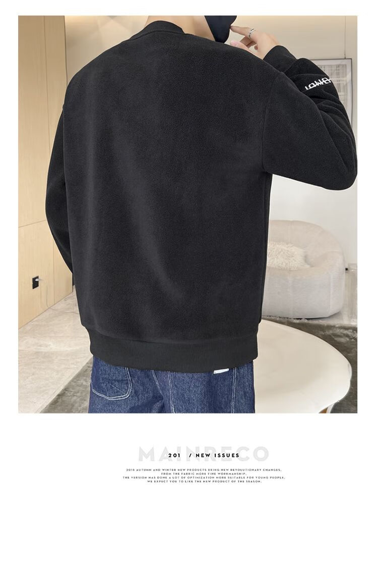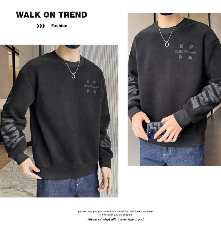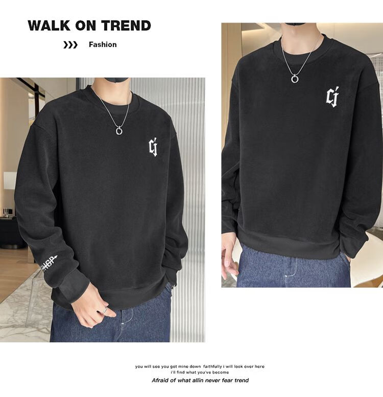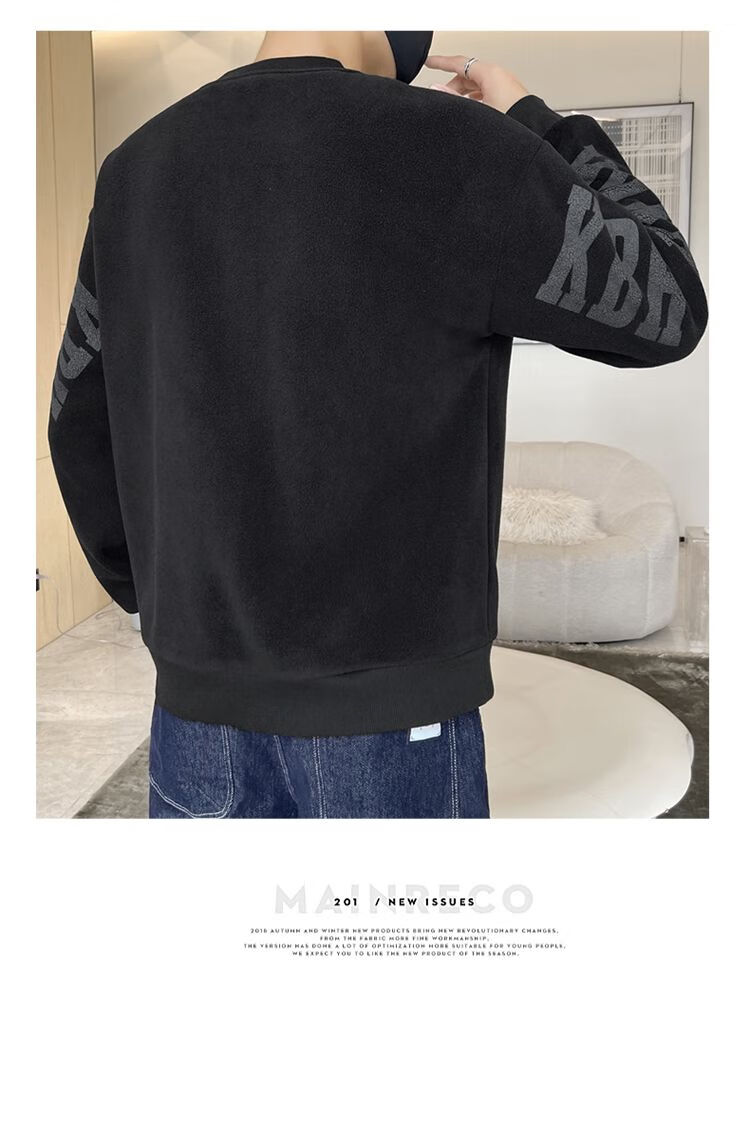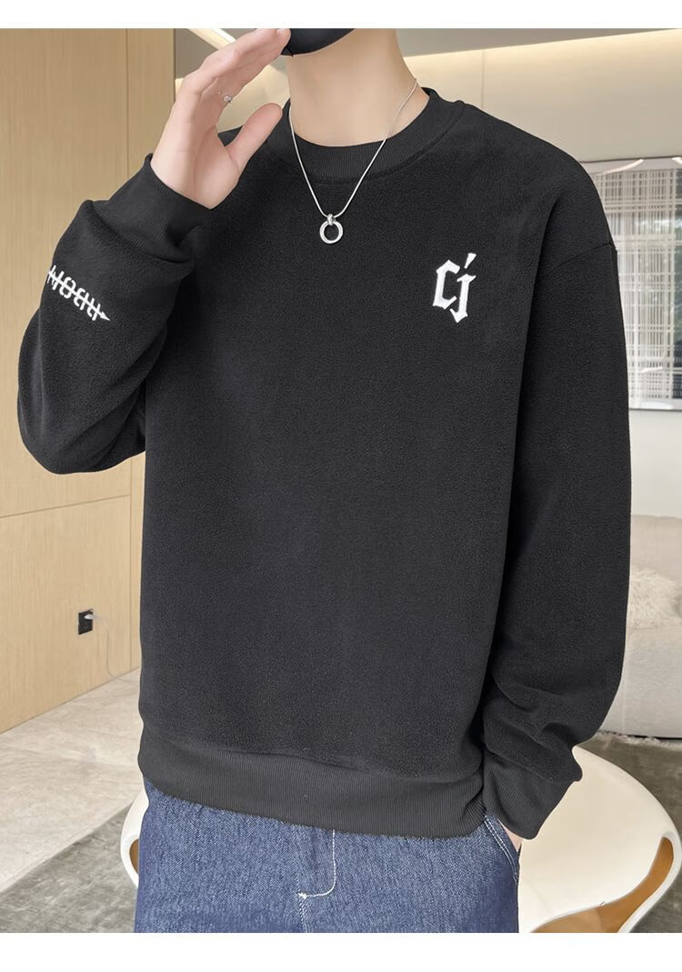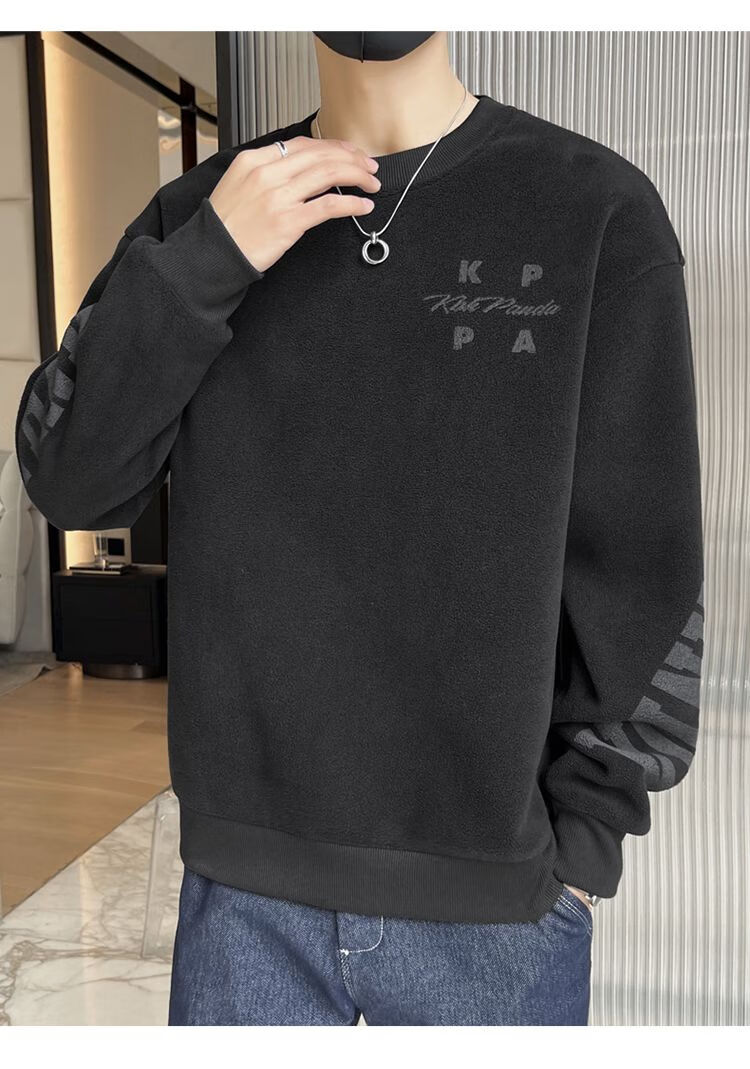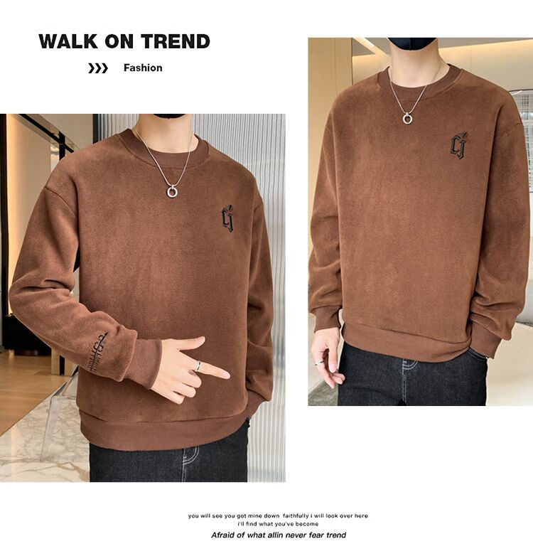 Playboy men's sweatshirt double-sided velvet 2025 autumn and winter new long-sleeved t-shirt bottoming shirt thickened warm lightweight top jacket K3703 beige double-sided velvet XL recommended 120-140Jin Jin equals 0.5 kg