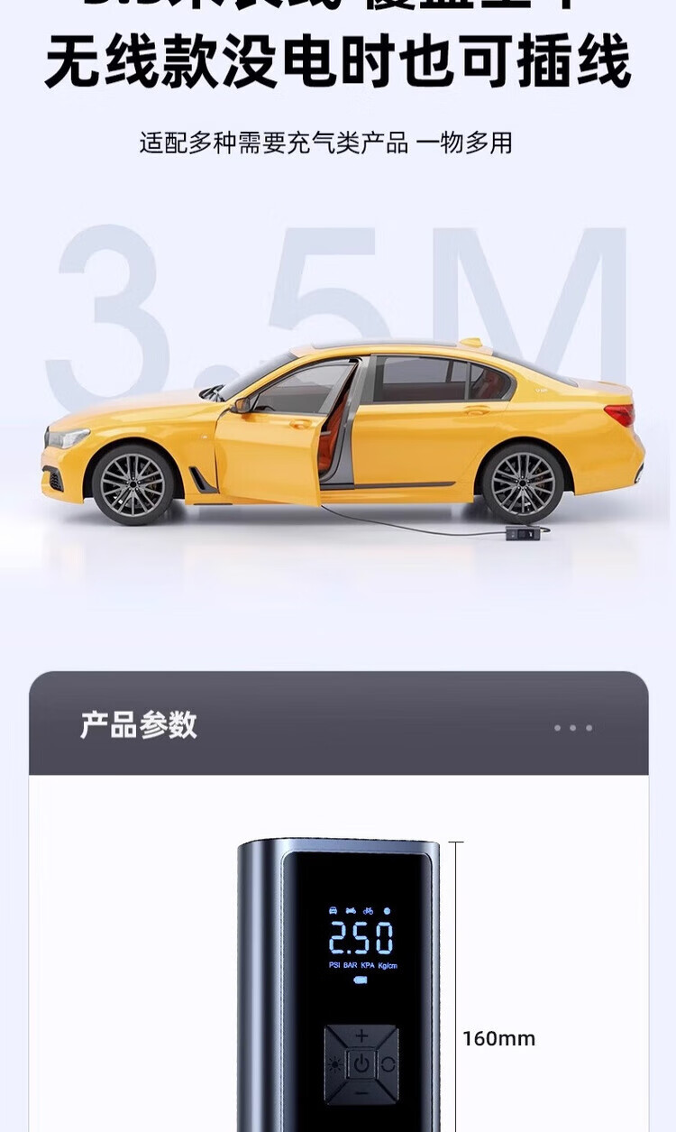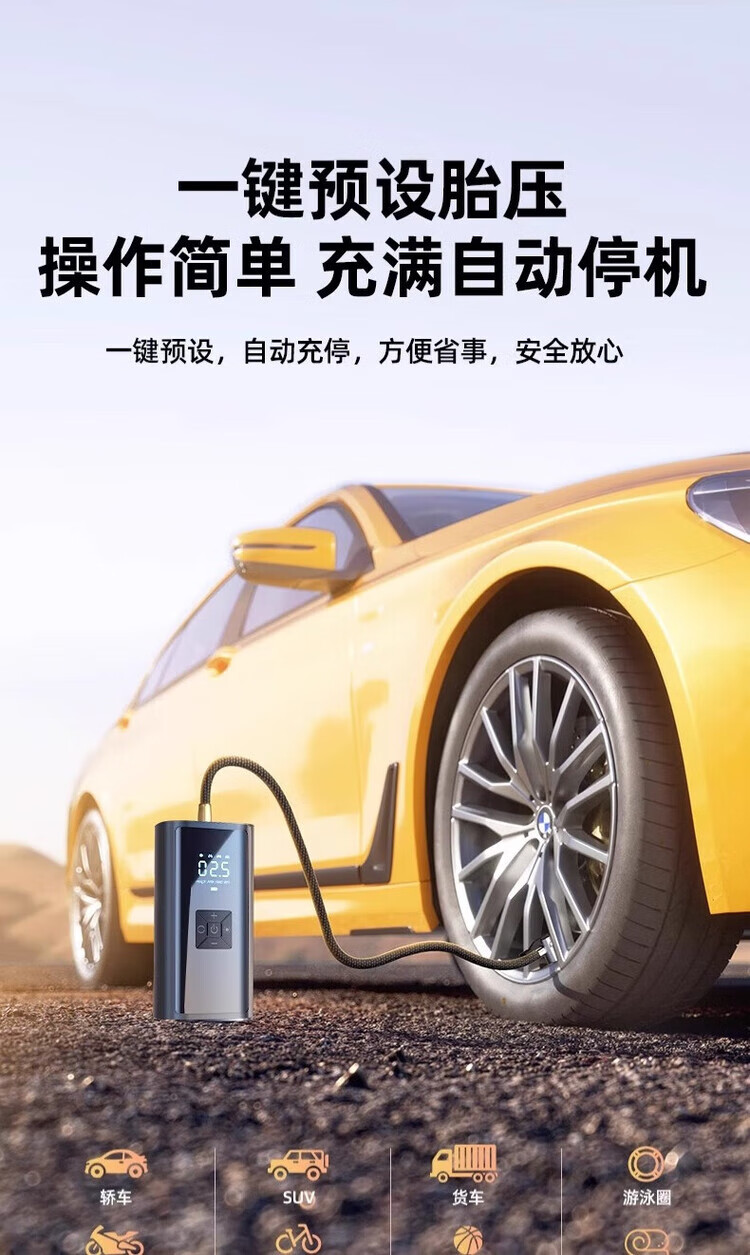 Car Air Pump Car Portable Wireless Inflatable Tire Pump Bicycle Electric Vehicle Pump Wireless Multi-purpose Version + Storage Bag + Air Replenishment Set