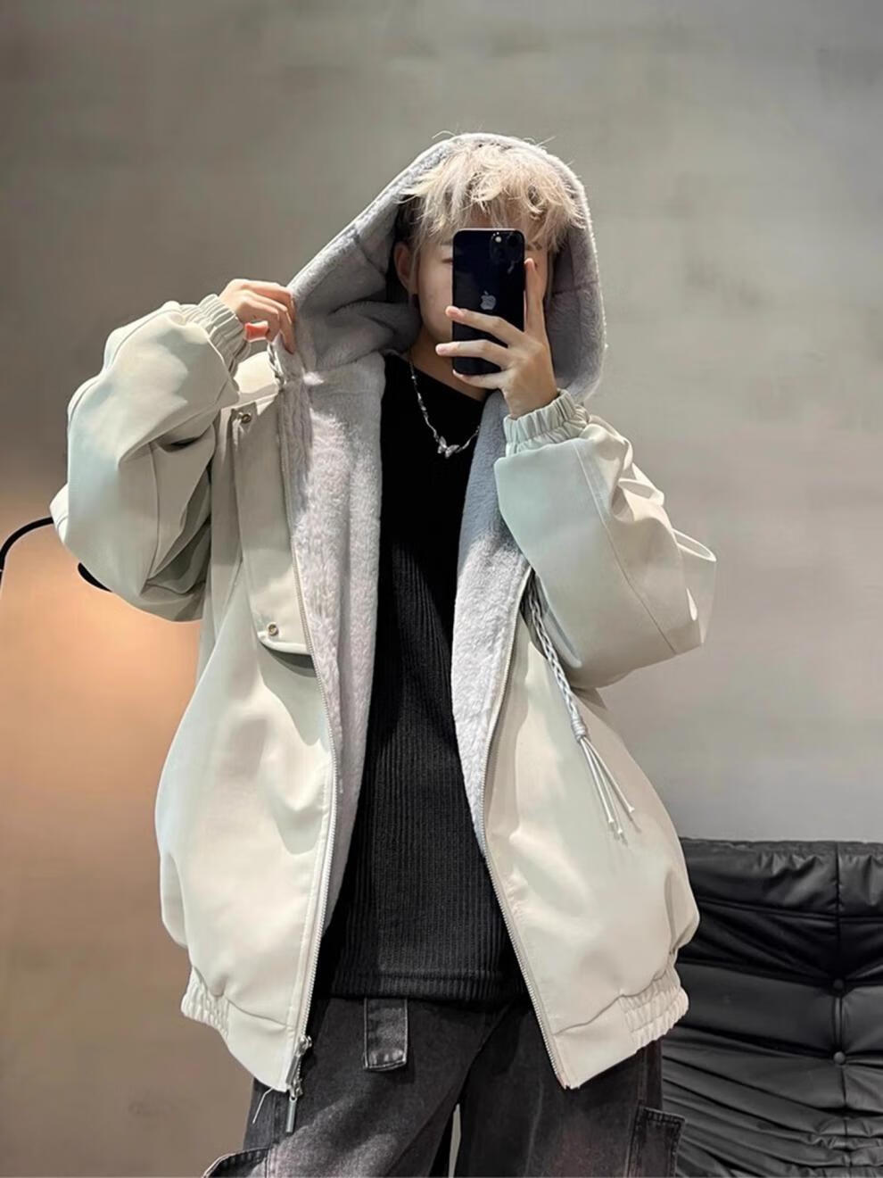 XUANSENTU American PU leather jacket with mountain carving cotton jacket for men in winter, thickened velvet, warm and cold-resistant jacket, hooded jacket, cotton coat A093-M960 black, velvet, upgraded version XL