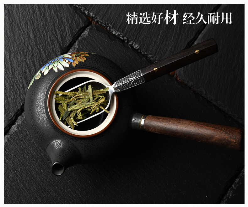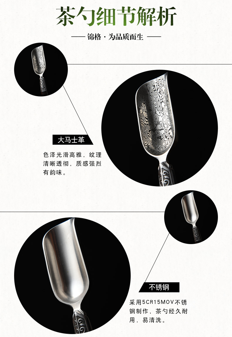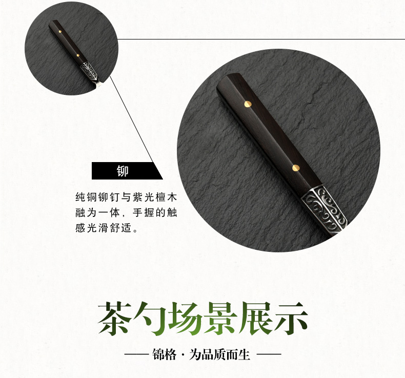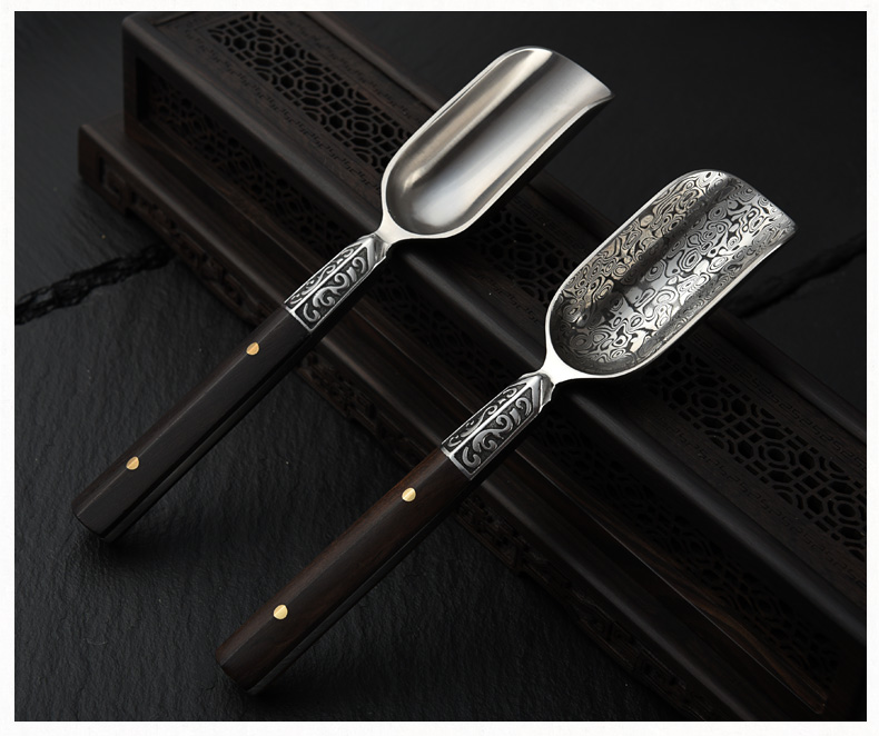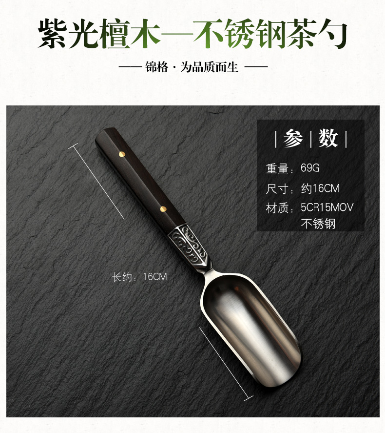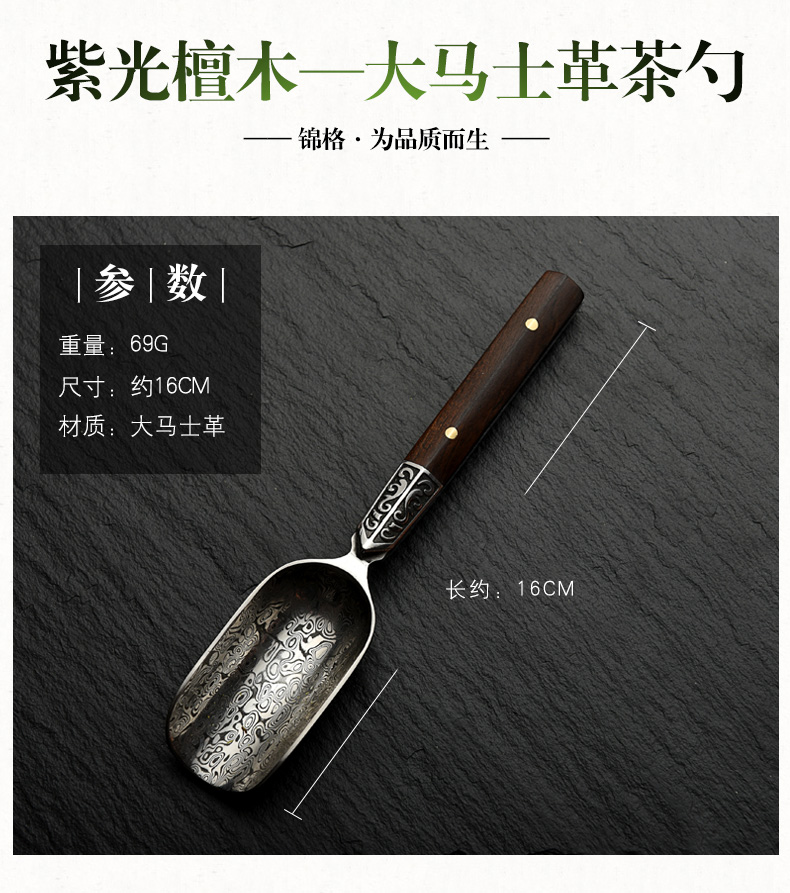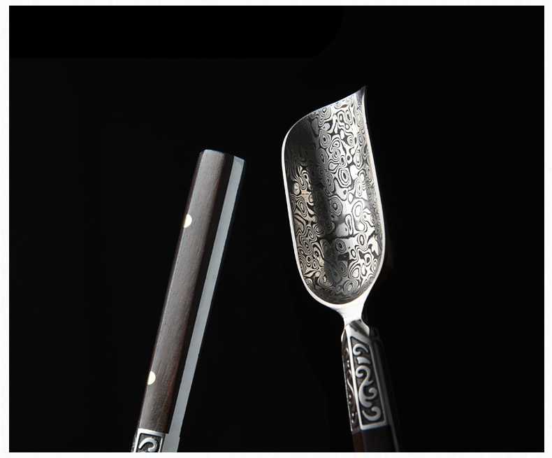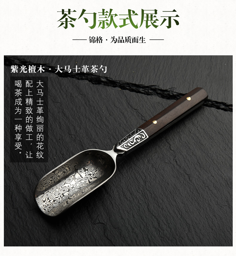 Jinge Damascus steel tea spoon pattern steel solid wood handle tea spoon tea tea shovel tea ceremony accessories six gentlemen Damascus purple sandalwood handle tea spoon