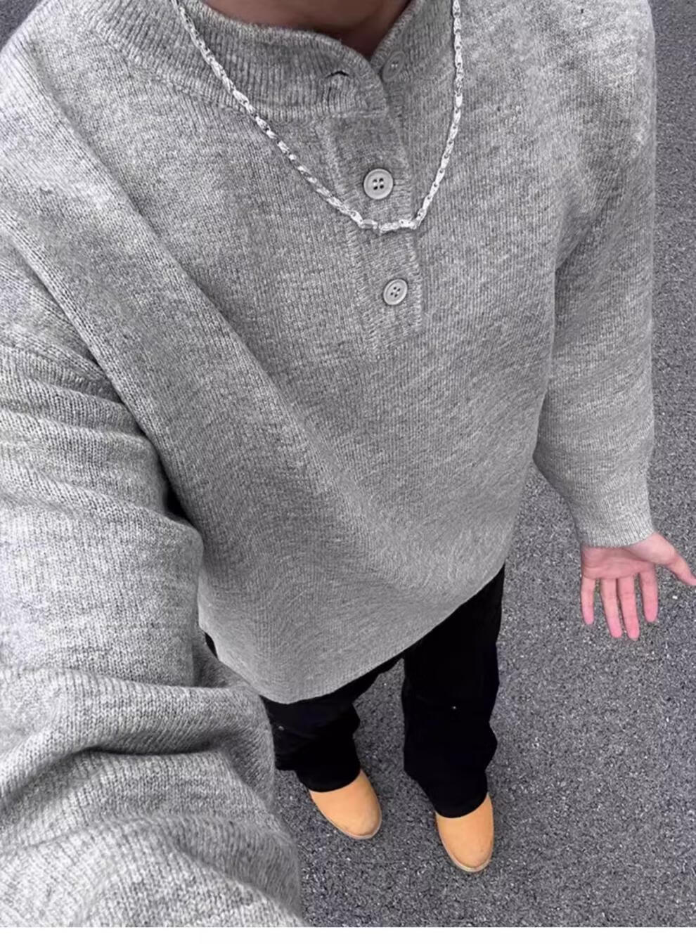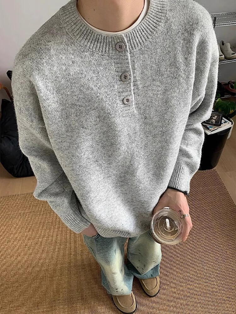 Camel Yangma recommends gray American Henry collar woolen men's style lazy style bottoming sweater cleanfit light gray _ Henry collar new upgraded version M _ 90-115Jin Jin equals 0.5 kg