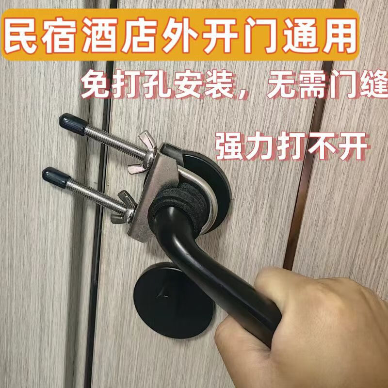 Hotel stainless steel outward opening door stopper, door stopper, anti-theft door handle lock, anti-pry, anti-collision opening, business trip door lock, outward opening door stopper, free protective tools