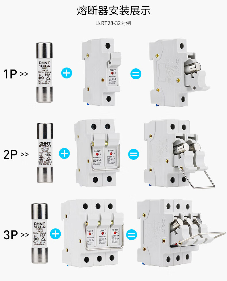 Chint cylindrical fuse core/RT14-32 fuse fuse with X RT28-63X base 3P