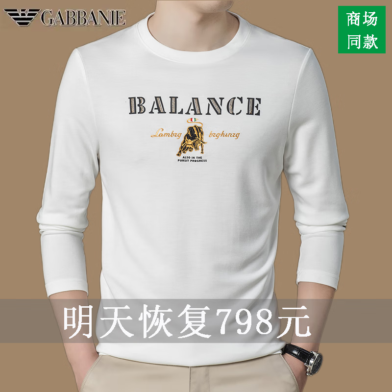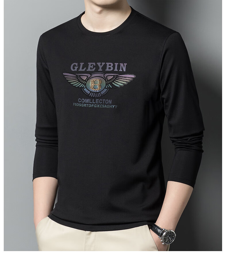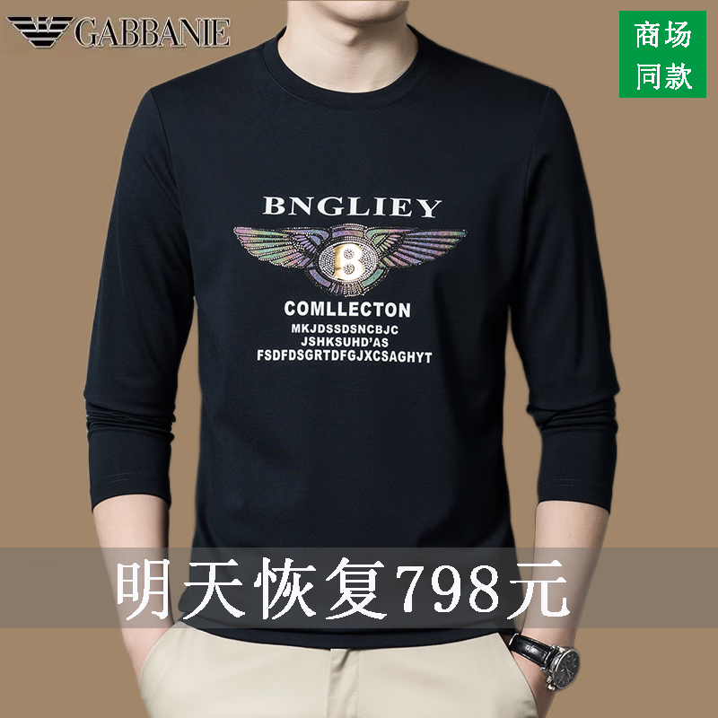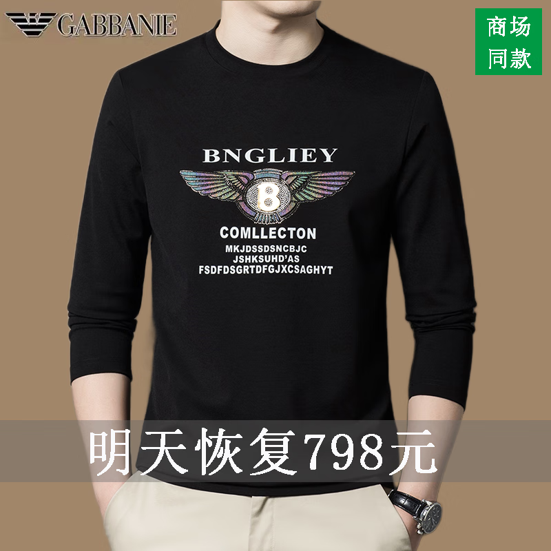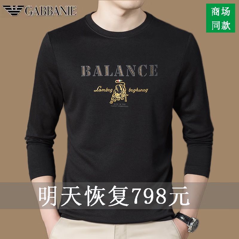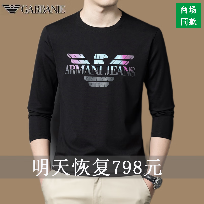 EMPORIO ARMANI EA7 Armani men's long-sleeved T-shirt autumn cotton printed round neck ice silk casual sweatshirt bottoming shirt trendy black 2027 M 165 (suitable for weight 90-120Jin Jin equals 0.5 kg)