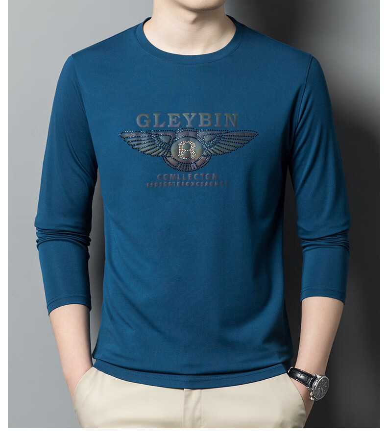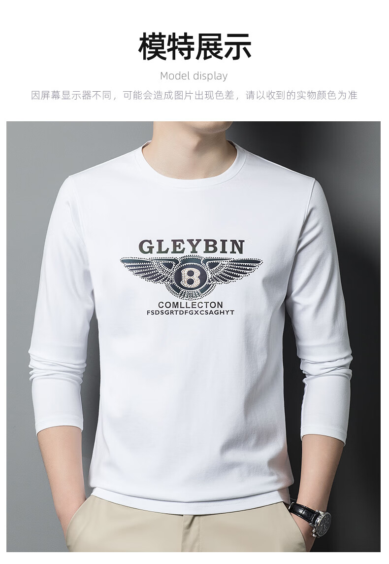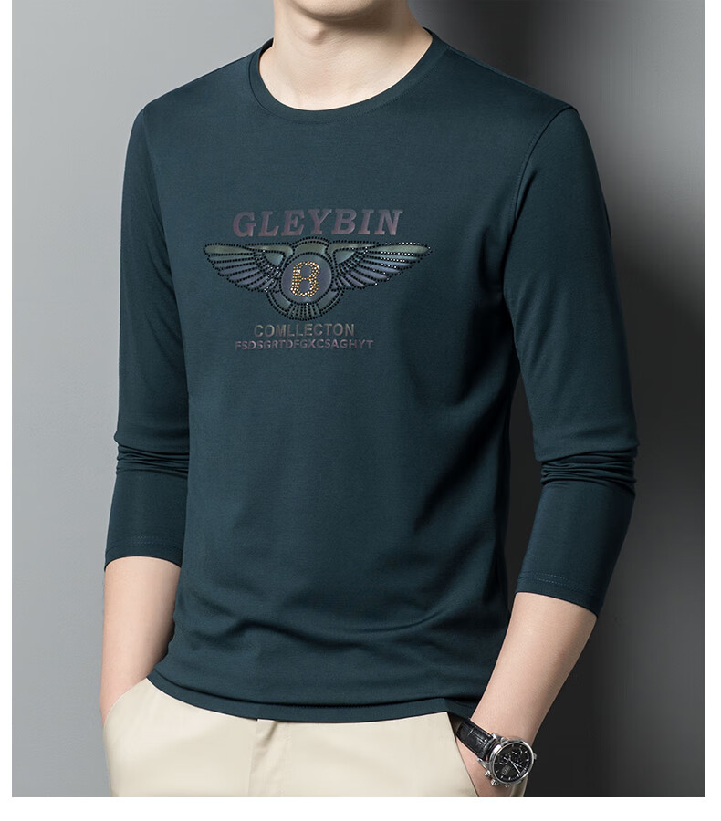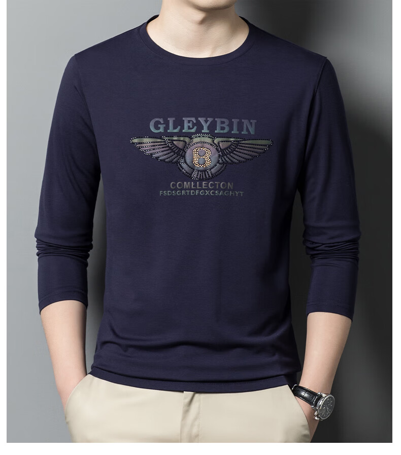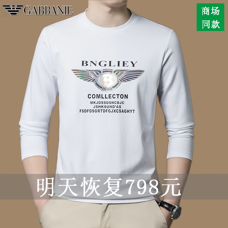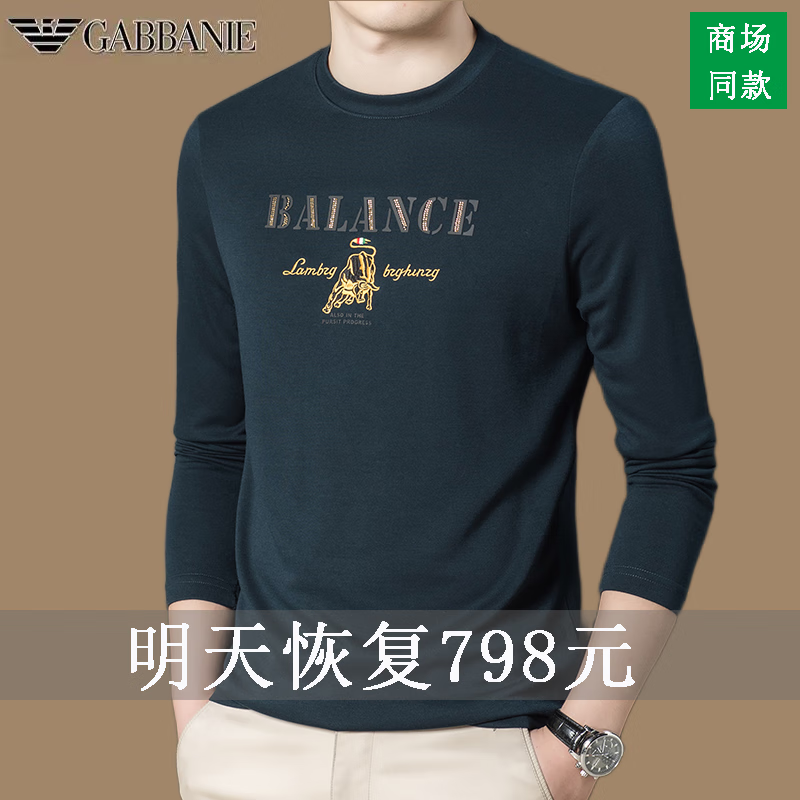 EMPORIO ARMANI EA7 Armani men's long-sleeved T-shirt autumn cotton printed round neck ice silk casual sweatshirt bottoming shirt trendy black 2027 M 165 (suitable for weight 90-120Jin Jin equals 0.5 kg)
