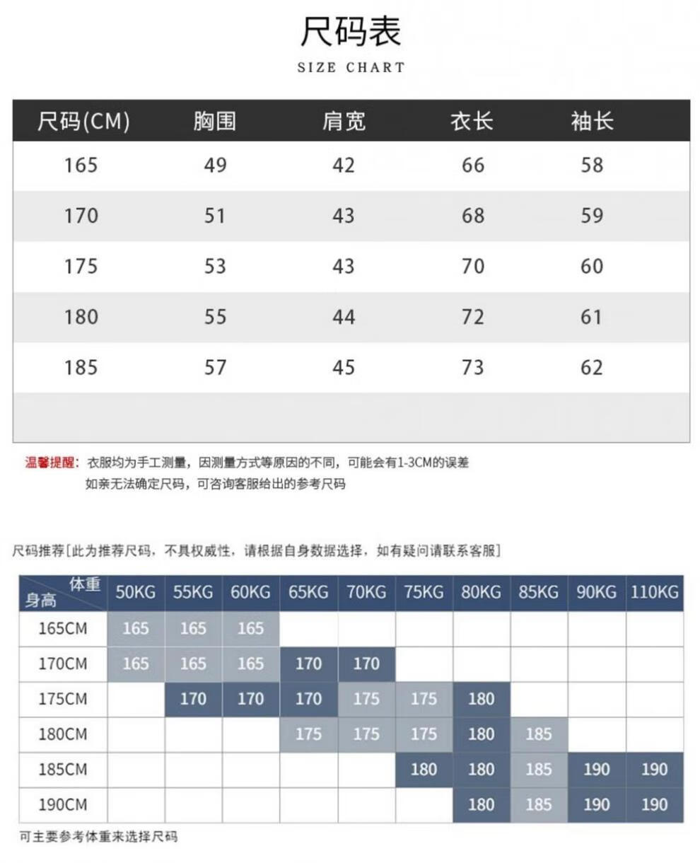 China (cm) 165 / 88-90 170 / 96-98 175 / 108-110 180 / 118-122 185 / 126-130