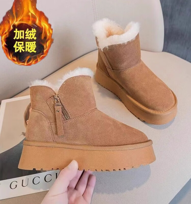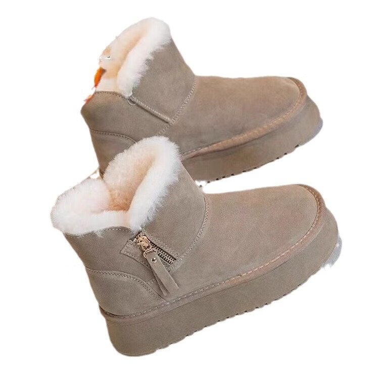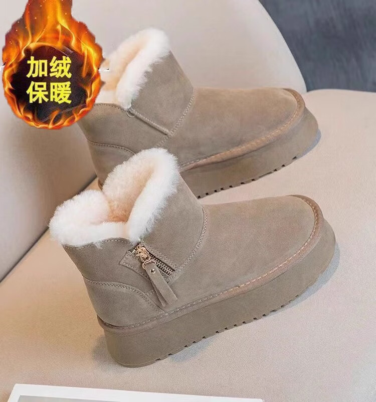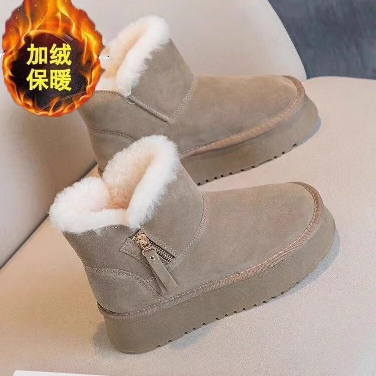 Huilirui Northeast snow boots for women winter 2025 new velvet thickened khaki cotton shoes thick sole non-slip warm bread shoes yellow brown 38