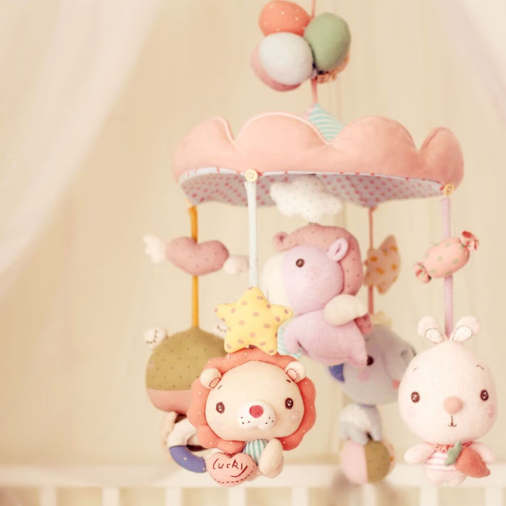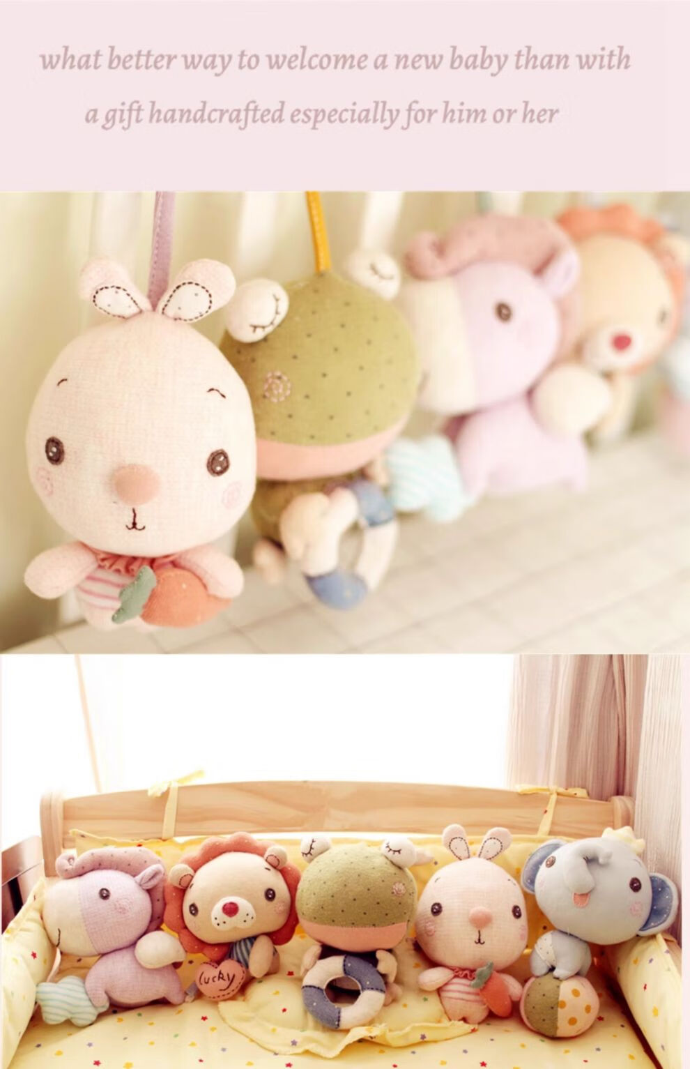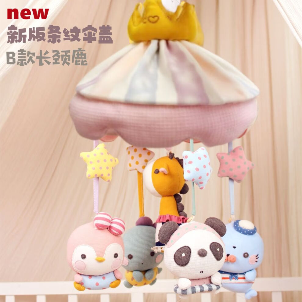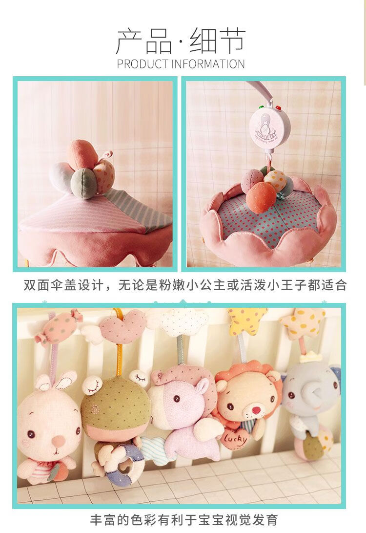 Shantou Lincun Aileqi handmade pure cotton newborn crib bell music rotating bedside bell fabric baby doll toy diy A type + double spiral bracket + multi-functional music