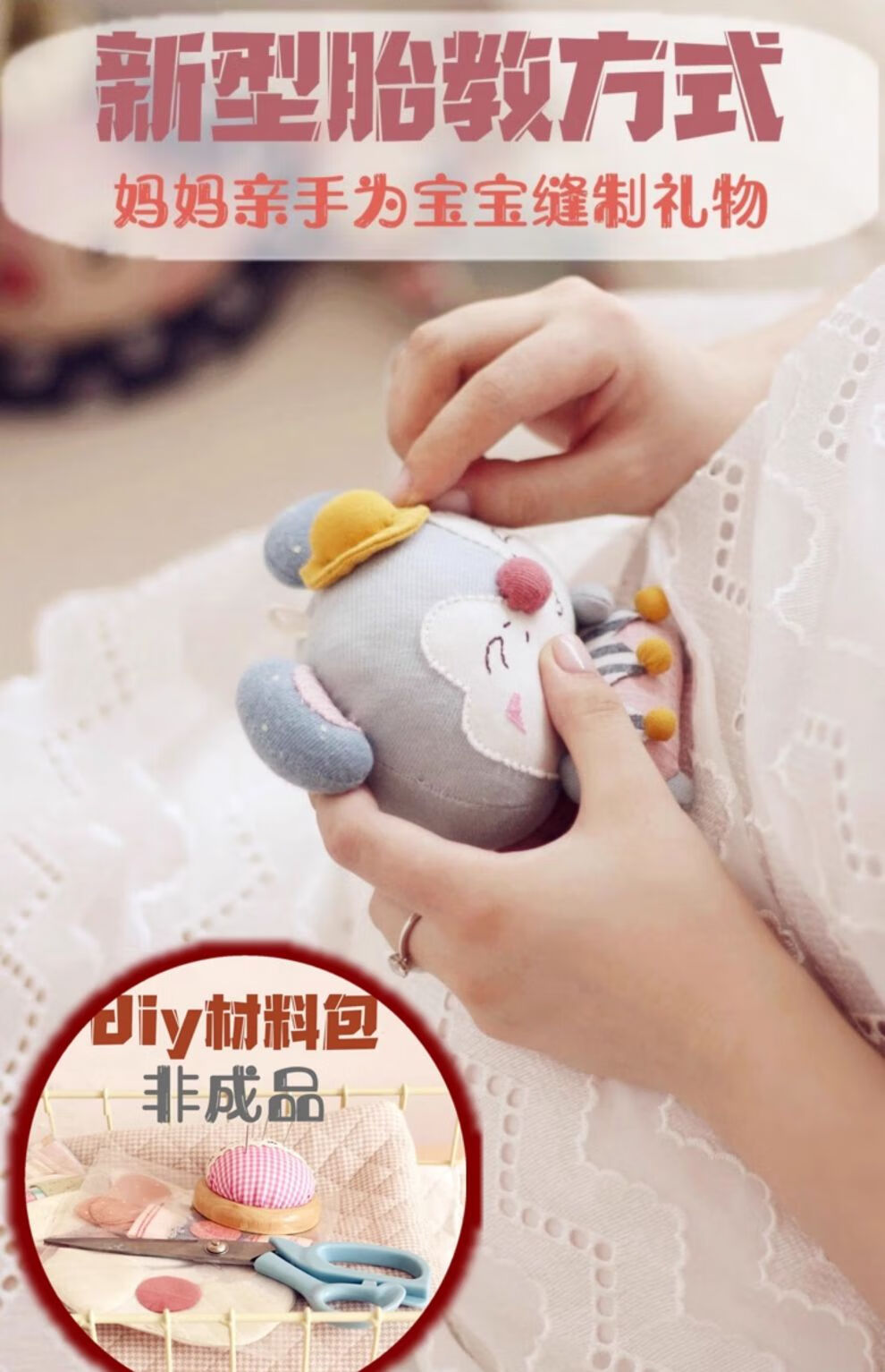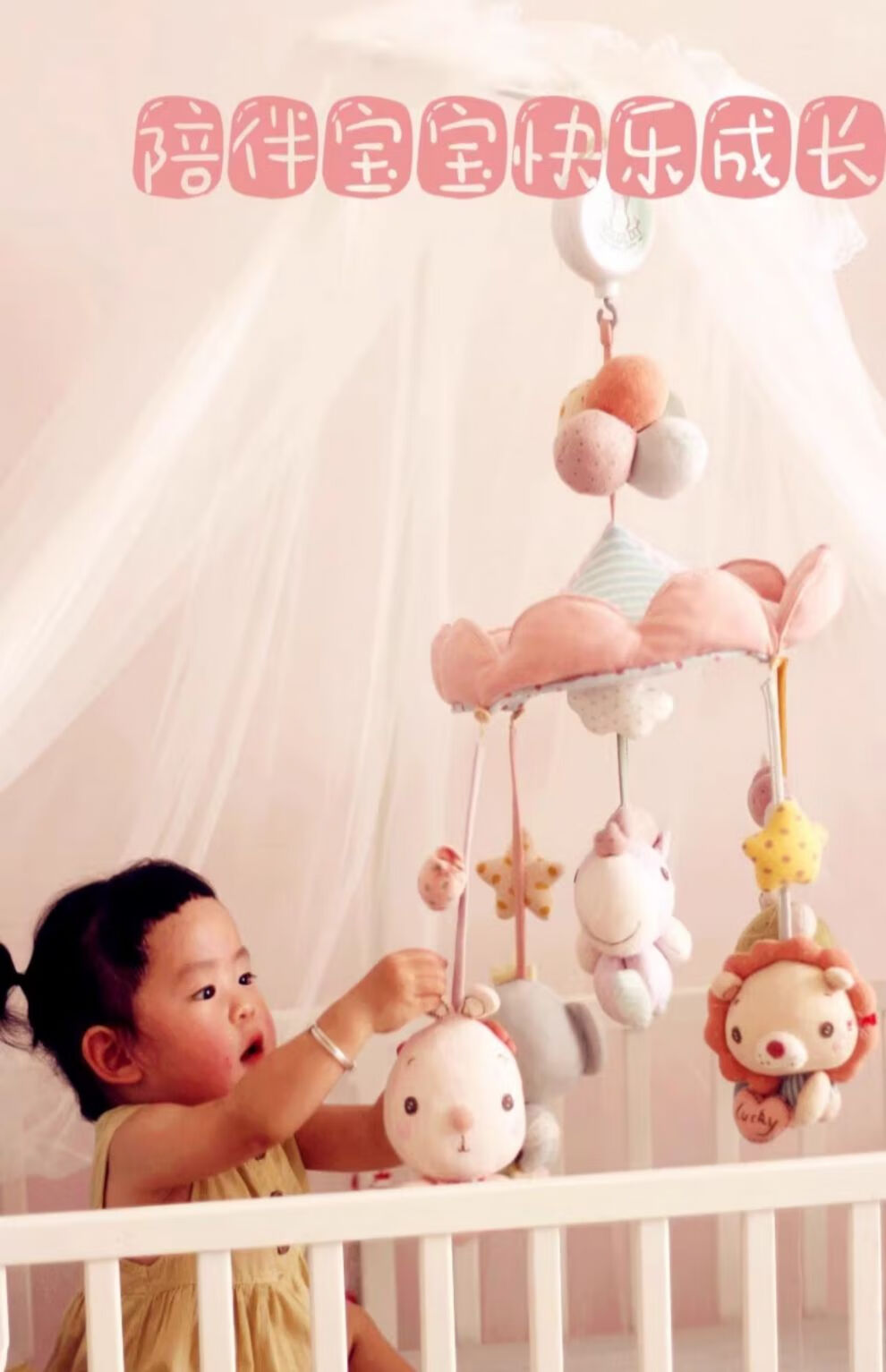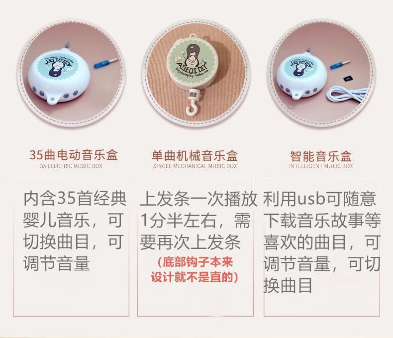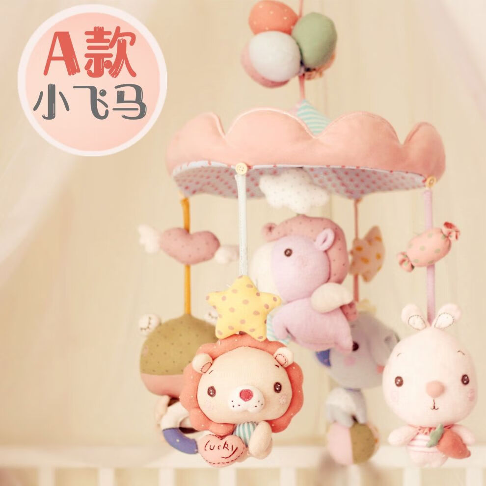Shantou Lincun Aileqi handmade pure cotton newborn crib bell music rotating bedside bell fabric baby doll toy diy A type + double spiral bracket + multi-functional music