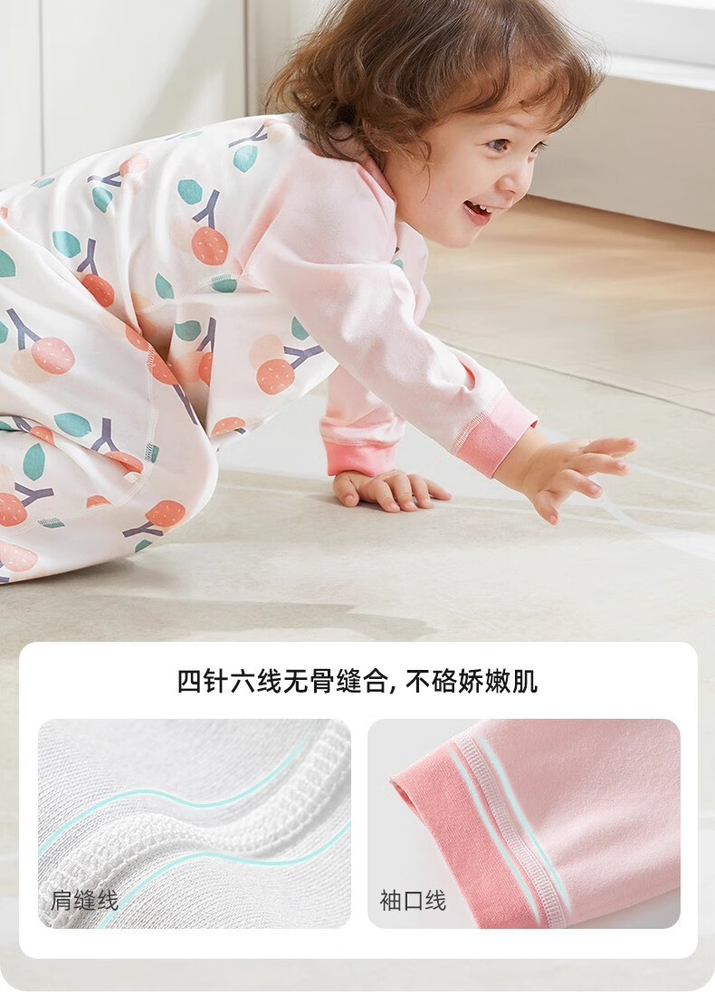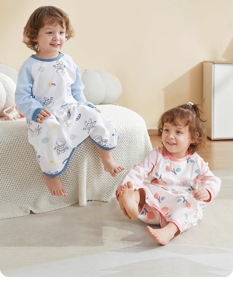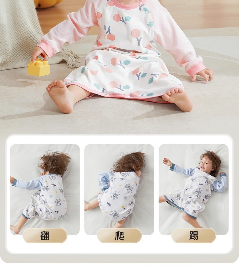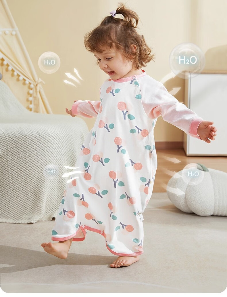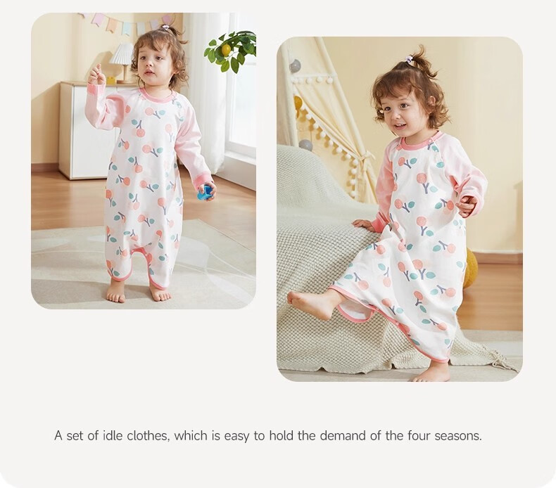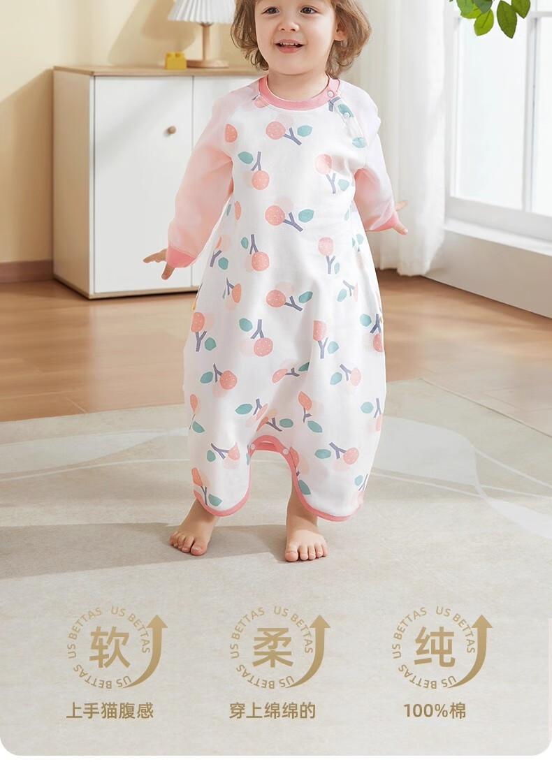 Peptus Baby Sleeping Bag Spring and Autumn Pure Cotton Baby Pajamas Anti-Kick Quilt Children's One-piece 2025 Three-quarter Sleeves Room Temperature 25 and Above Pomegranate Fruit House One-size-fits-all Size 73 Suitable for height 65-cm