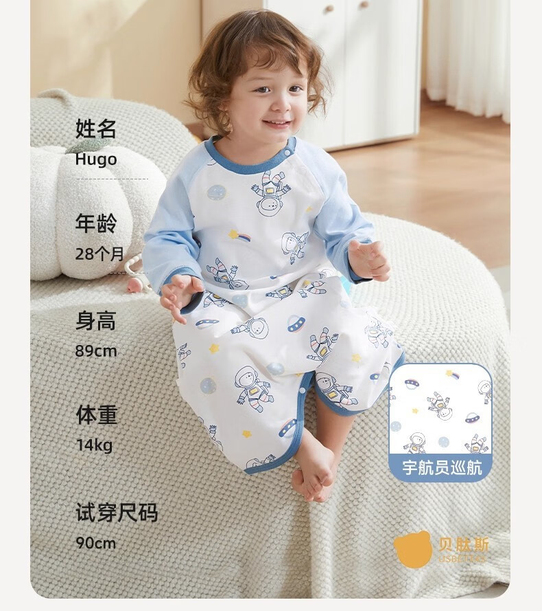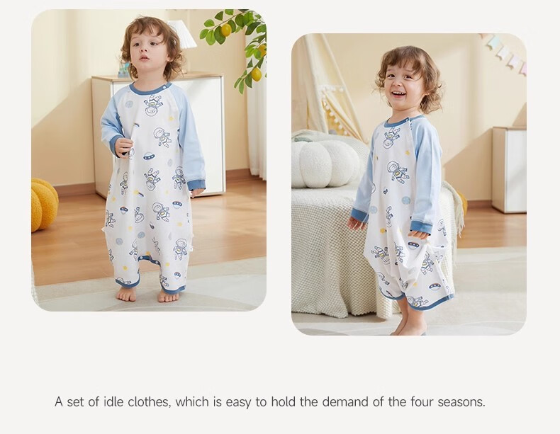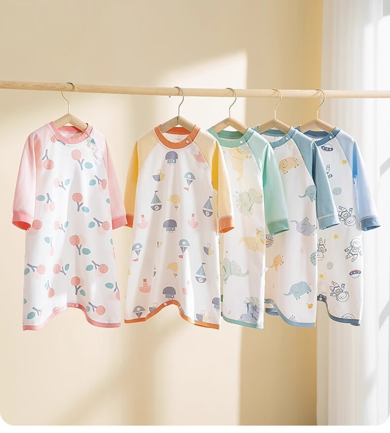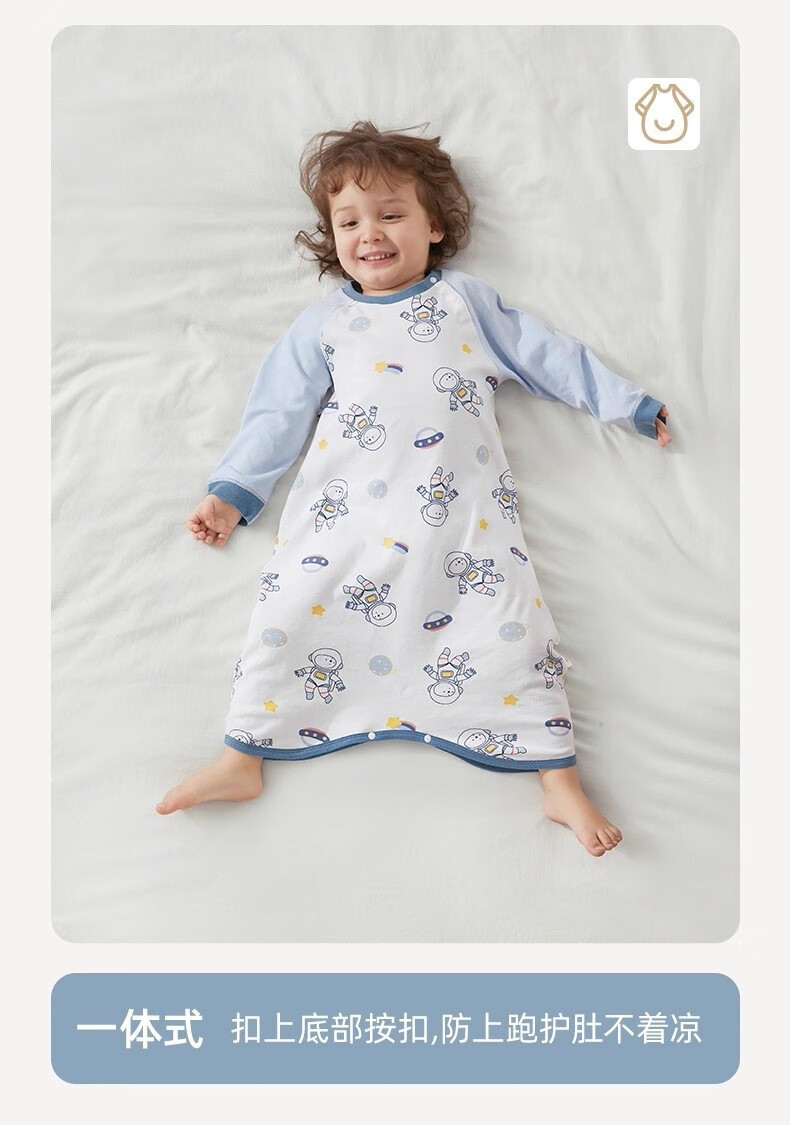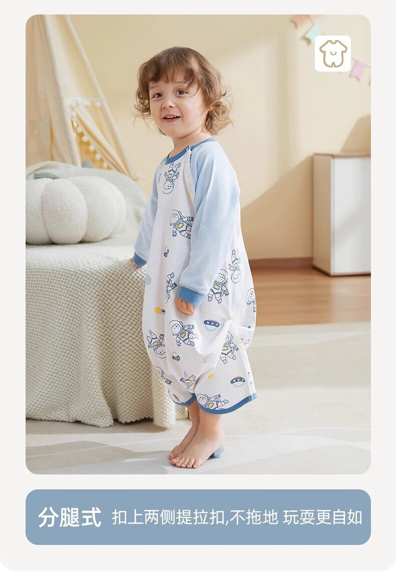 Peptus Baby Sleeping Bag Spring and Autumn Pure Cotton Baby Pajamas Anti-Kick Quilt Children's One-piece 2025 Three-quarter Sleeves Room Temperature 25 and Above Pomegranate Fruit House One-size-fits-all Size 73 Suitable for height 65-cm