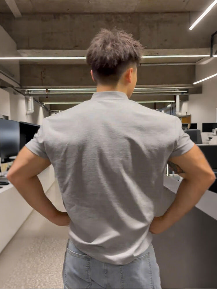 Light gray Henry collar short-sleeved men's waffle T-shirt bottoming shirt showing muscle fitness American retro polo shirt Gray + gray two-piece upgraded model high quality M M recommended 105-120 Jin Jin equals 0.5 kg