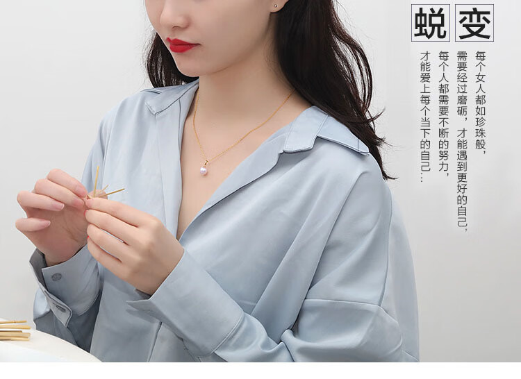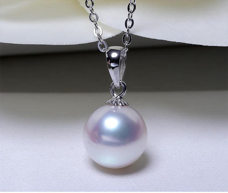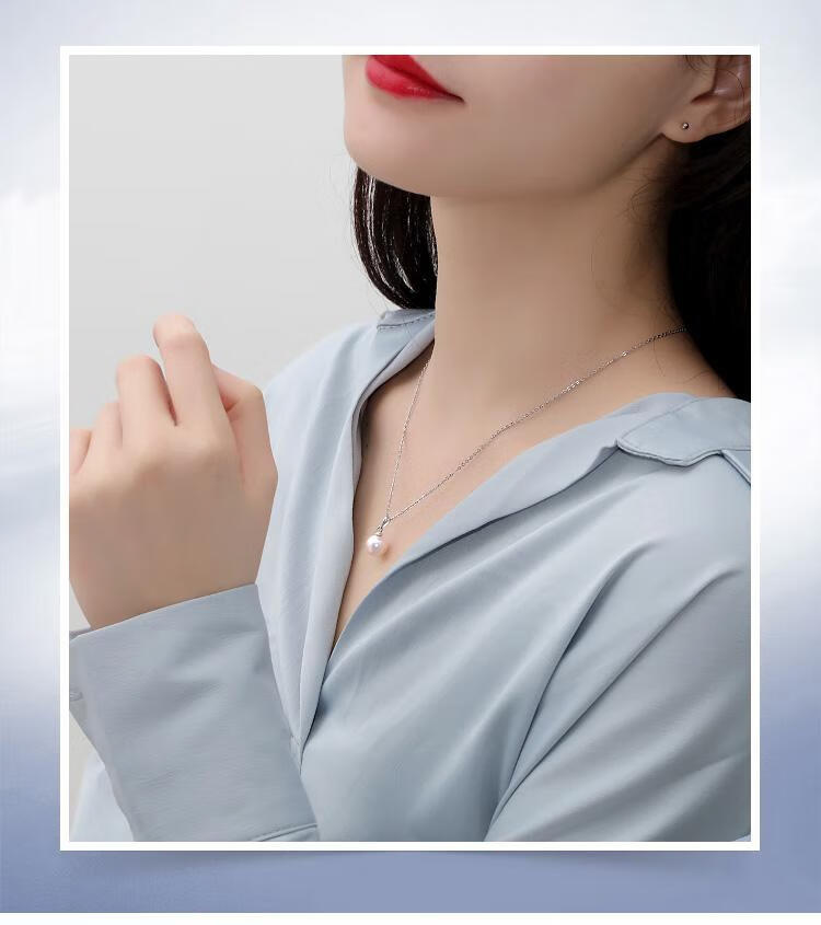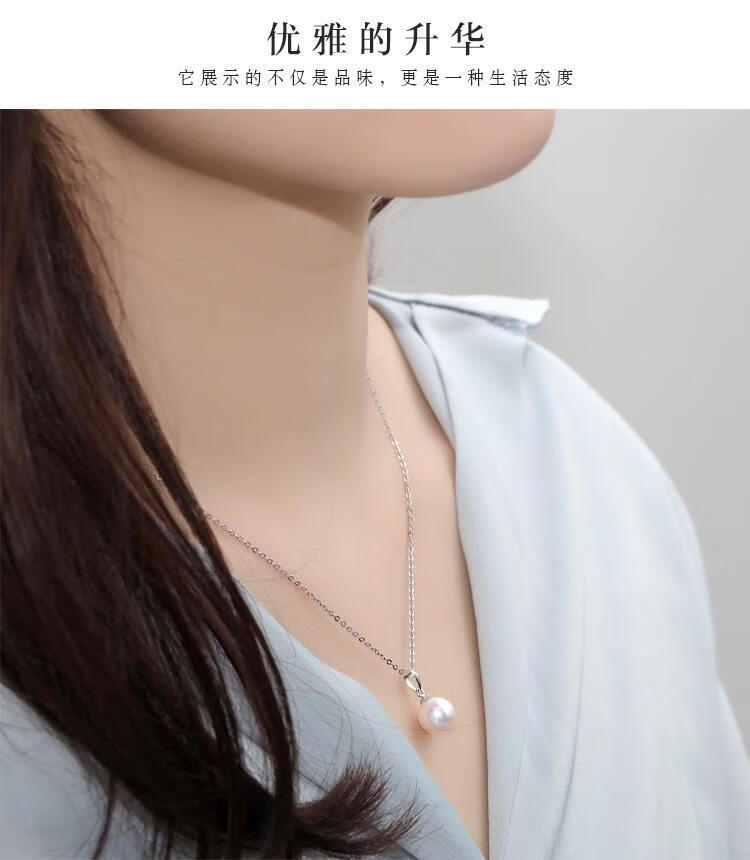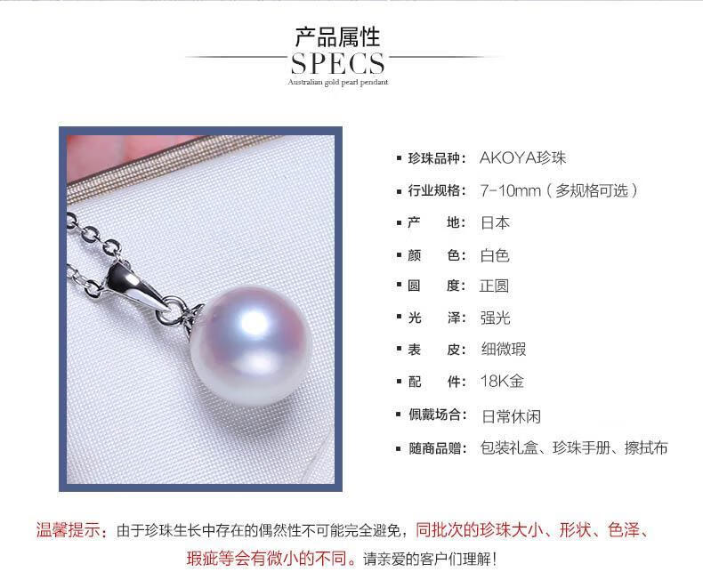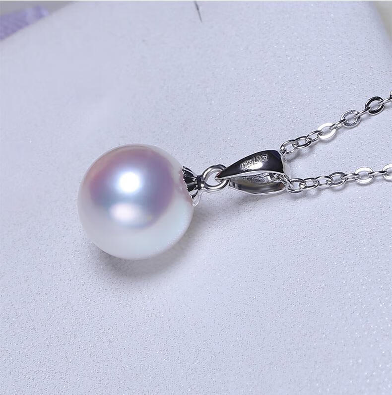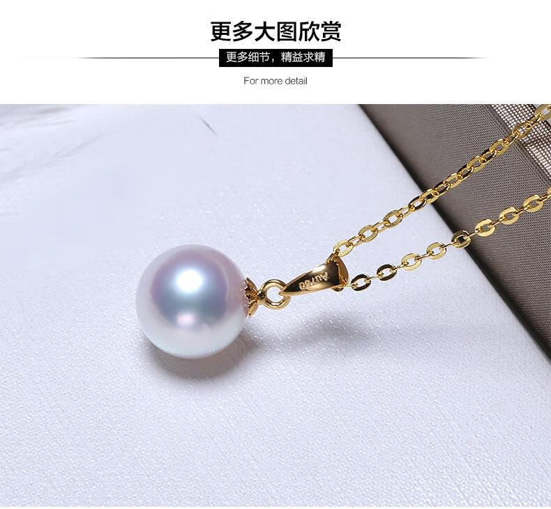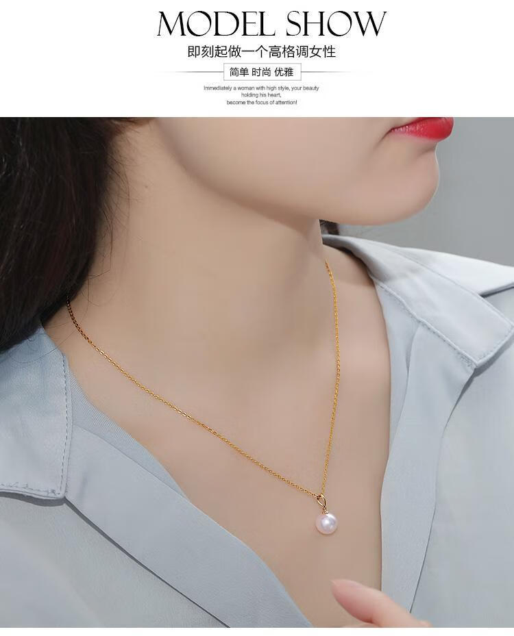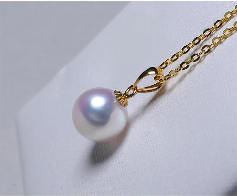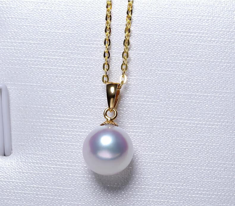 Yingxin thick encrusted seawater pearl pendant, round and bright luster necklace, genuine gift for girlfriend, white pearl gold engraving, 8-9mm