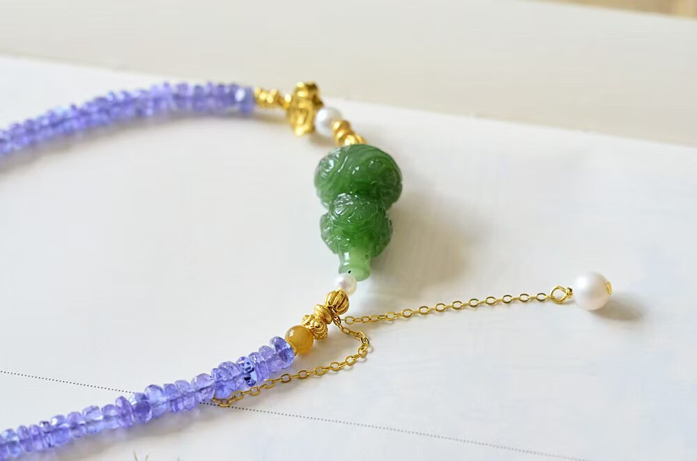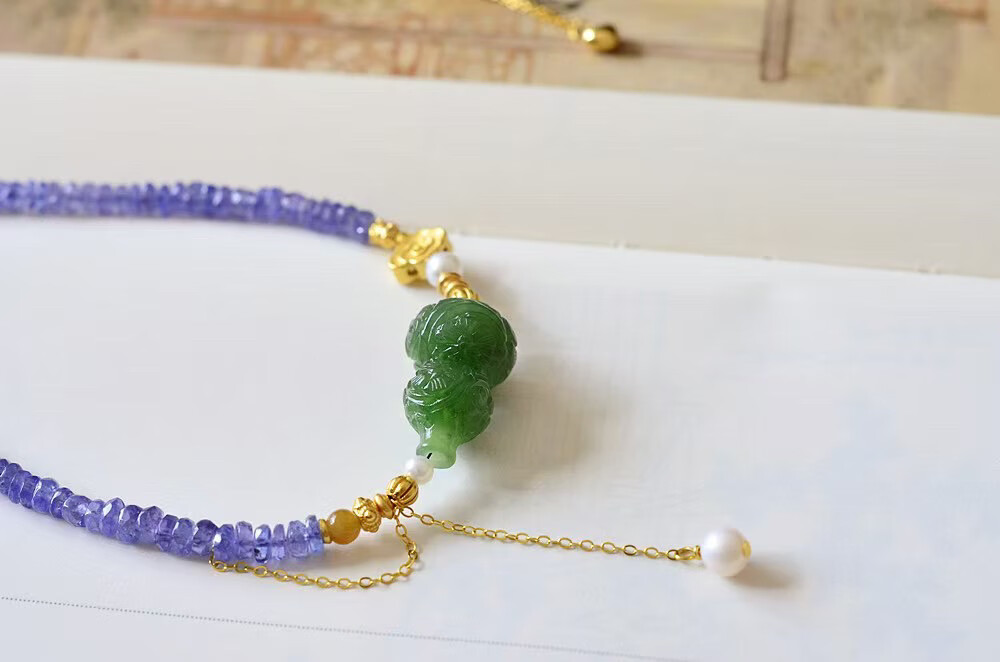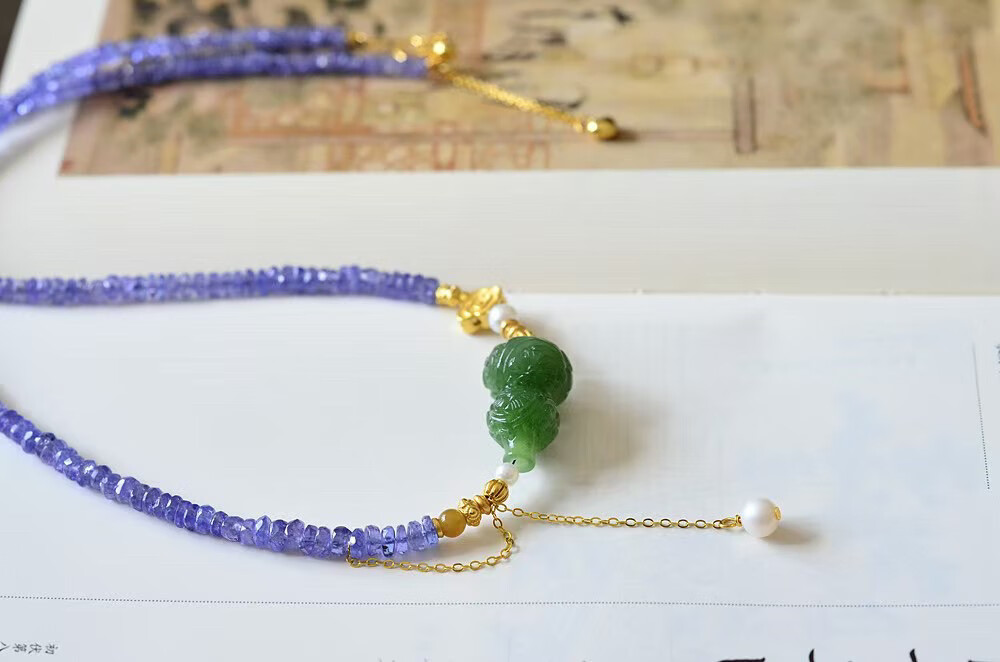 Yingxin tanzanite gemstone faceted clavicle chain jasper carved gourd pendant animal year gift picture customized version