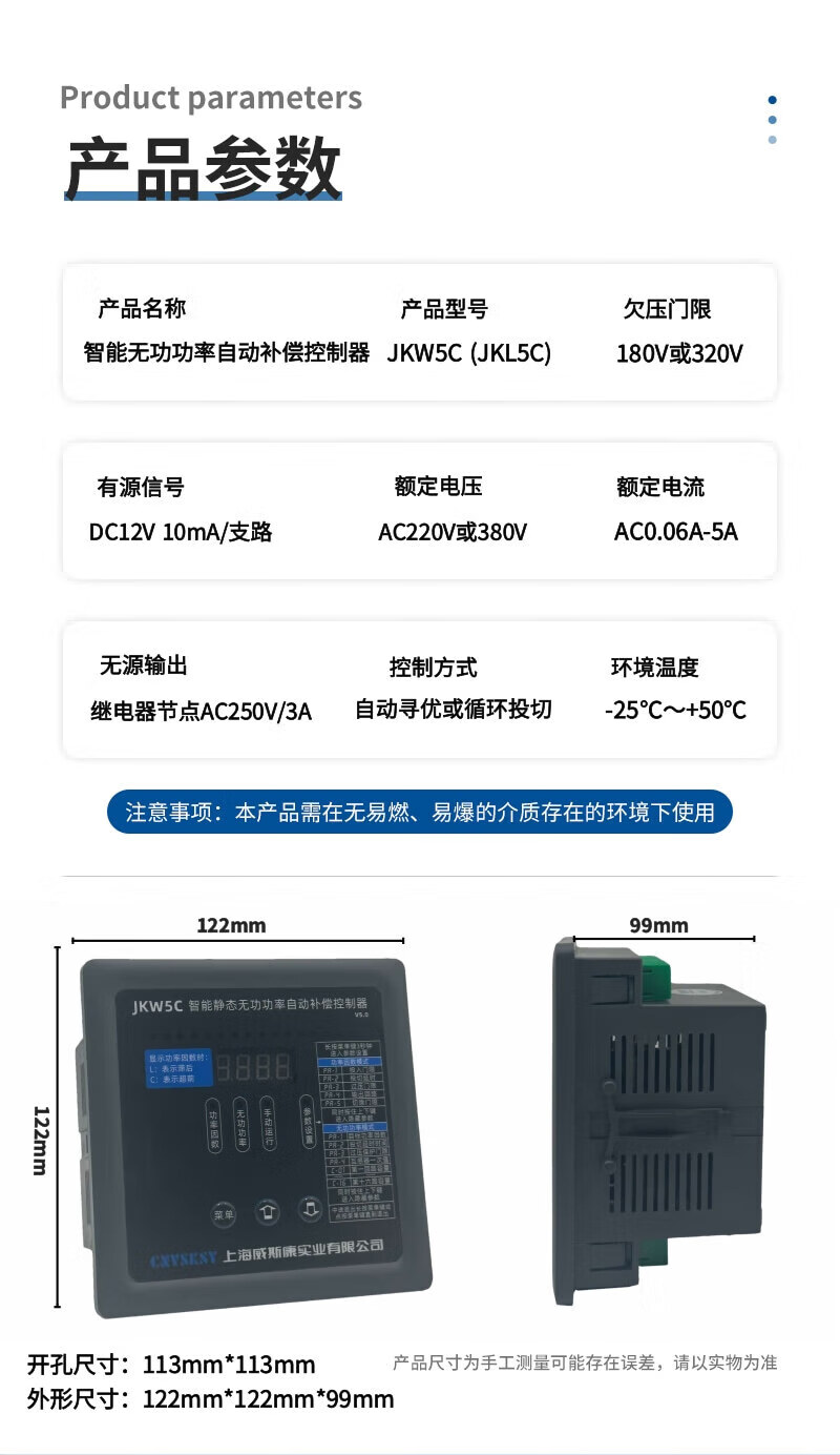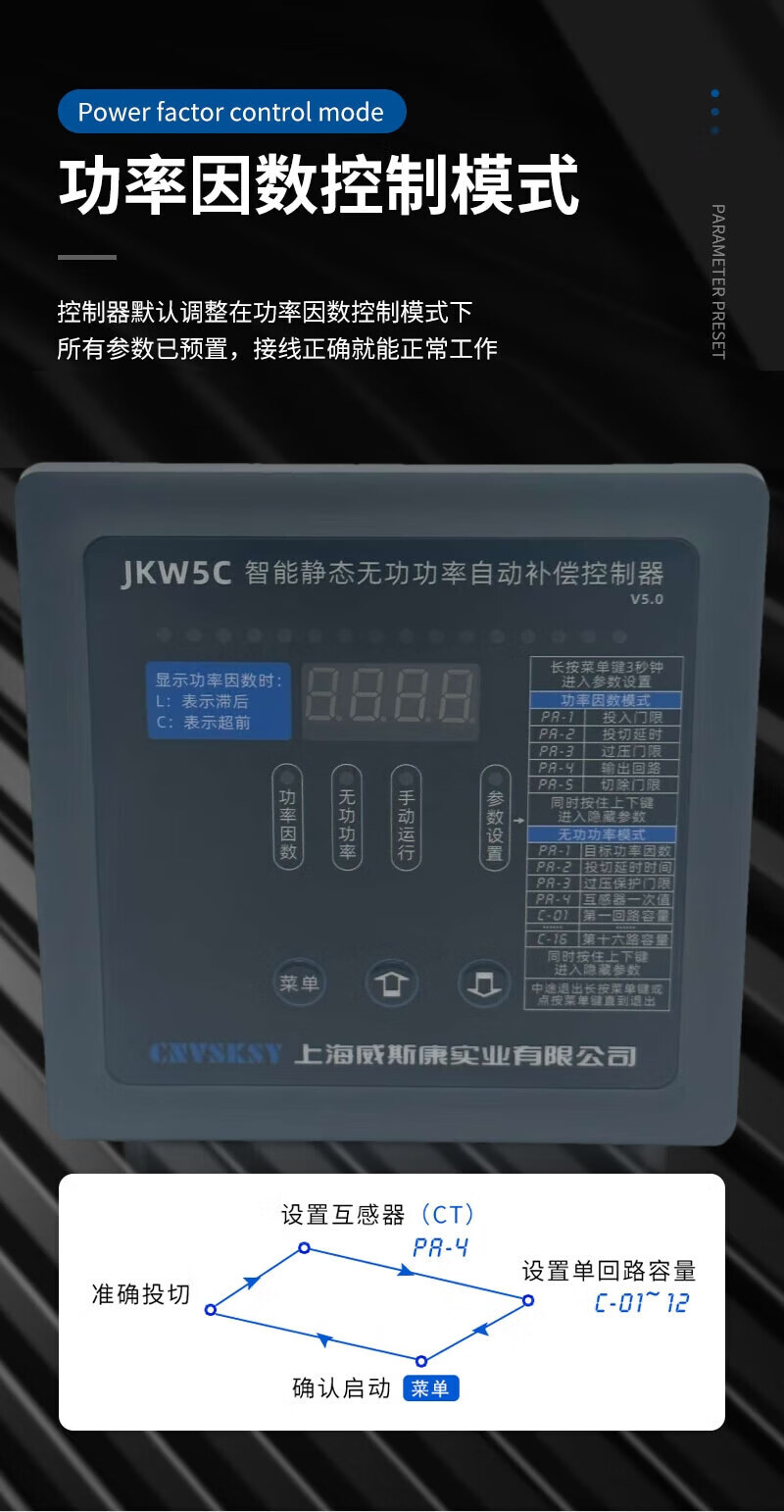 Viscon Intelligent No Power Automatic Compensation Controller JKW5C Photovoltaic Four-Quadrant Compensation Controller JKW5C-12 380V