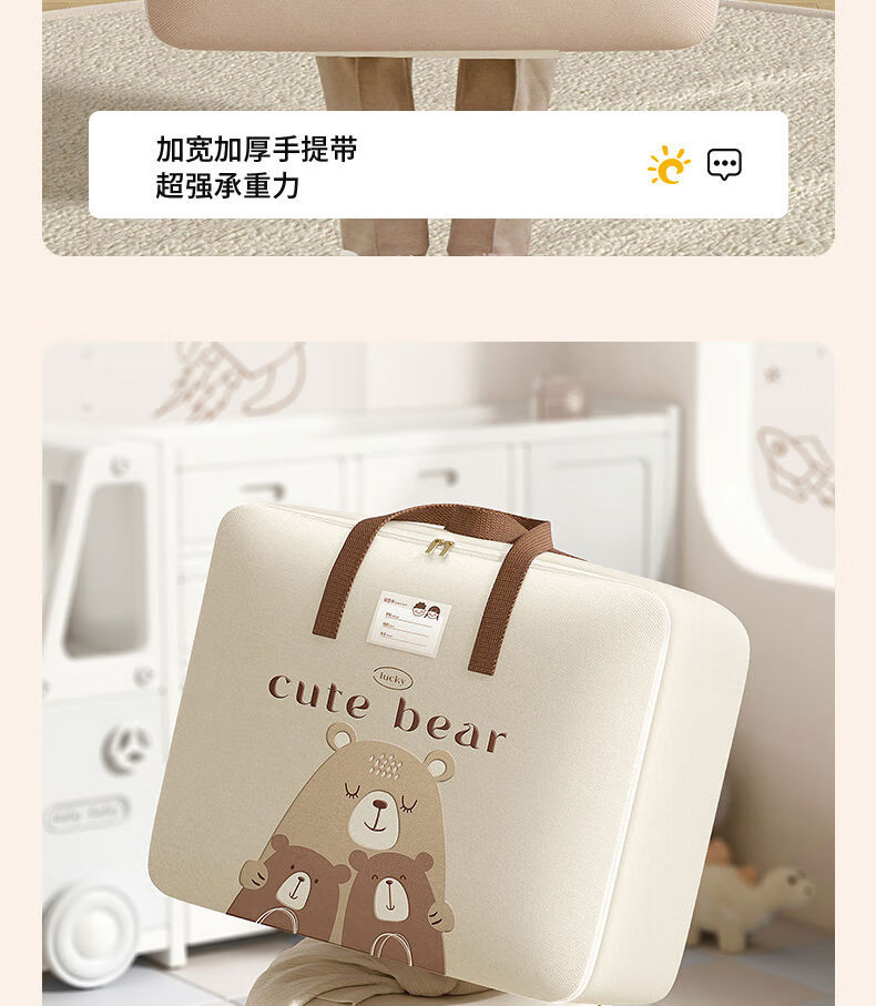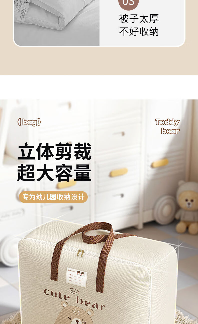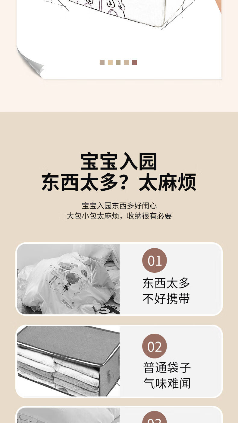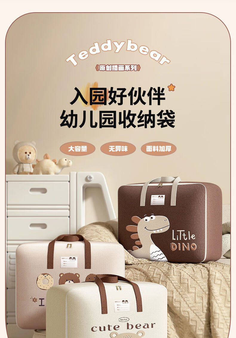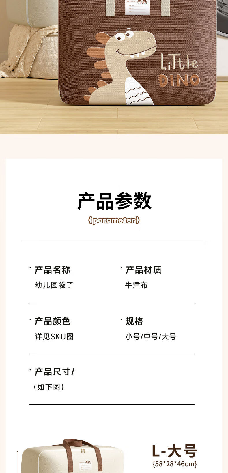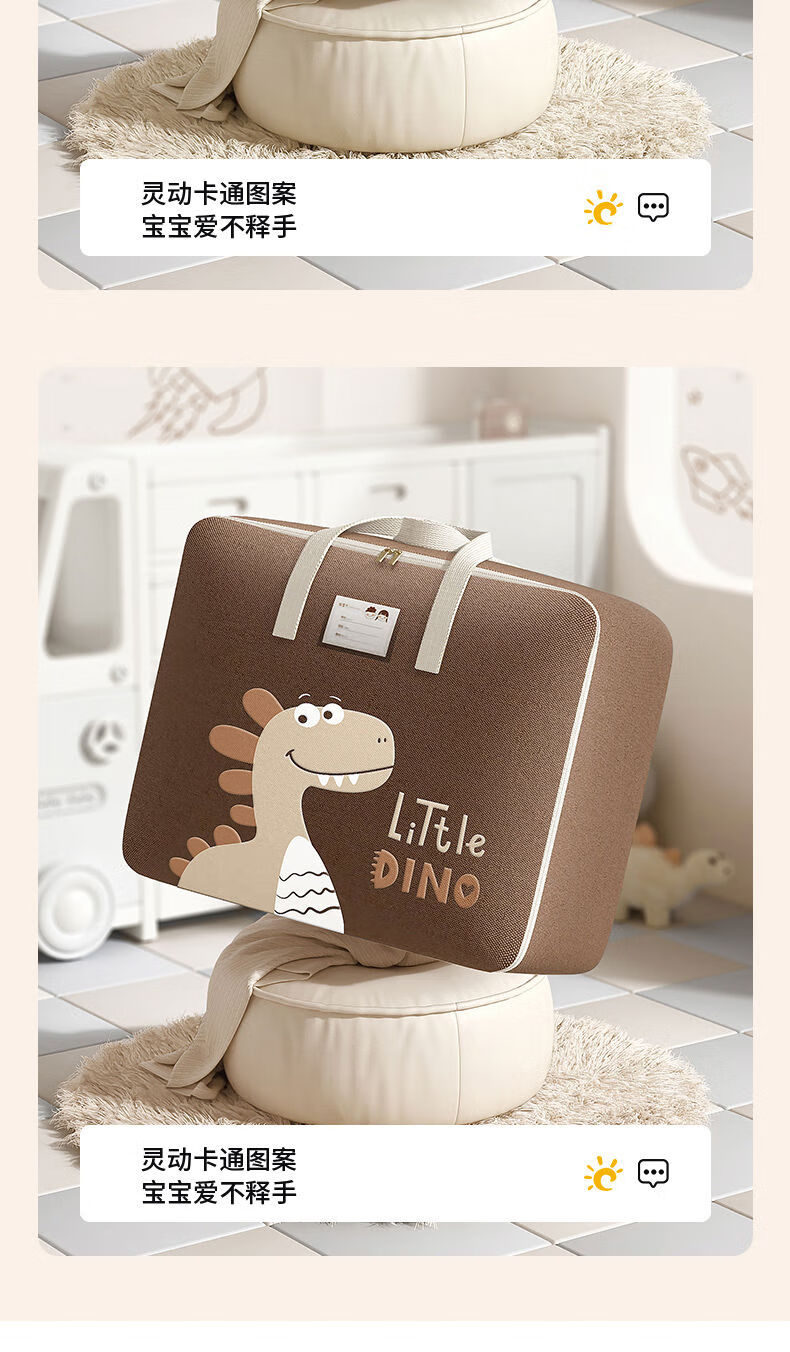 Baicaoyuan Kindergarten Quilt Storage Bag Student Clothing Cotton Bedding Children's Clothing Organizing Bag Portable Luggage Packing Bag Medium 2024 New Coffee Dinosaur Wear-Resistant Thickened Oxford Cloth