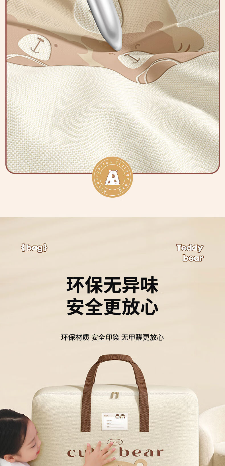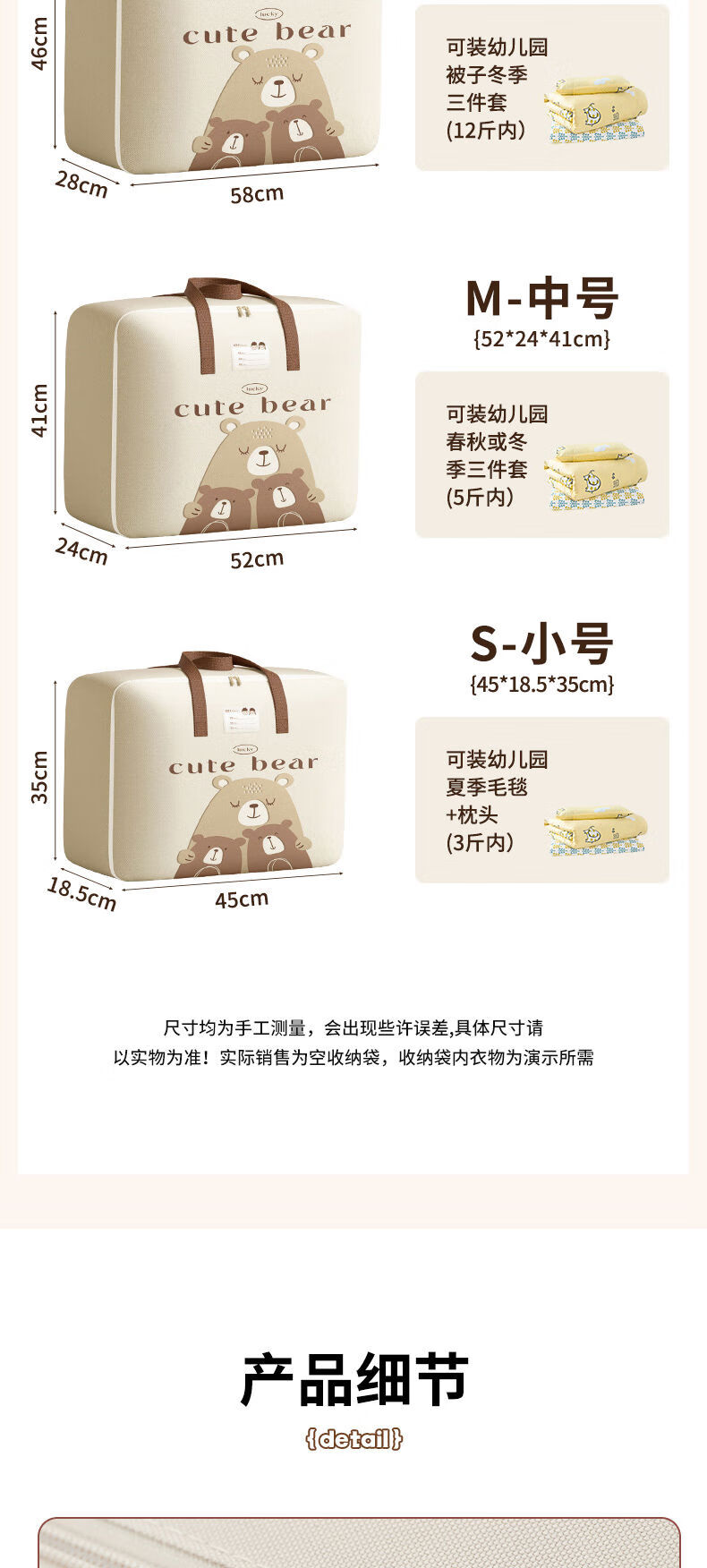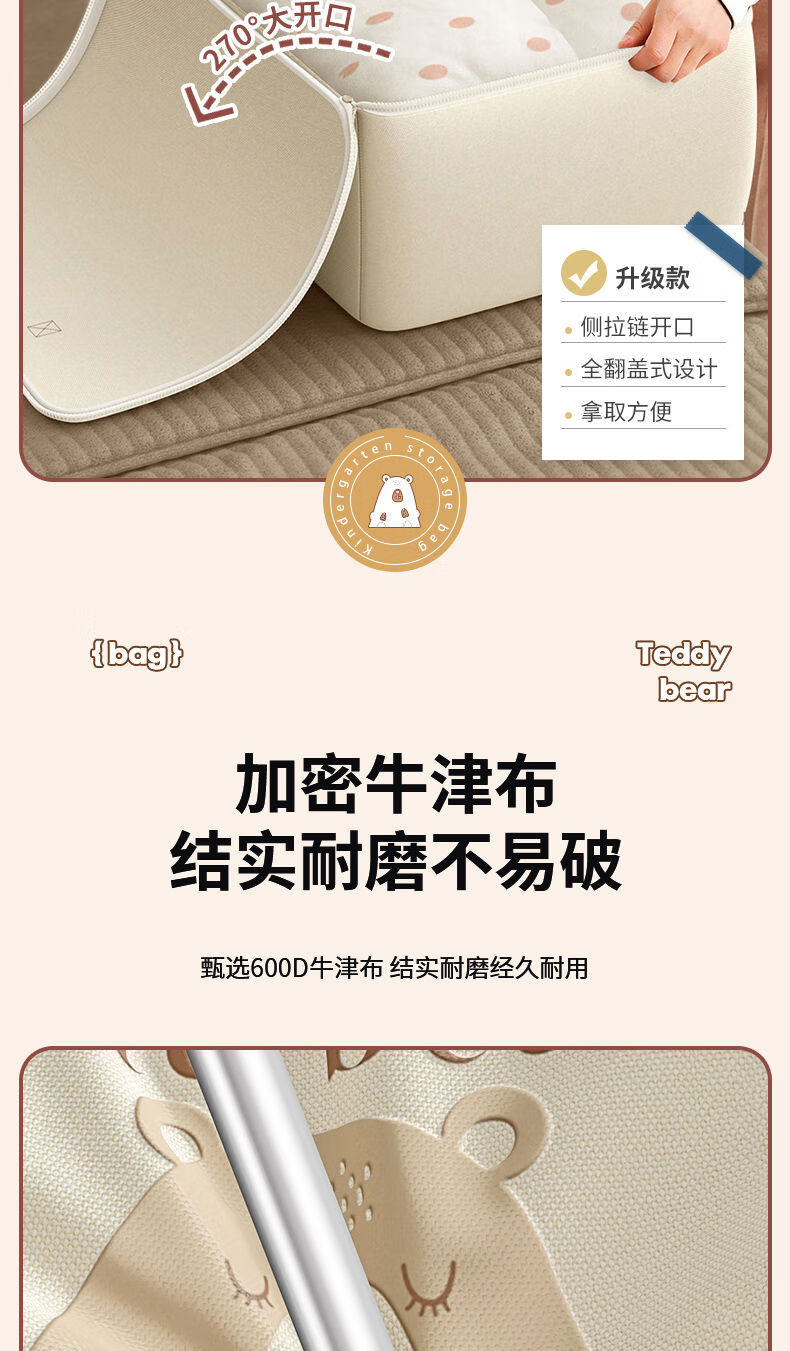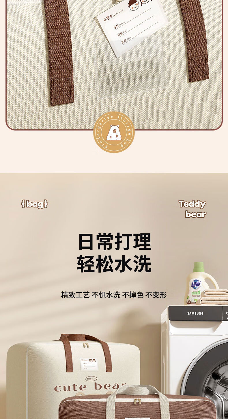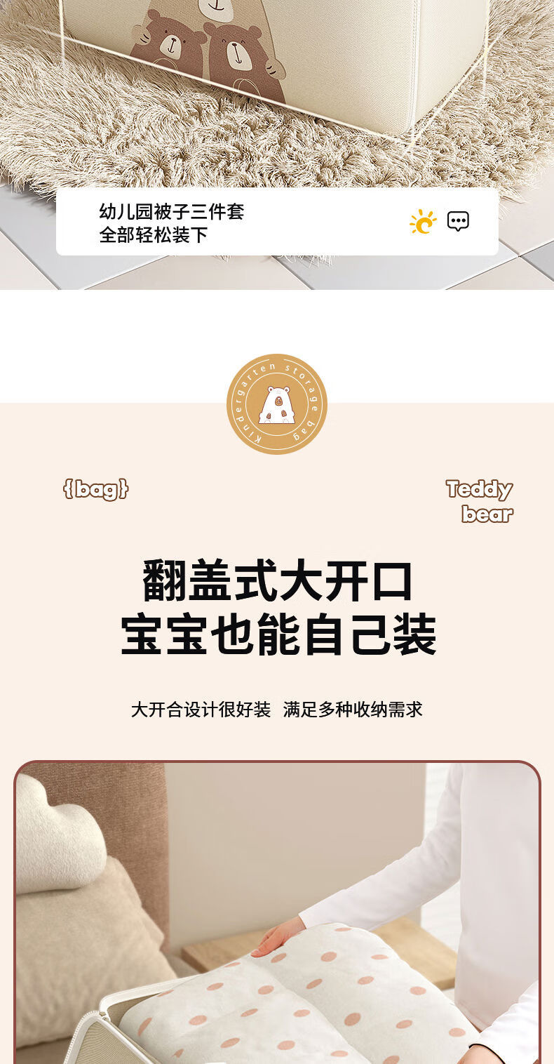 Baicaoyuan Kindergarten Quilt Storage Bag Student Clothing Cotton Bedding Children's Clothing Organizing Bag Portable Luggage Packing Bag Medium 2024 New Coffee Dinosaur Wear-Resistant Thickened Oxford Cloth