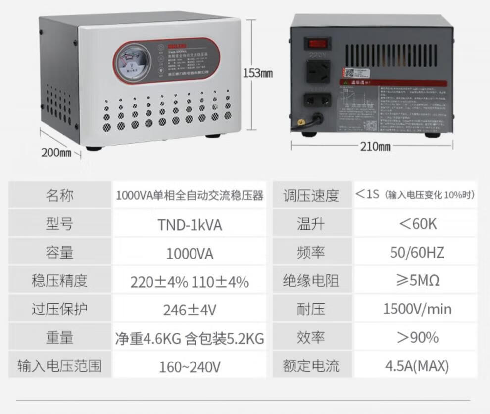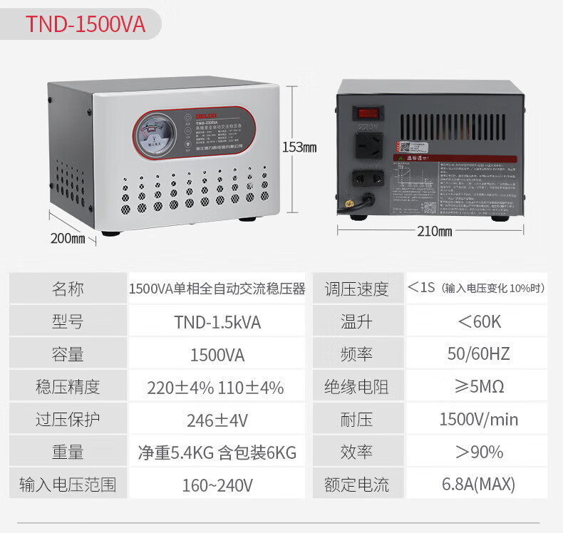 Delixi voltage regulator fully automatic 5000w household air conditioning power supply high power 1K single phase 220V voltage regulator TND 5000W