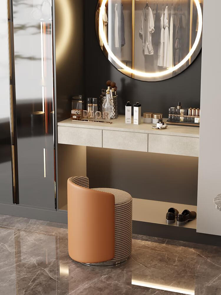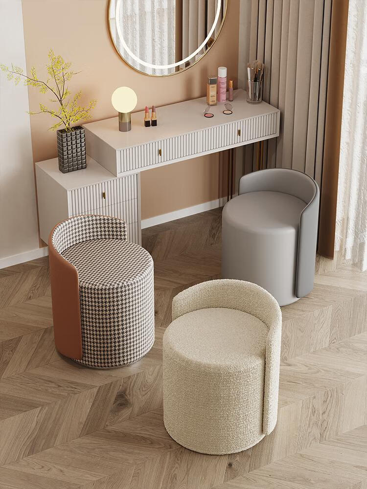 Nordic makeup stool Internet celebrity dressing chair light luxury dressing table stool bedroom makeup chair living room round low stool manicure stool white light luxury style beige