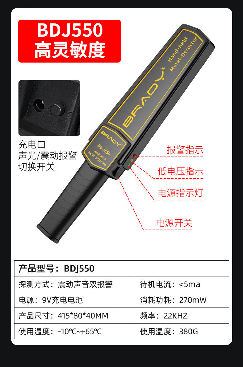 Jieyunmao high-precision handheld small metal detector subway examination room security detector portable mobile phone metal detector basic calibration sensitive arm guard + battery