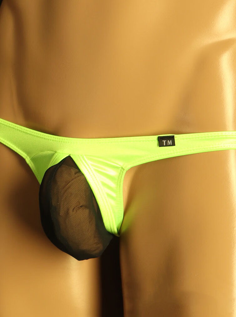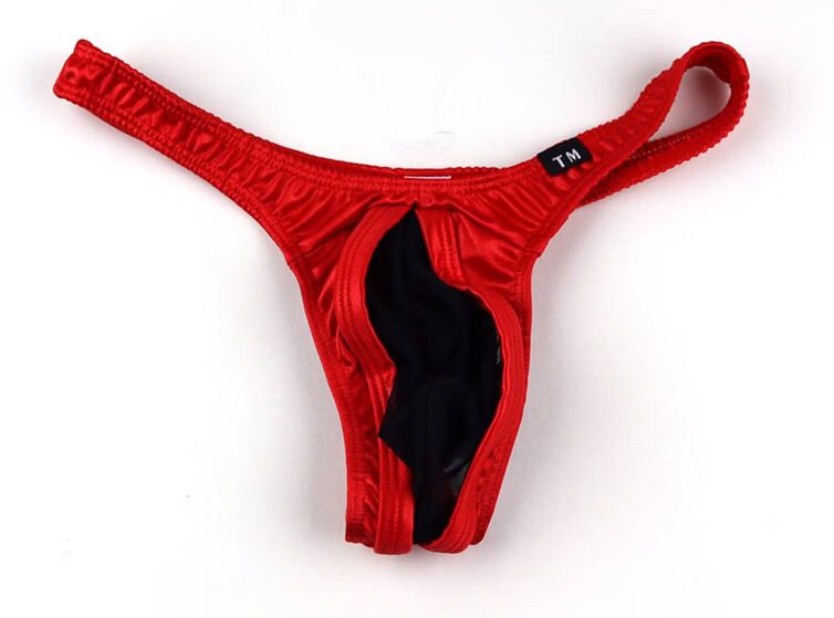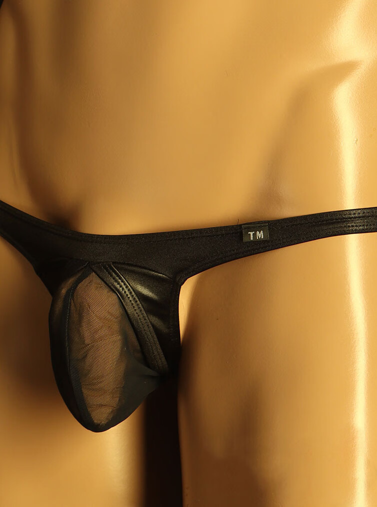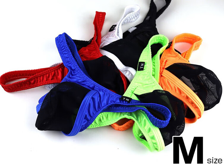 Low-waisted men's thong high-elastic ice silk sexy large bag mesh pants men's single thong T-pants white S