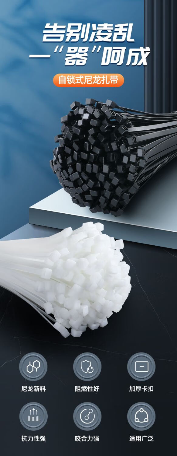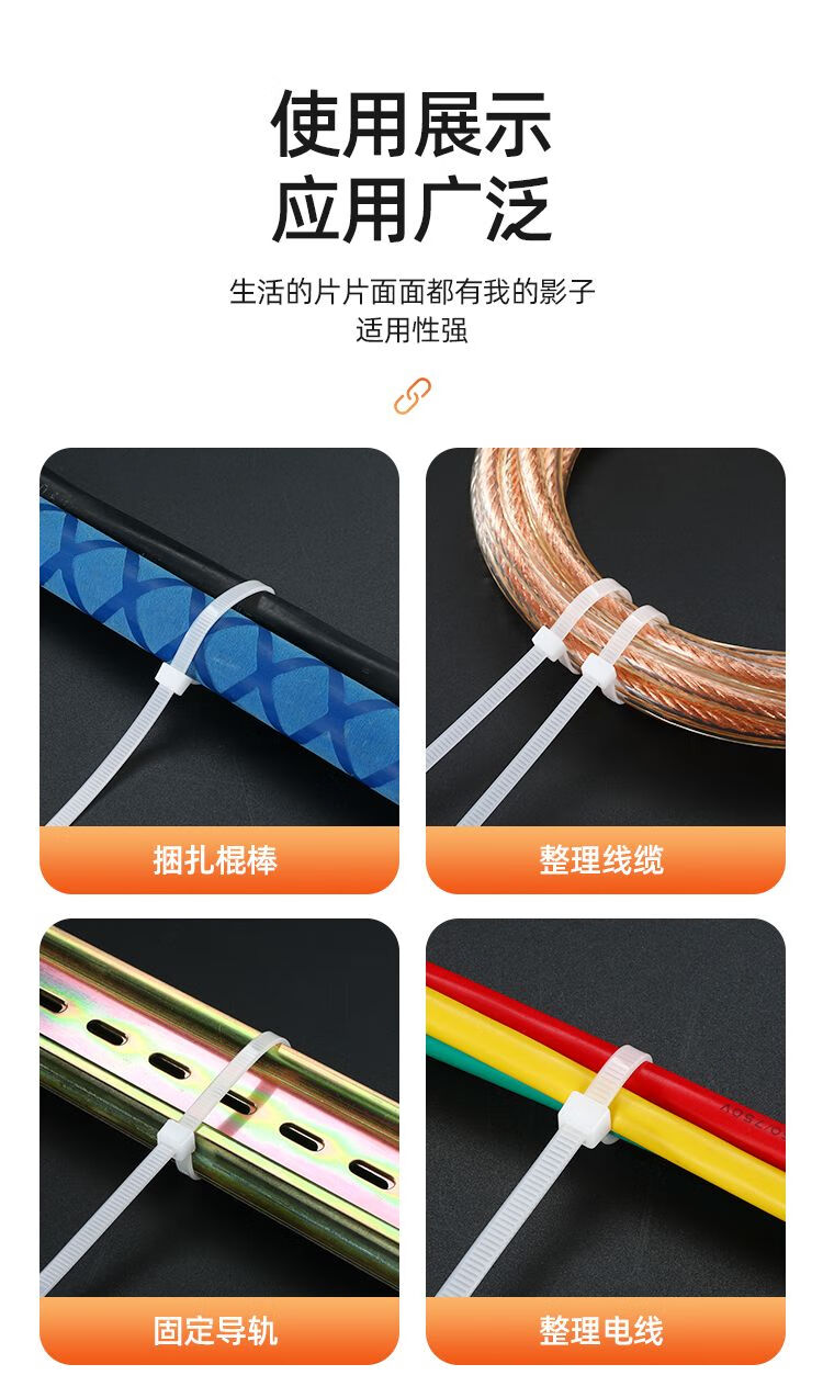 National standard sufficient nylon cable ties self-locking plastic cable ties large, medium and small white strapping straps white national standard width 3 mm long 12 cm - 100 pieces