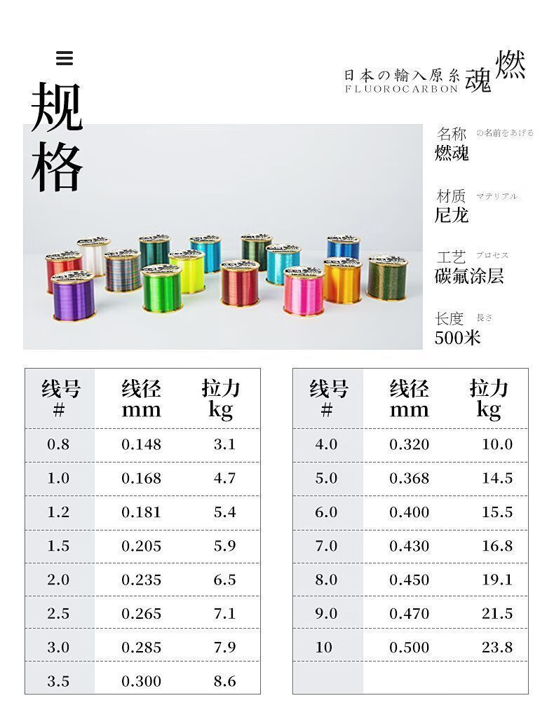 Imported 500m sub-line strong tensile nylon line super soft 500m fishing line main line special for sea pole sea pole line aqua green imported raw silk 500m No. 5