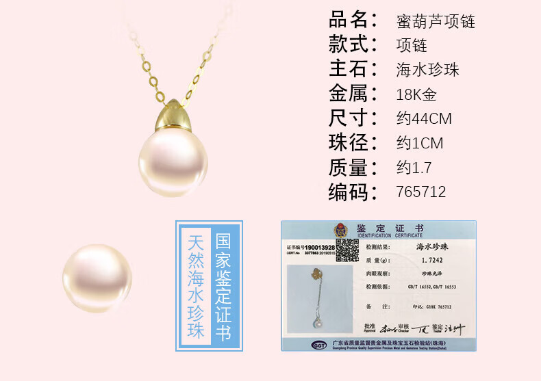 Hidden Master Her Generation Seawater Pearl Pendant Gold Necklace for Girlfriend and Mother with Gold Chain 8-9MM Pearl 8-9MM Pearl (765712)