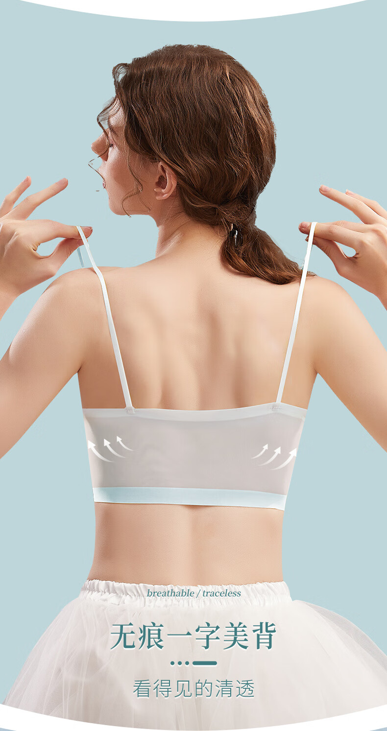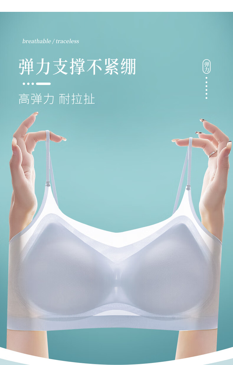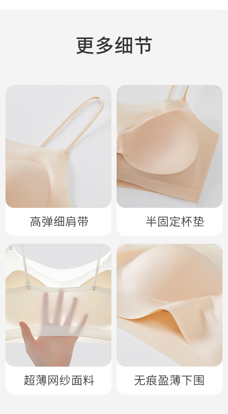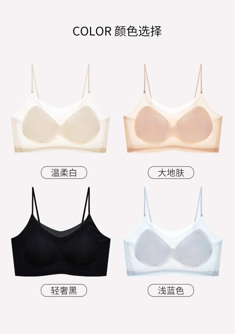 Sharishi Seamless Beautiful Back Bra Women's Summer Cool Ice Silk Anti-exposure Sports Spaghetti Strap Vest Style Wrap Bra Earth Skin + Light Luxurious Black._ Traceless Ice Silk L_(80ABC)