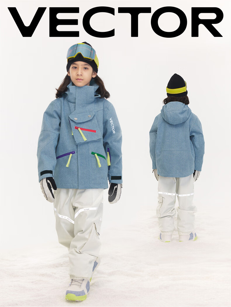 Vector children's ski suit full set of trousers for boys, quick-drying, warm and waterproof, girls, winter and older children, ice and snow park tops + overalls for boys and girls M 150_suitable for height 145-155c