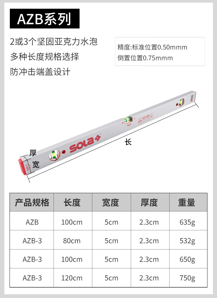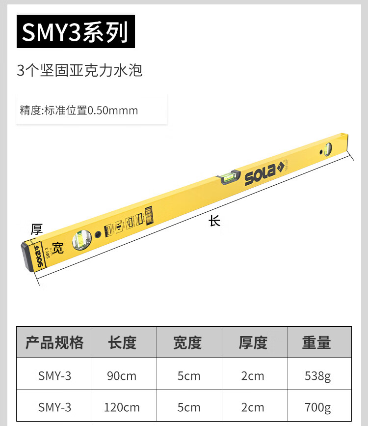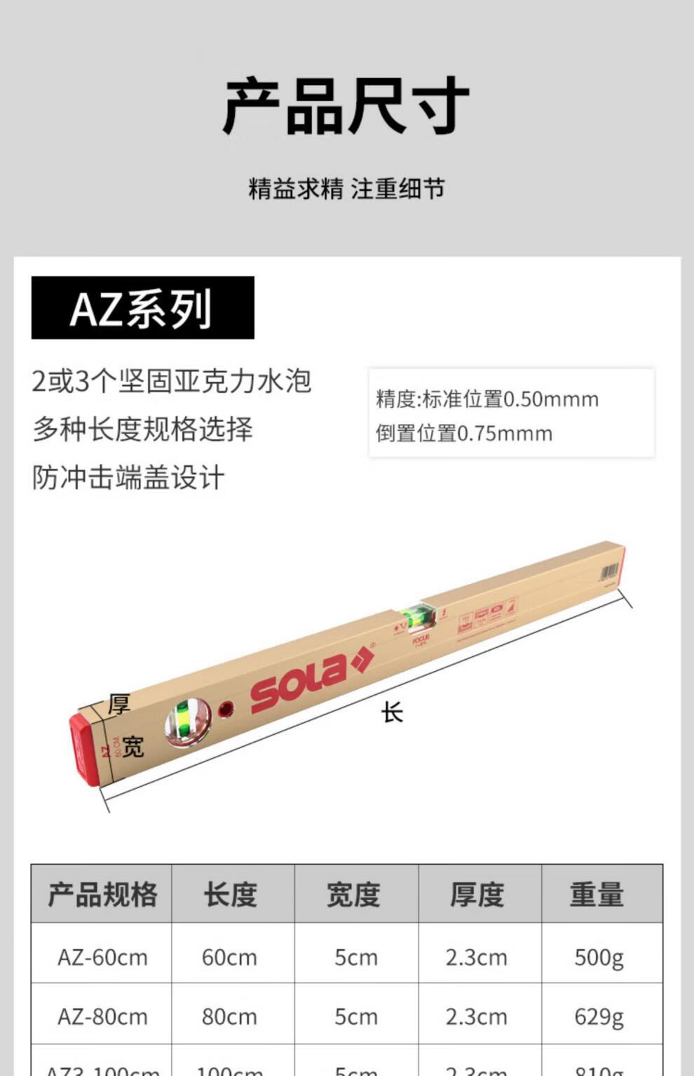 Austrian grade high-precision thickened luminous level Sola gold AZ3-1 meter (three bubbles)