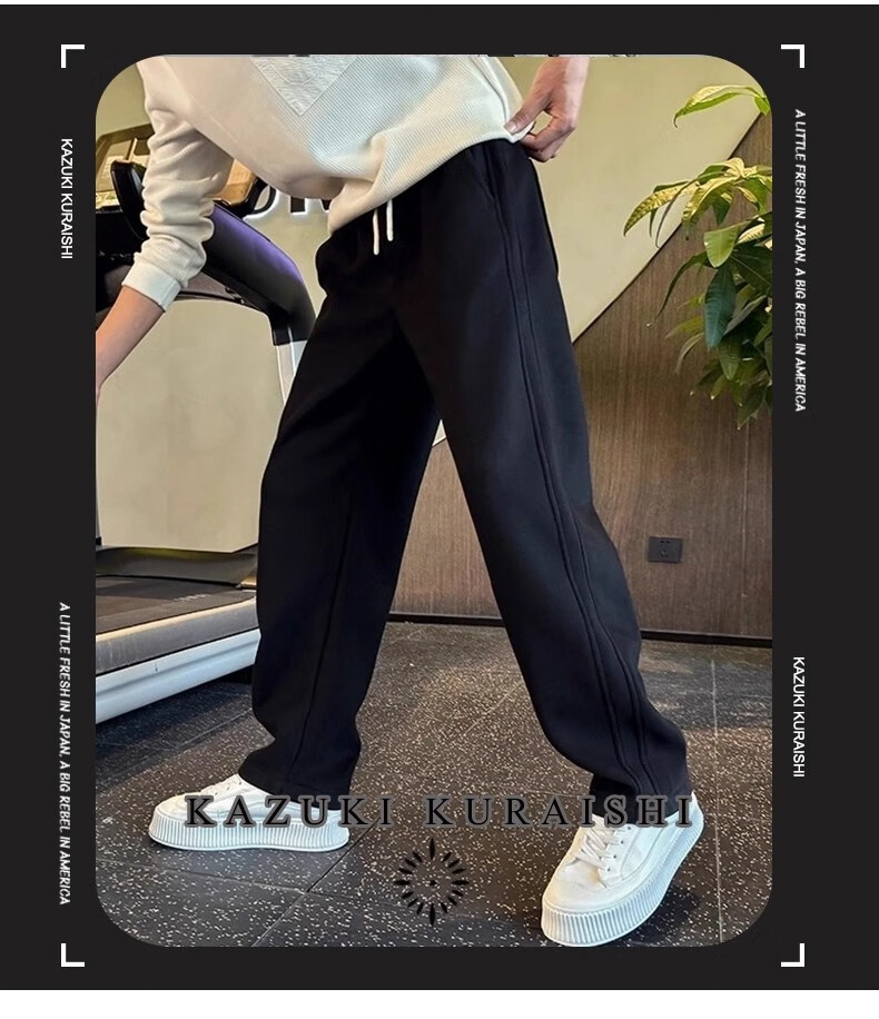 Kuraishi Kazuki spring and autumn new straight-leg loose sweatpants men's trendy high-end simple versatile sports and leisure trousers black XL