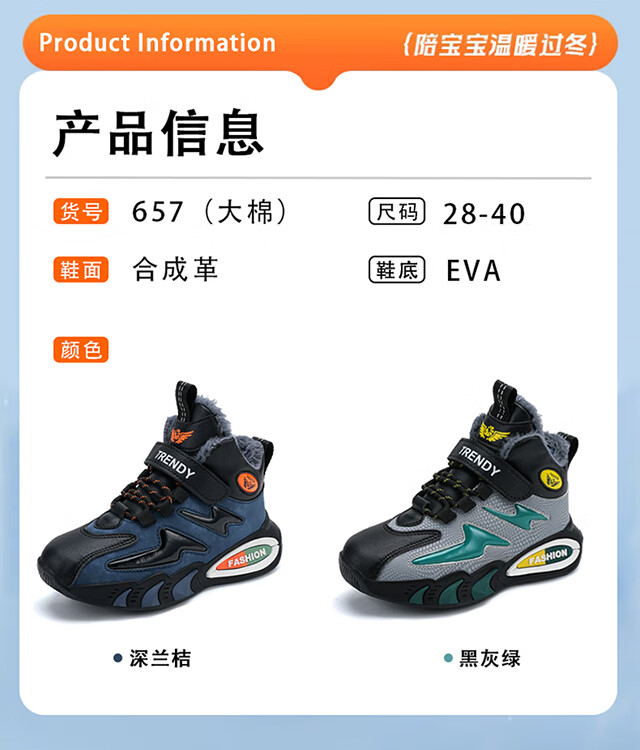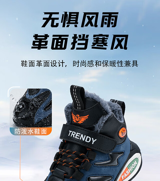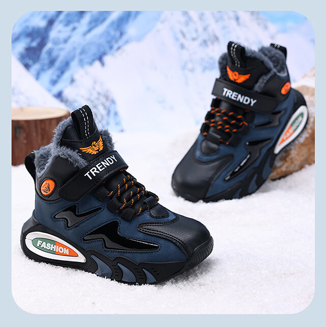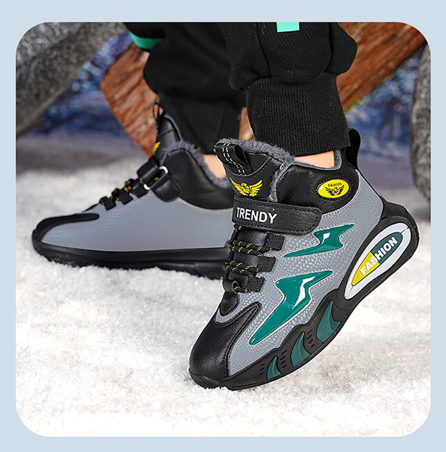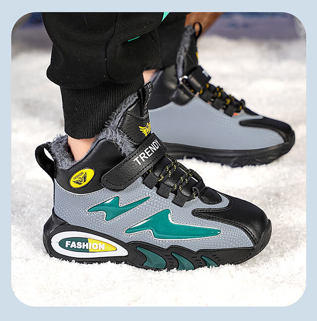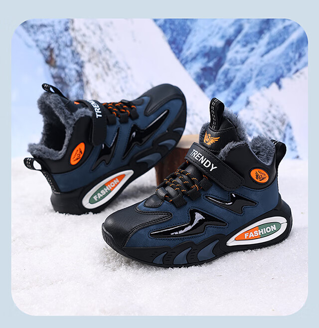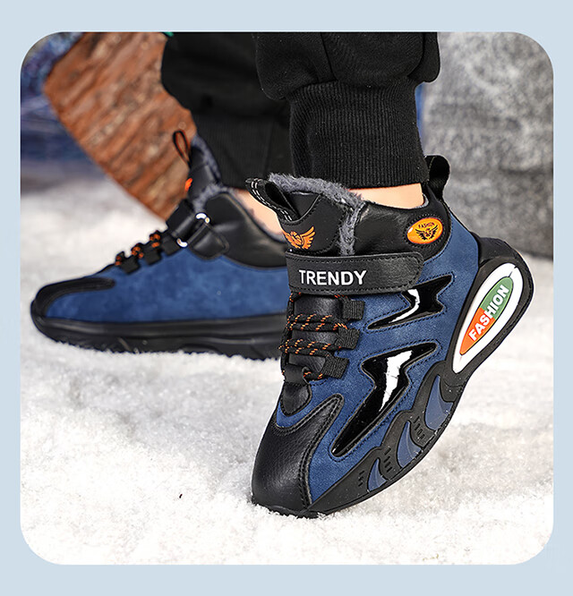 Children's large cotton shoes men's velvet thickened winter new waterproof anti-slip middle and large children's sports running warm cotton shoes