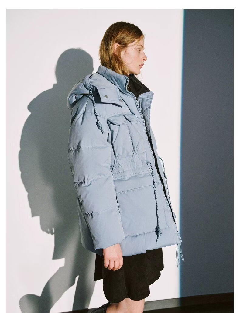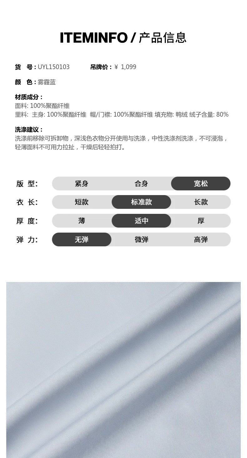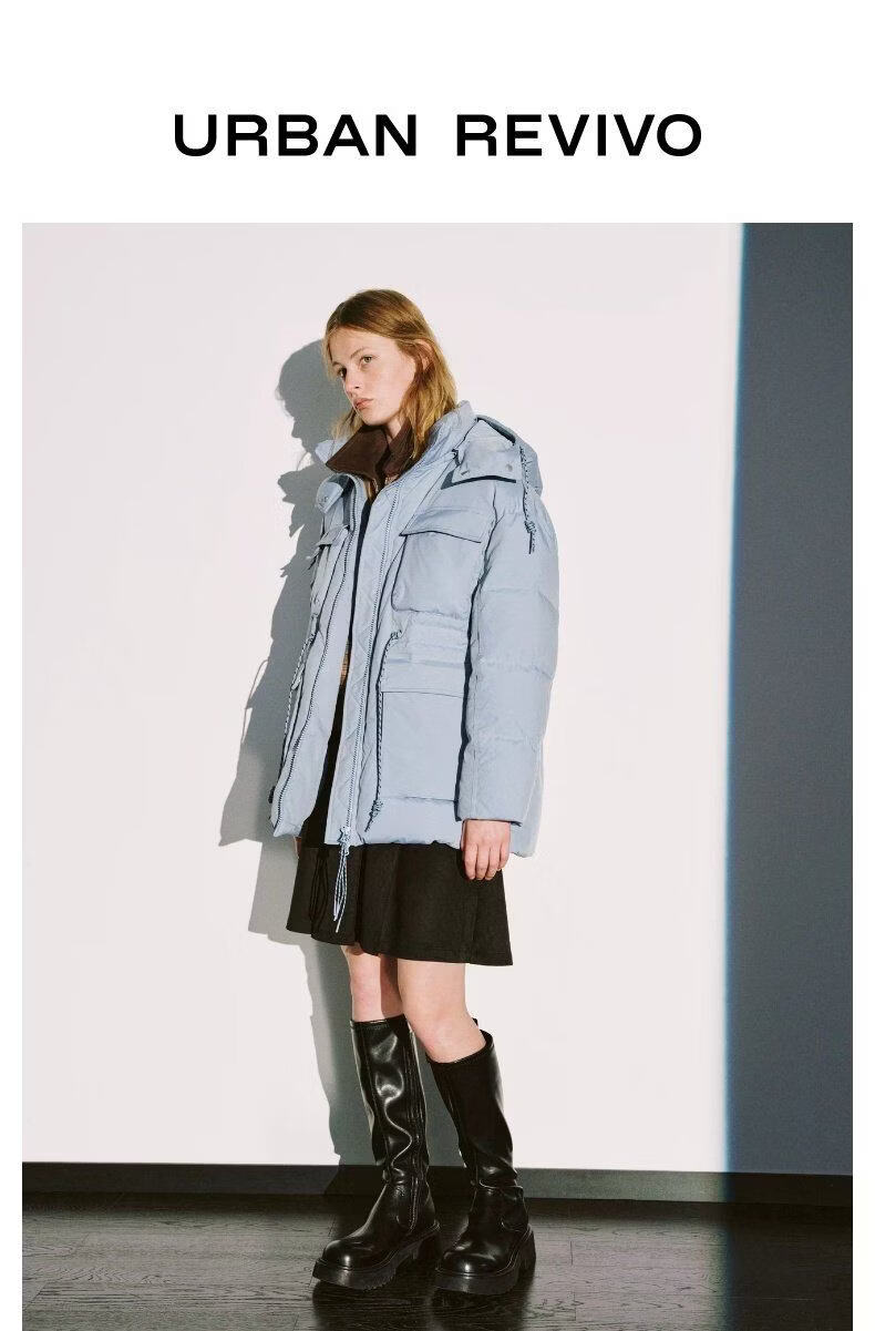 UR new winter women's casual hooded drawstring multi-pocket down jacket UYL150103 haze blue S