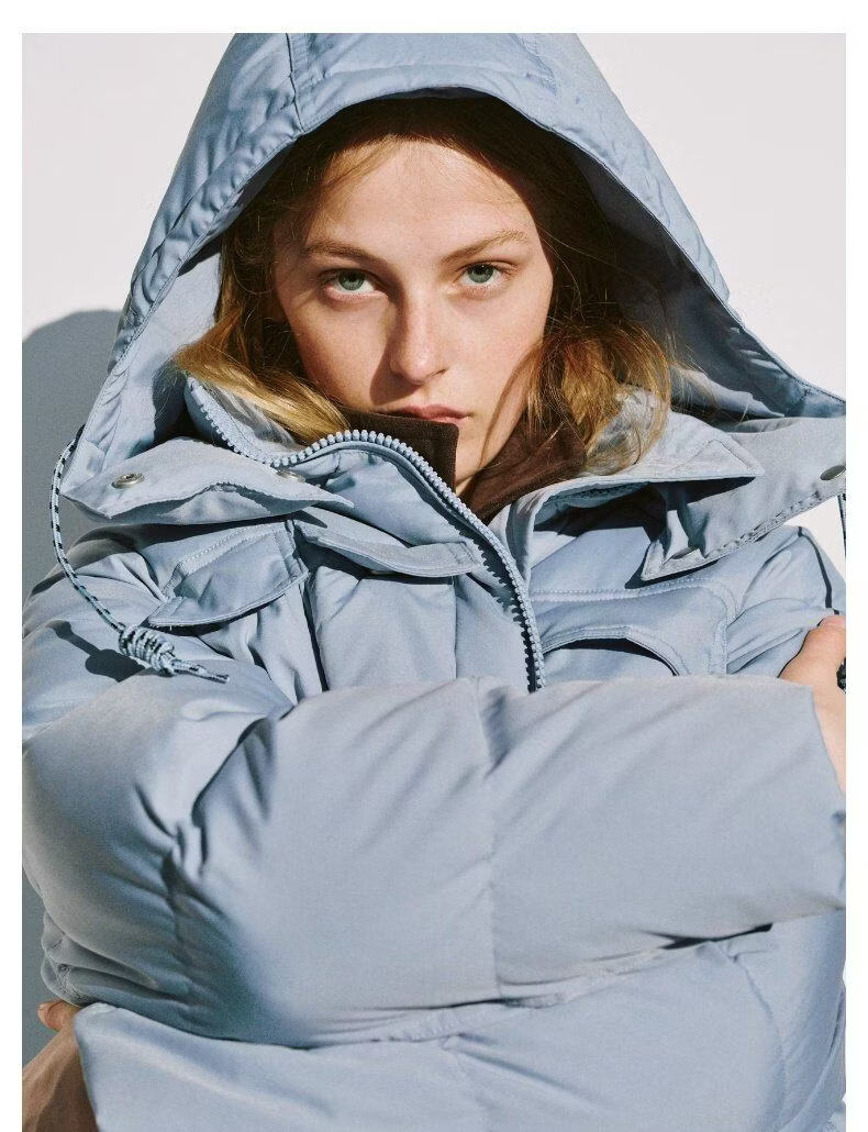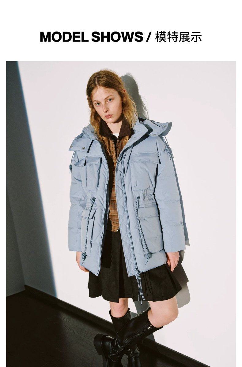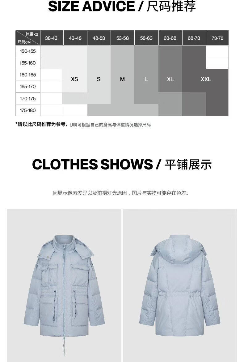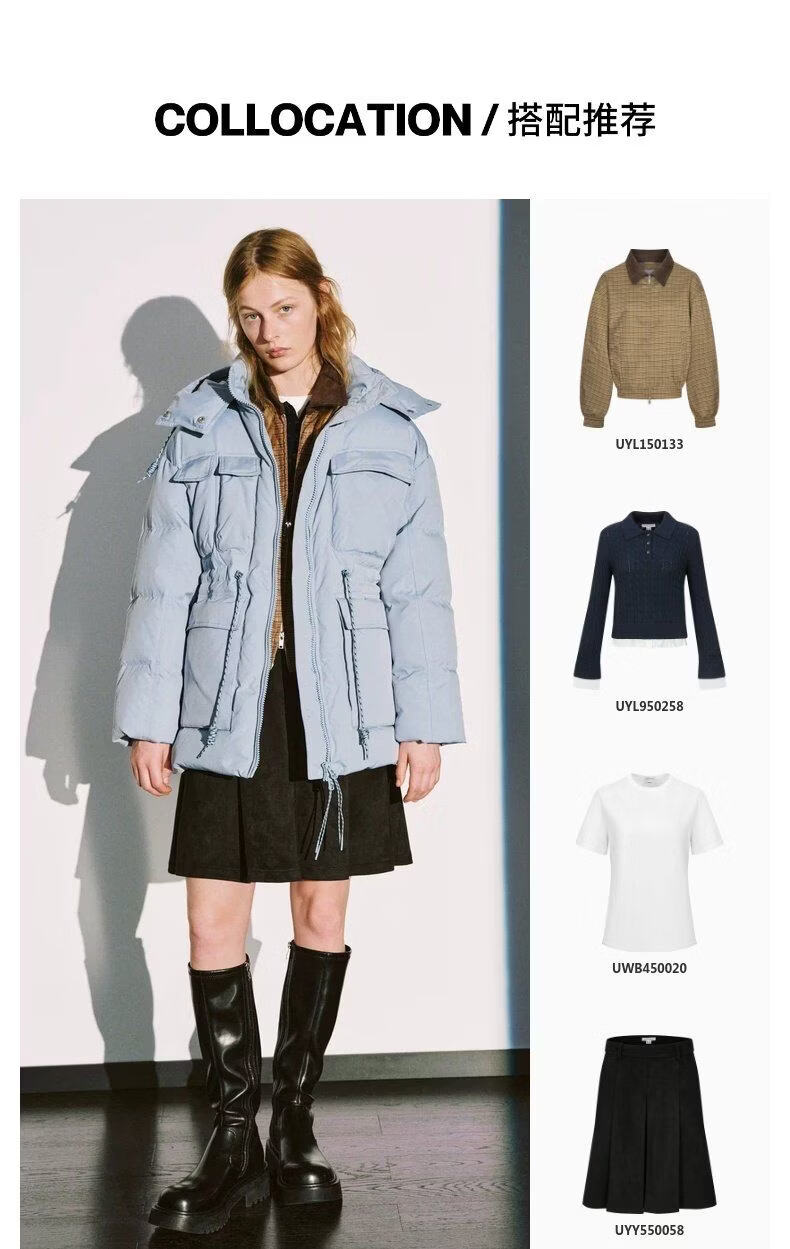 UR new winter women's casual hooded drawstring multi-pocket down jacket UYL150103 haze blue S