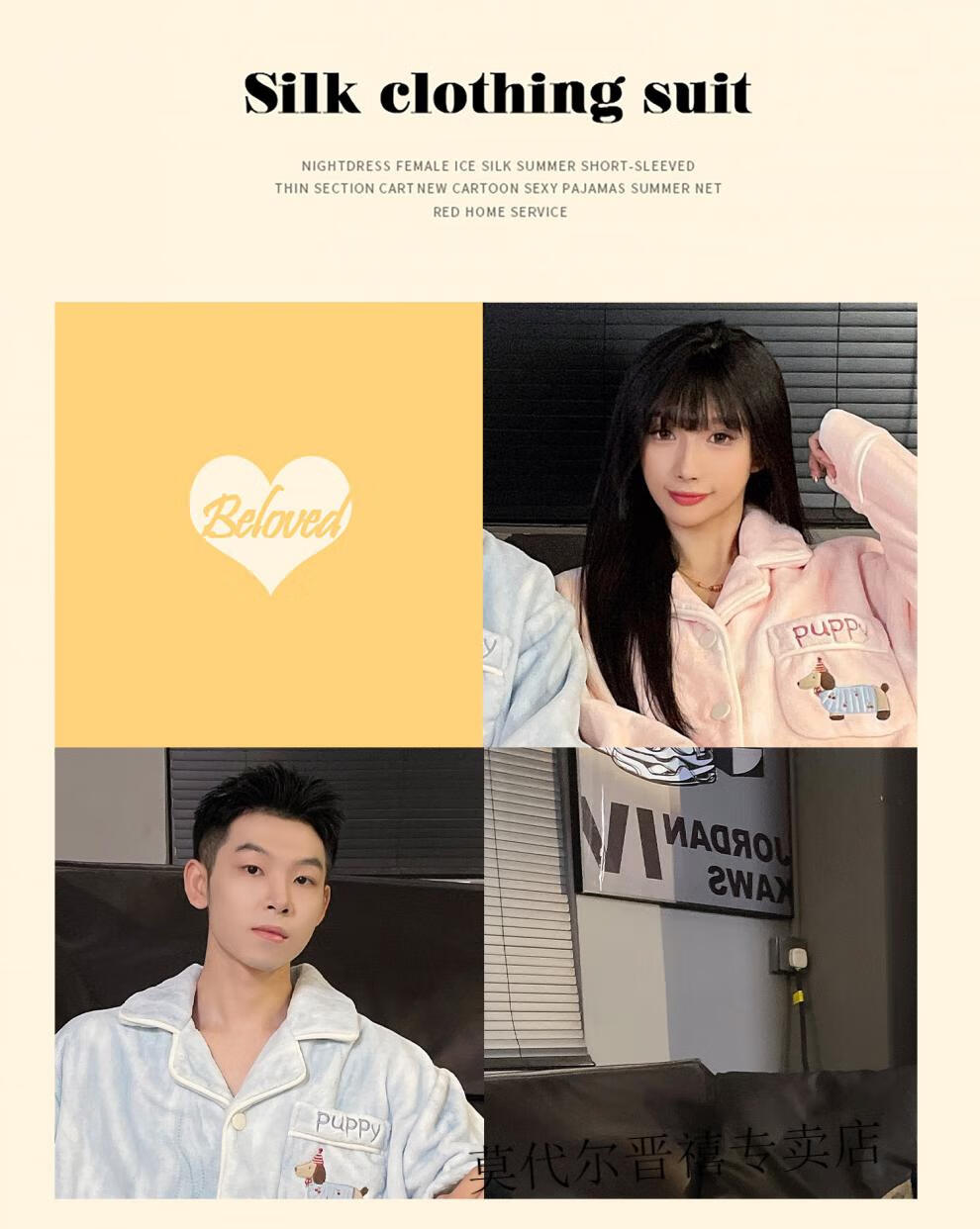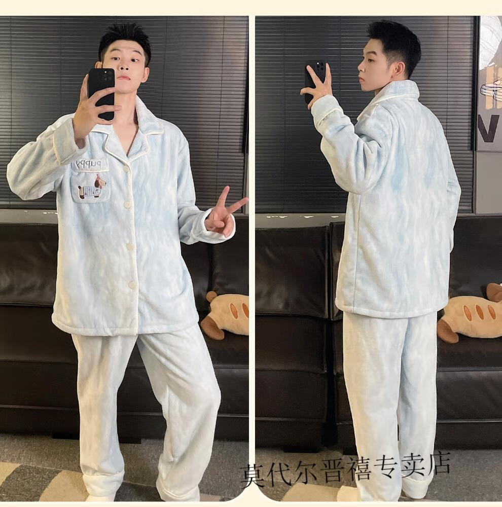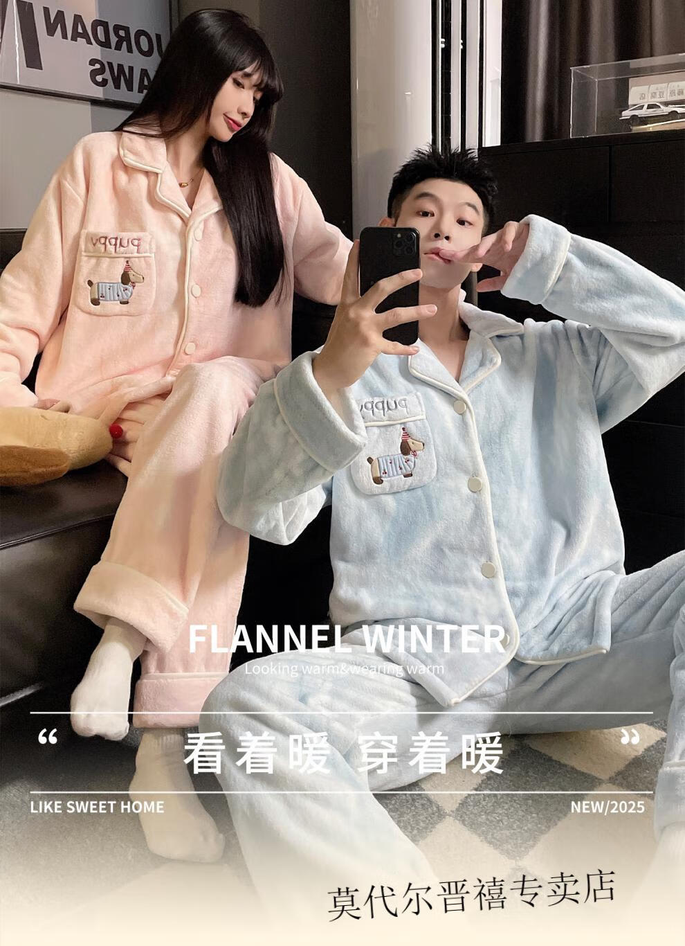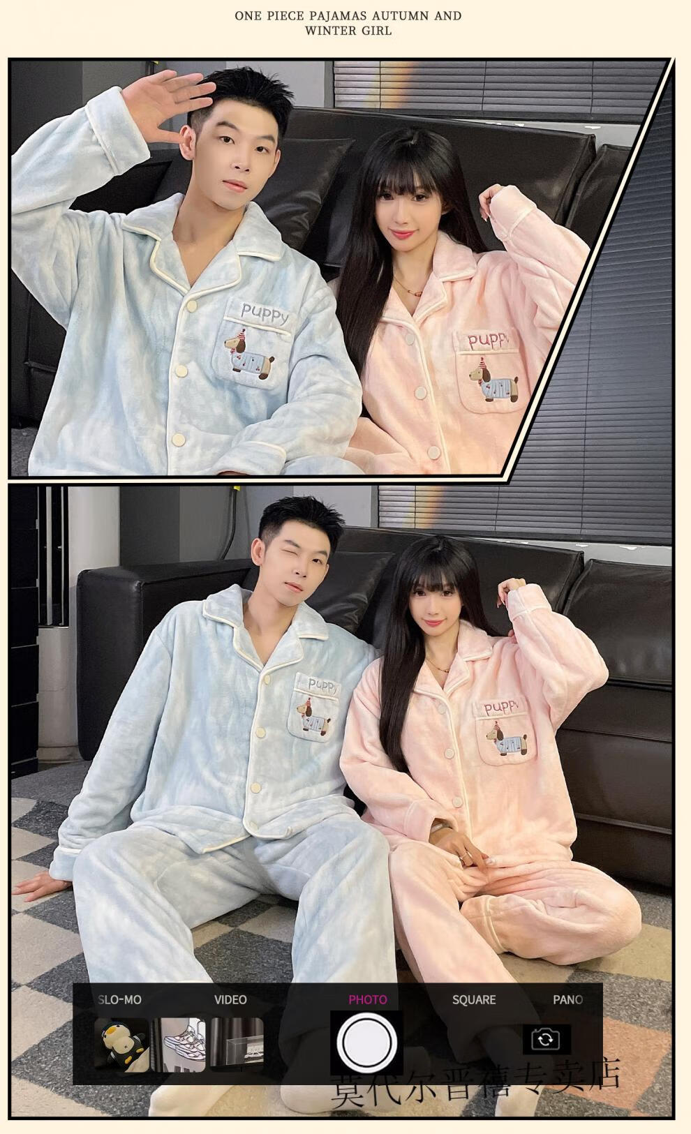 Modal Autumn and Winter Coral Fleece Couple Pajamas Women's Plus Velvet Thickened 2025 New Cartoon Dachshund Men's Home Clothes Set Dachshund Men's Blue * Women's Pink Couples need to take two sets L Female Recommended height 155-165c, weight 100-115Jin Jin equals 0.5 kg