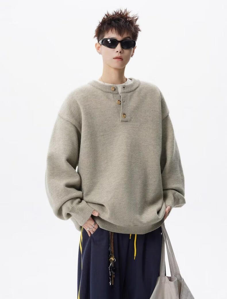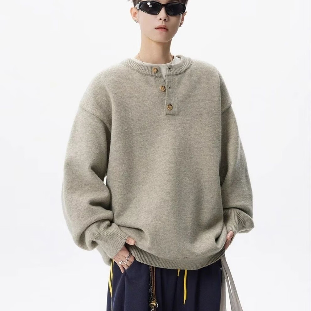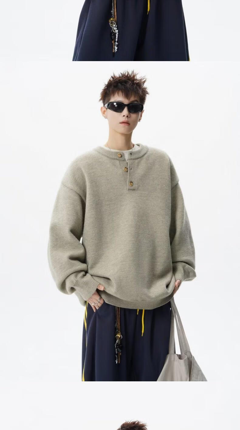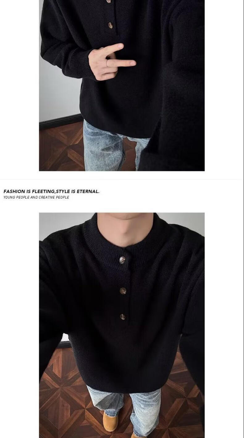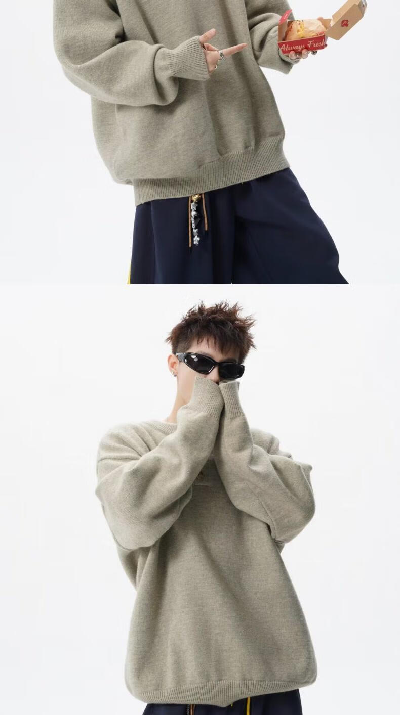 SWAMP AREA American retro Henry collar sweater for men in autumn and winter, high-end solid color casual bottoming sweater, camel color, trendy and versatile sweater M 160-170CM 95-110Jin Jin is equal to 0.5 kg