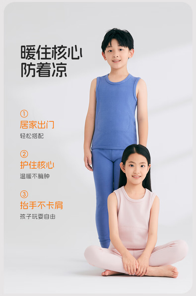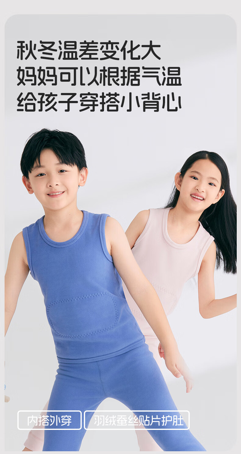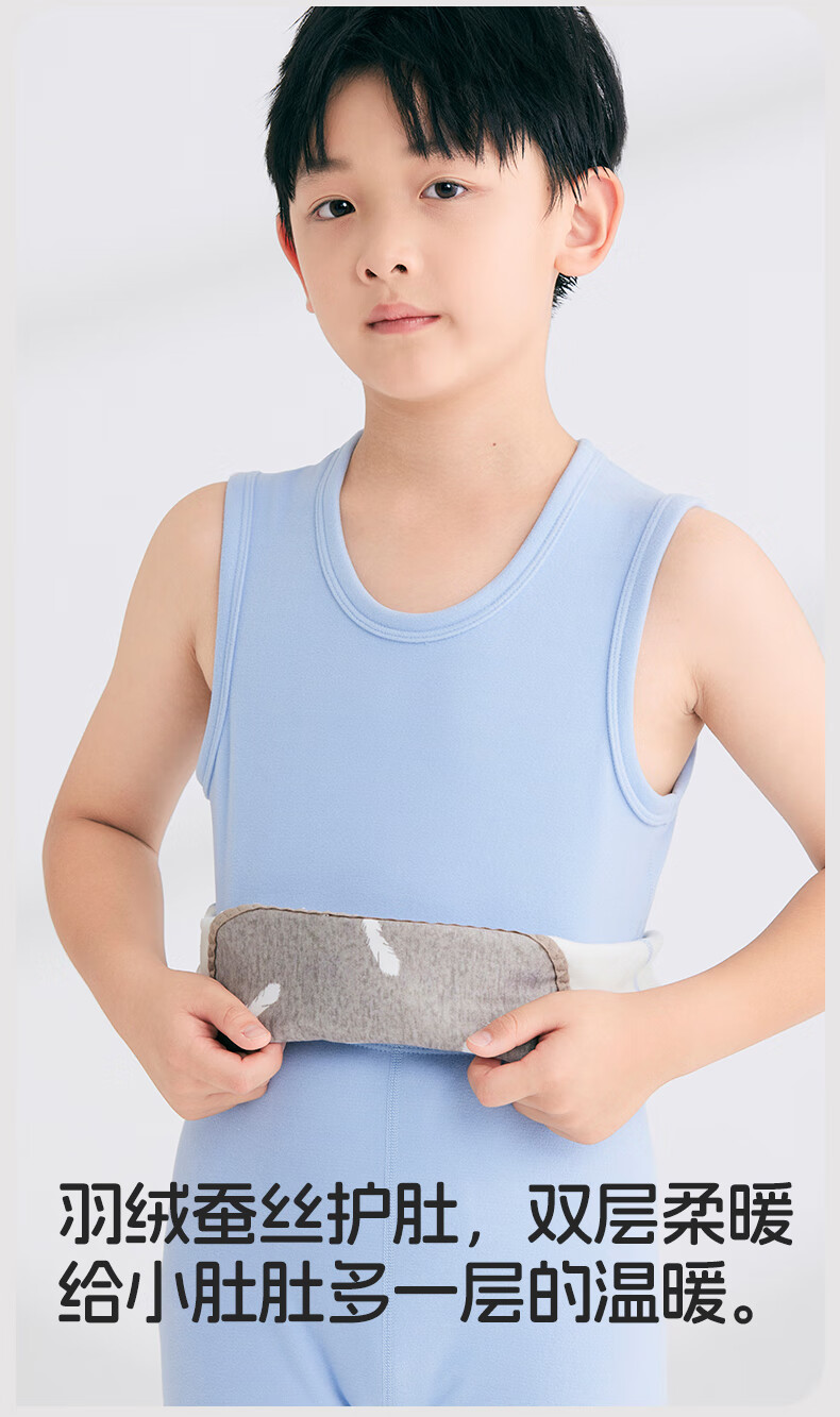 Nanjiren Children's Warm Vest Boys and Girls Down Acrylic Warm Belly Protective Autumn Clothes for Big Children and Baby 2 Pieces Autumn and Winter Dark Blue + Cerulean Blue 110 Recommended 100-110cm