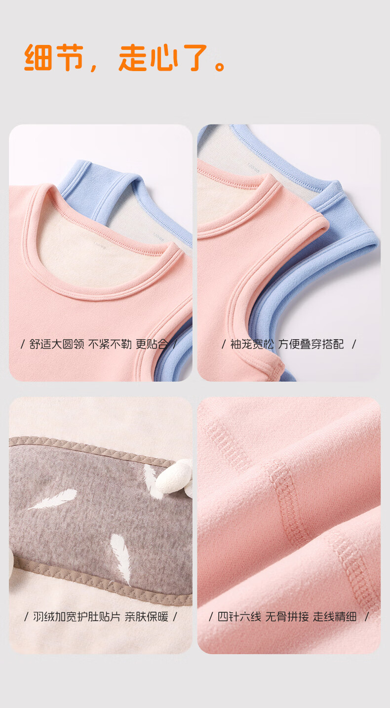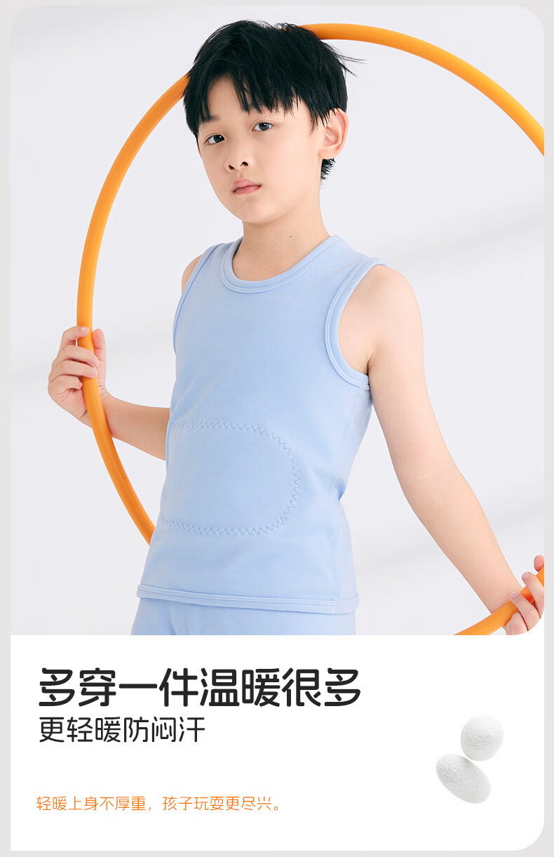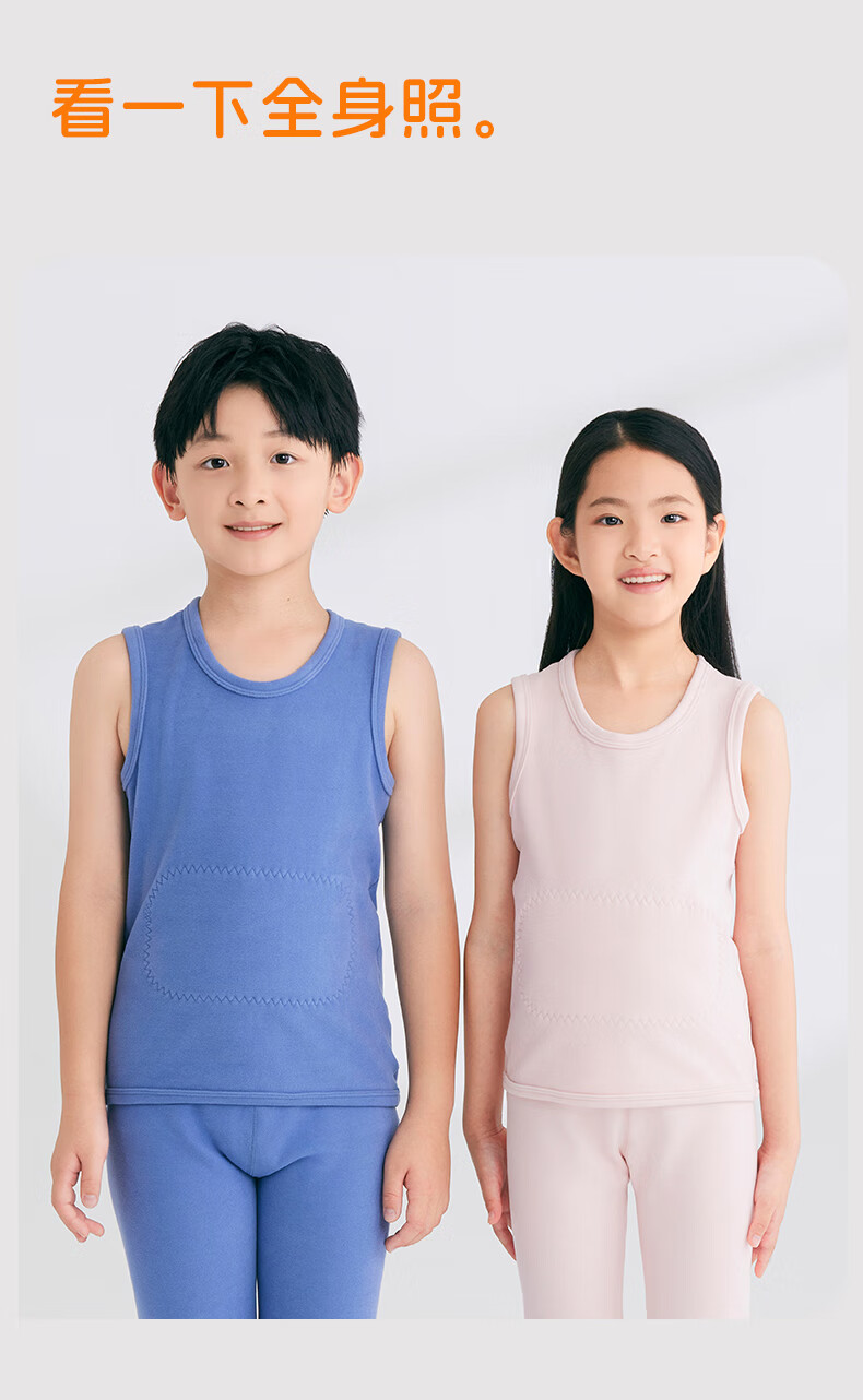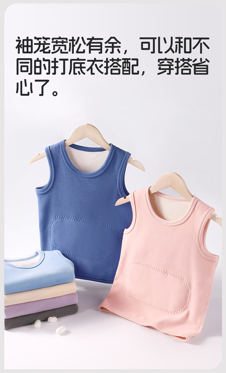 Nanjiren Children's Warm Vest Boys and Girls Down Acrylic Warm Belly Protective Autumn Clothes for Big Children and Baby 2 Pieces Autumn and Winter Dark Blue + Cerulean Blue 110 Recommended 100-110cm