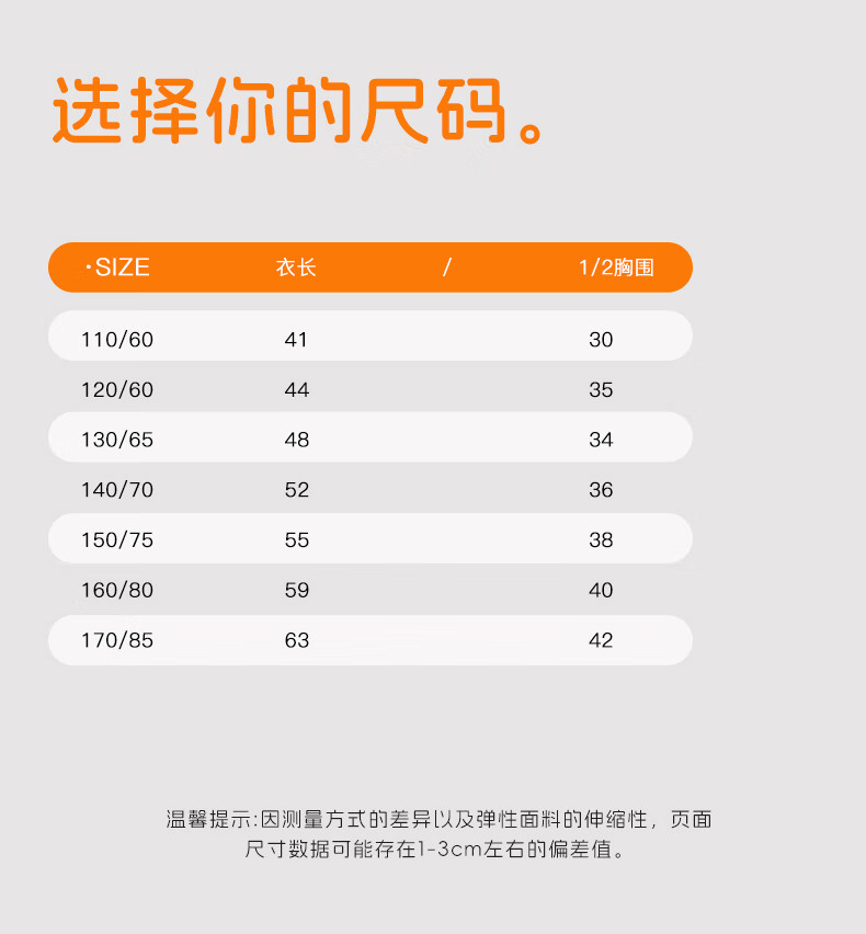 Size (cm) 42 44 46 48 50
