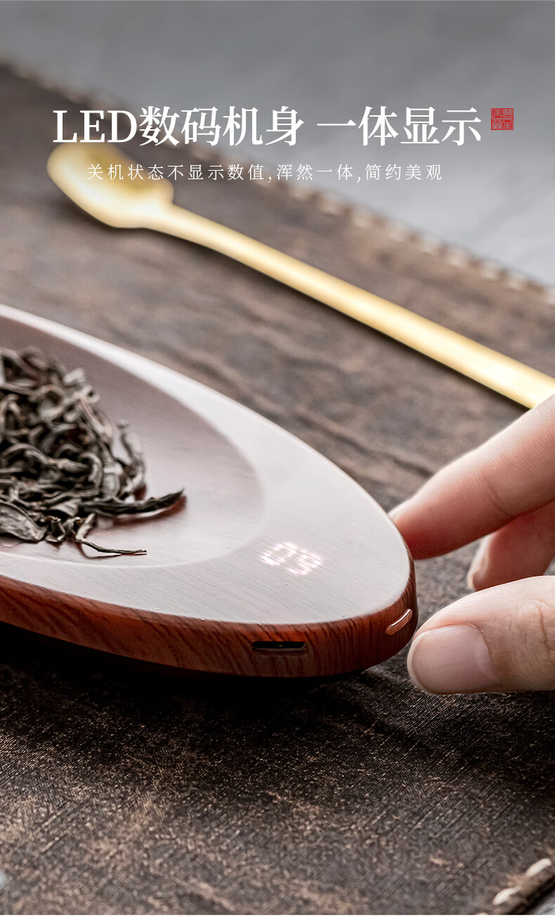 Tangfeng digital smart tea electronic scale tea scale household small charging high-precision heavy-weight tea set tea ceremony accessories Qingzhou tea scale walnut color