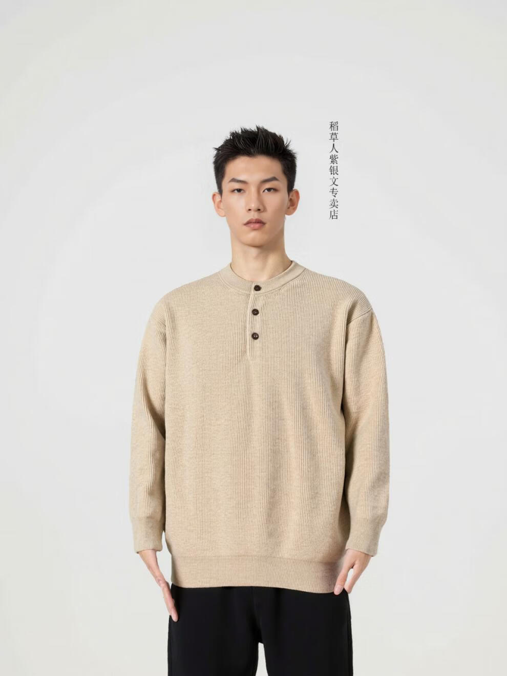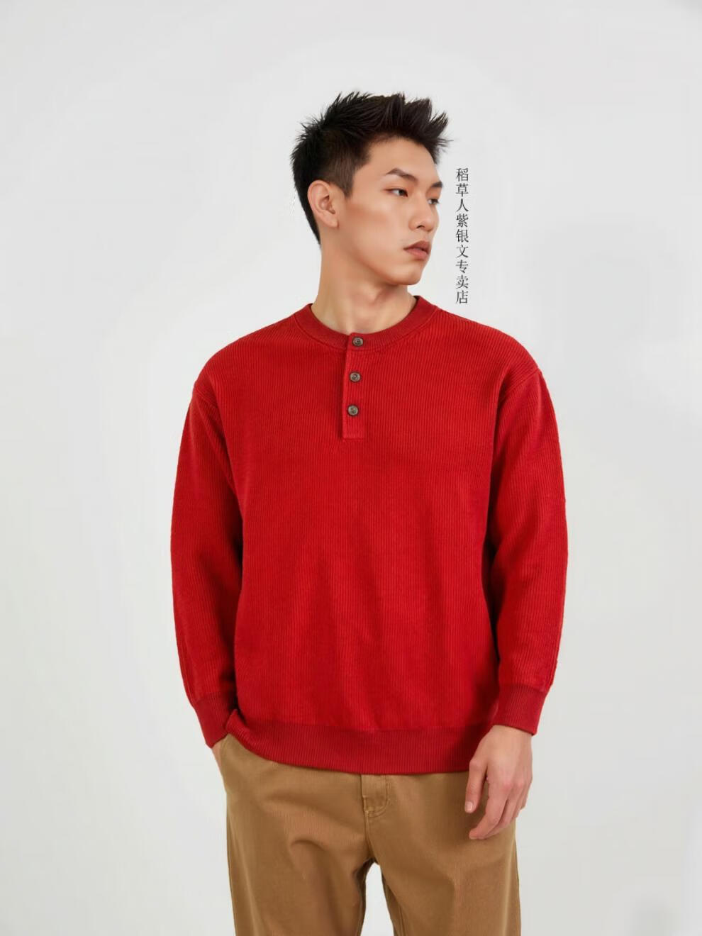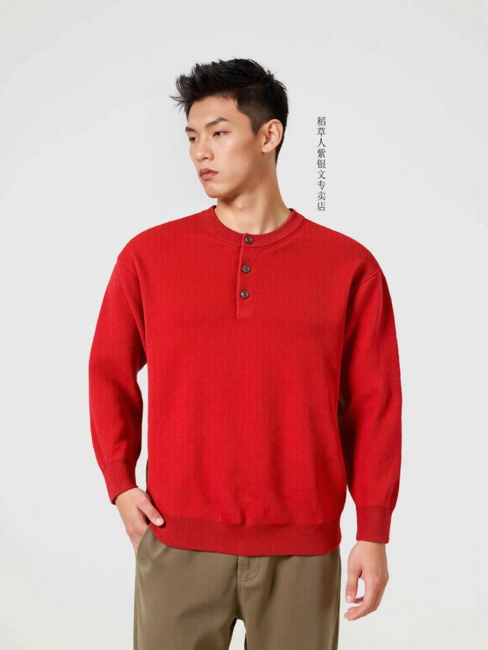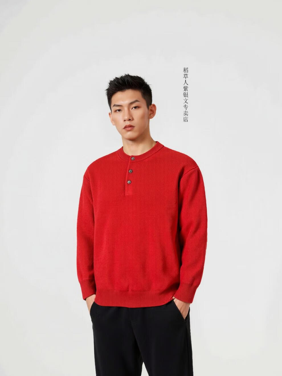 Scarecrow 2025 Autumn and Winter New Old Money Style Henry Collar Pullover Sweater Men's Loose Casual Solid Color Top Chinese Red S (100-130Jin Jin equals 0.5kg)