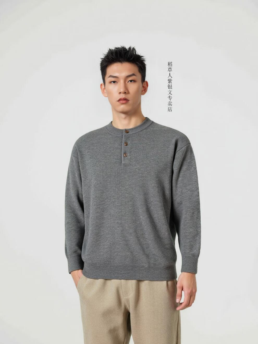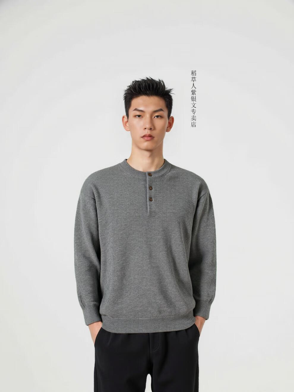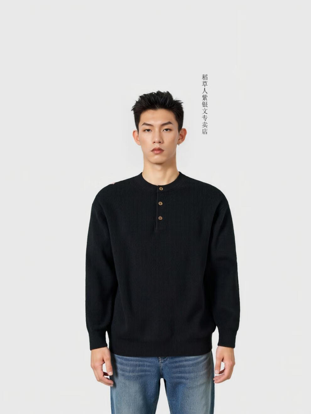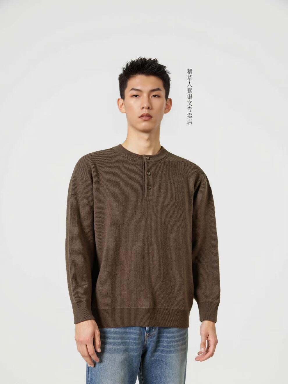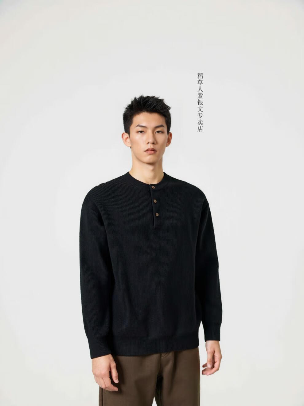 Scarecrow 2025 Autumn and Winter New Old Money Style Henry Collar Pullover Sweater Men's Loose Casual Solid Color Top Chinese Red S (100-130Jin Jin equals 0.5kg)