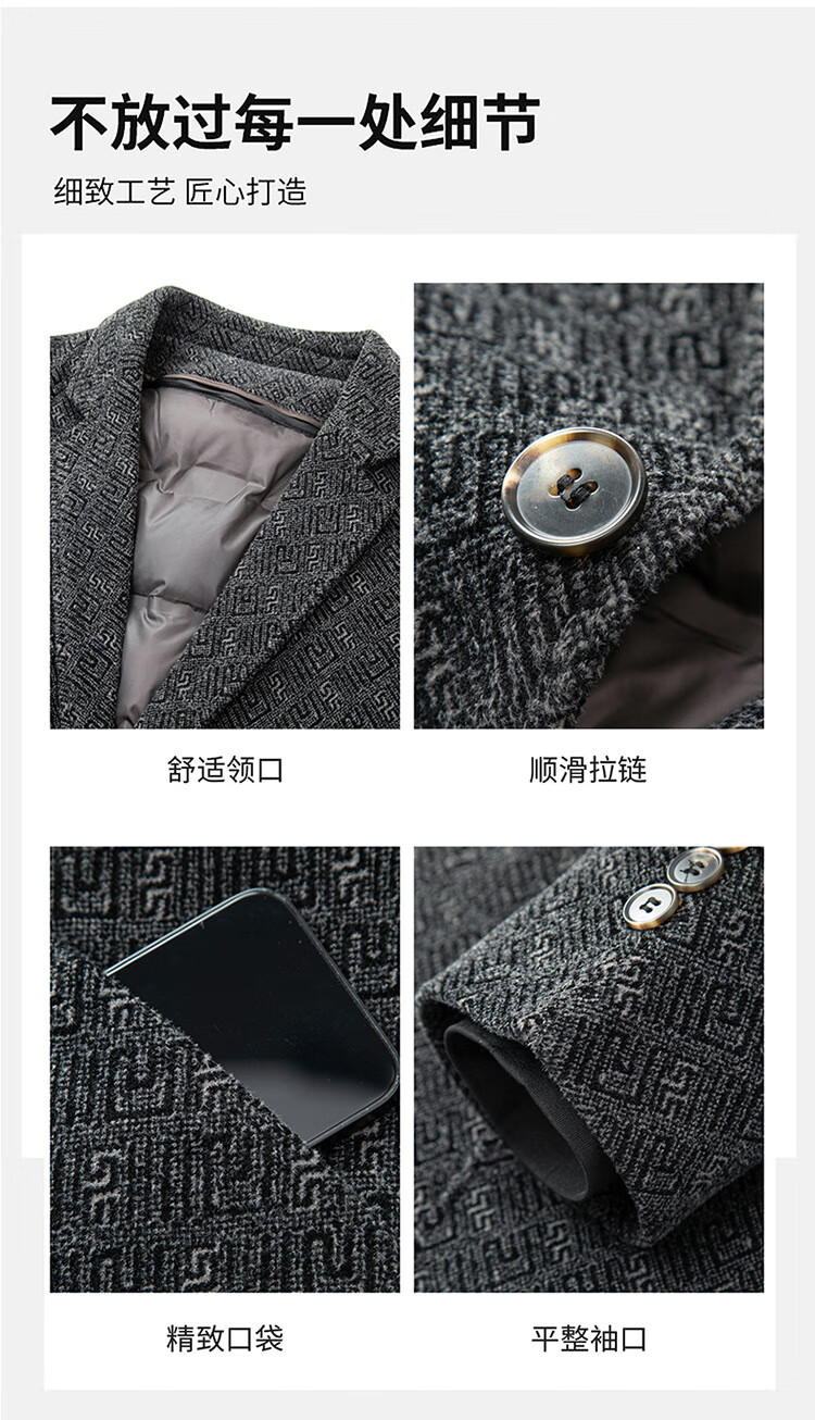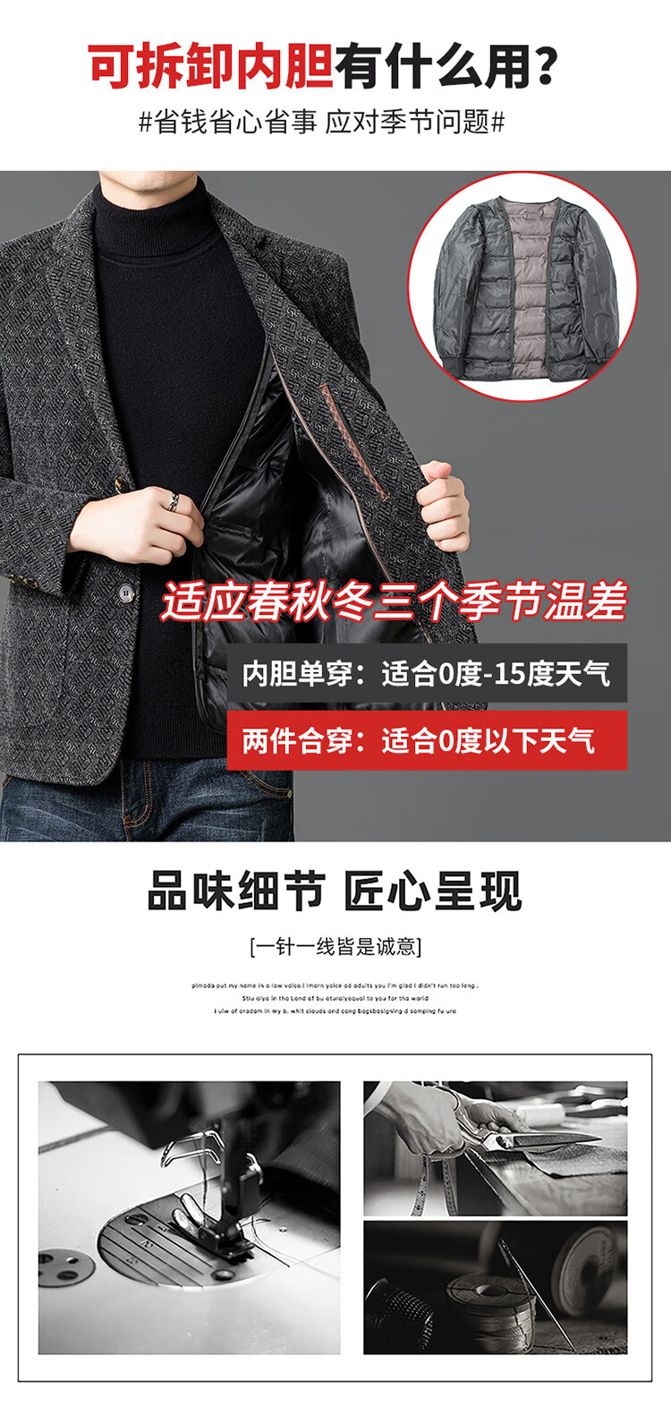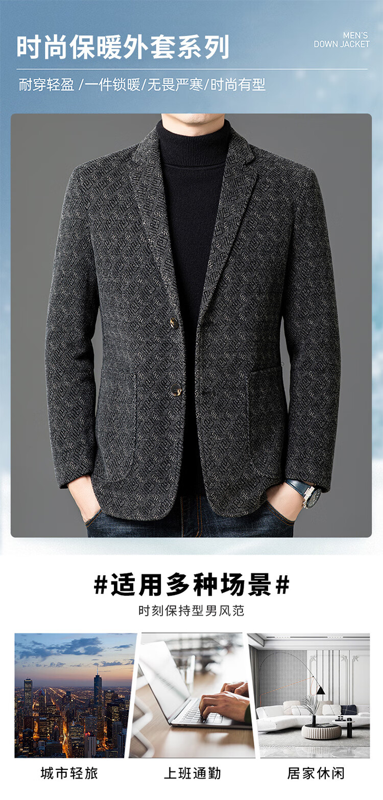 AX Armani Winter Down Suit Men's Trendy Warm Top Removable Down Liner Casual Men's Suit Gray M