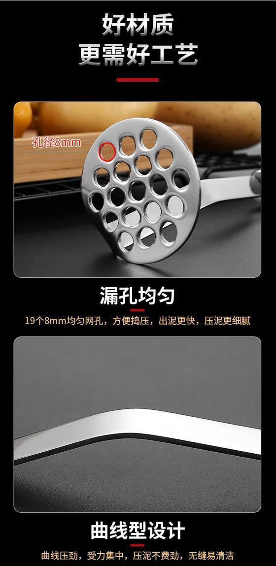 FVFH German 304 stainless steel potato masher masher masher food supplement masher garlic mashed kitchen tools convenient stainless steel masher 1 pack